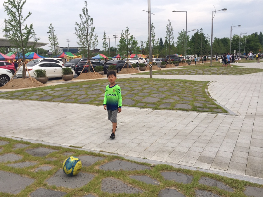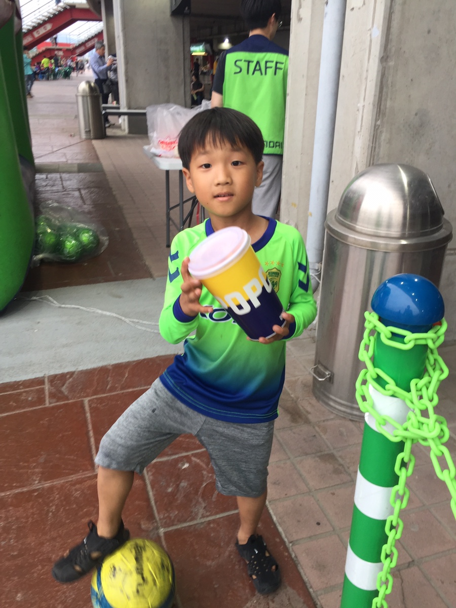 평소보다 사람들이 많이 보이네요. 지난 제주전에는 주차장소가 없어서 길가에 주차하고 경기를 관람하였는데.... 한주가 지난 뒤 불법 주정차 딱지가 집으로 날라왔네요. 4만 원..... 아이가 절대 주정차하지 말라 해서 오늘은 경기장에 좀 일찍 도착했습니다. 일찍 도착해서 아이가 좋아하는 슛돌이도 참가하고 로페드 기념 양발도 받아야겠네요.