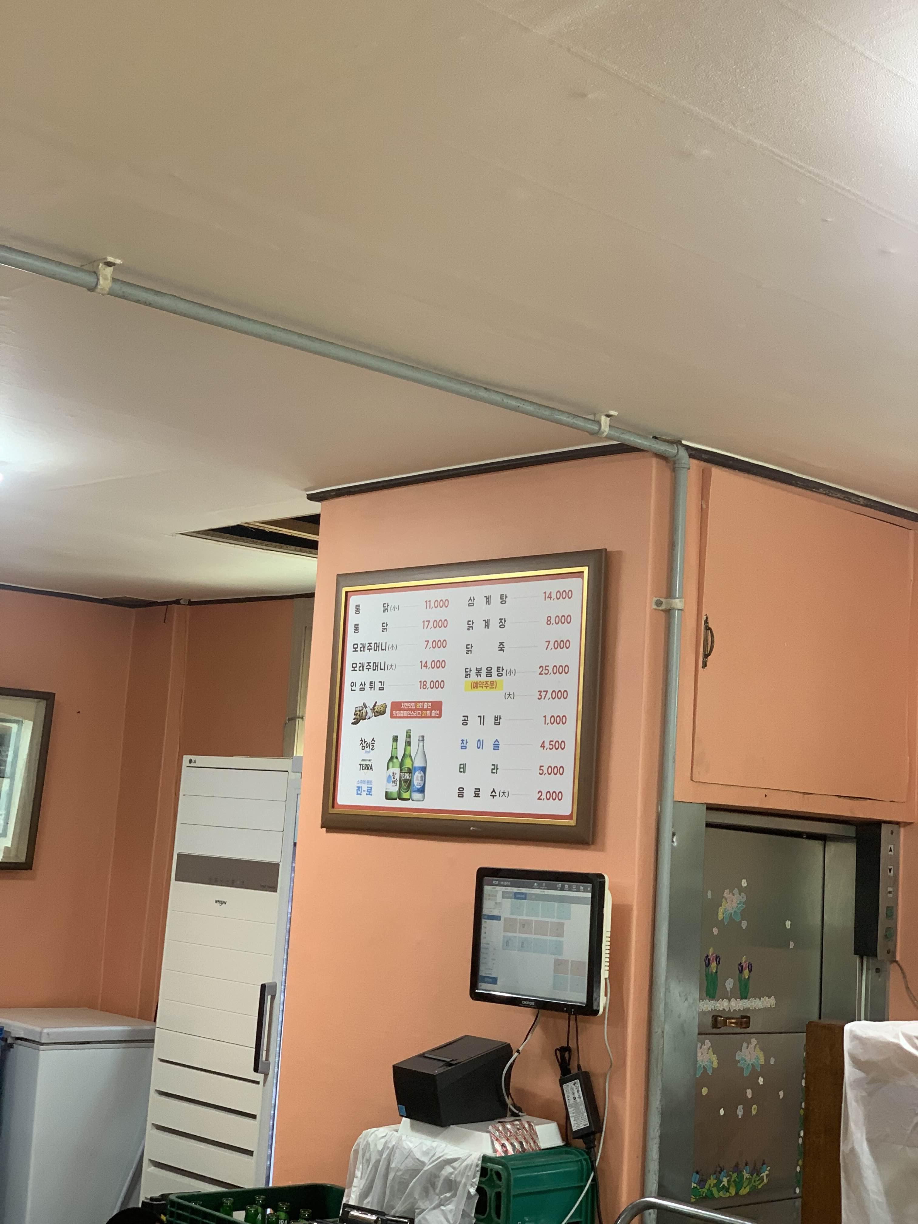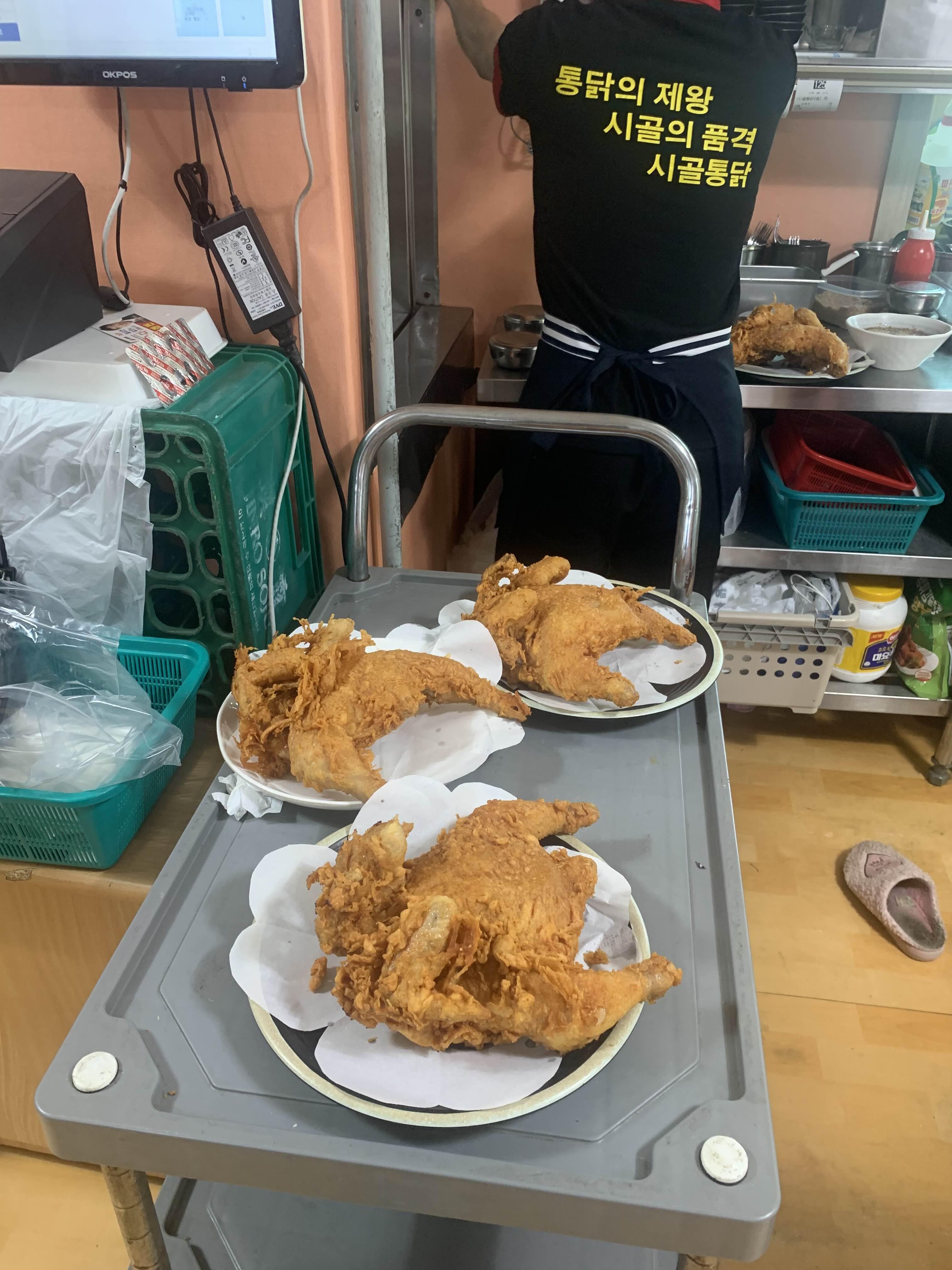 통닭가격은 17,000원으로... 닭은 통째로 가마솥에 튀겨주는 스타일이다.