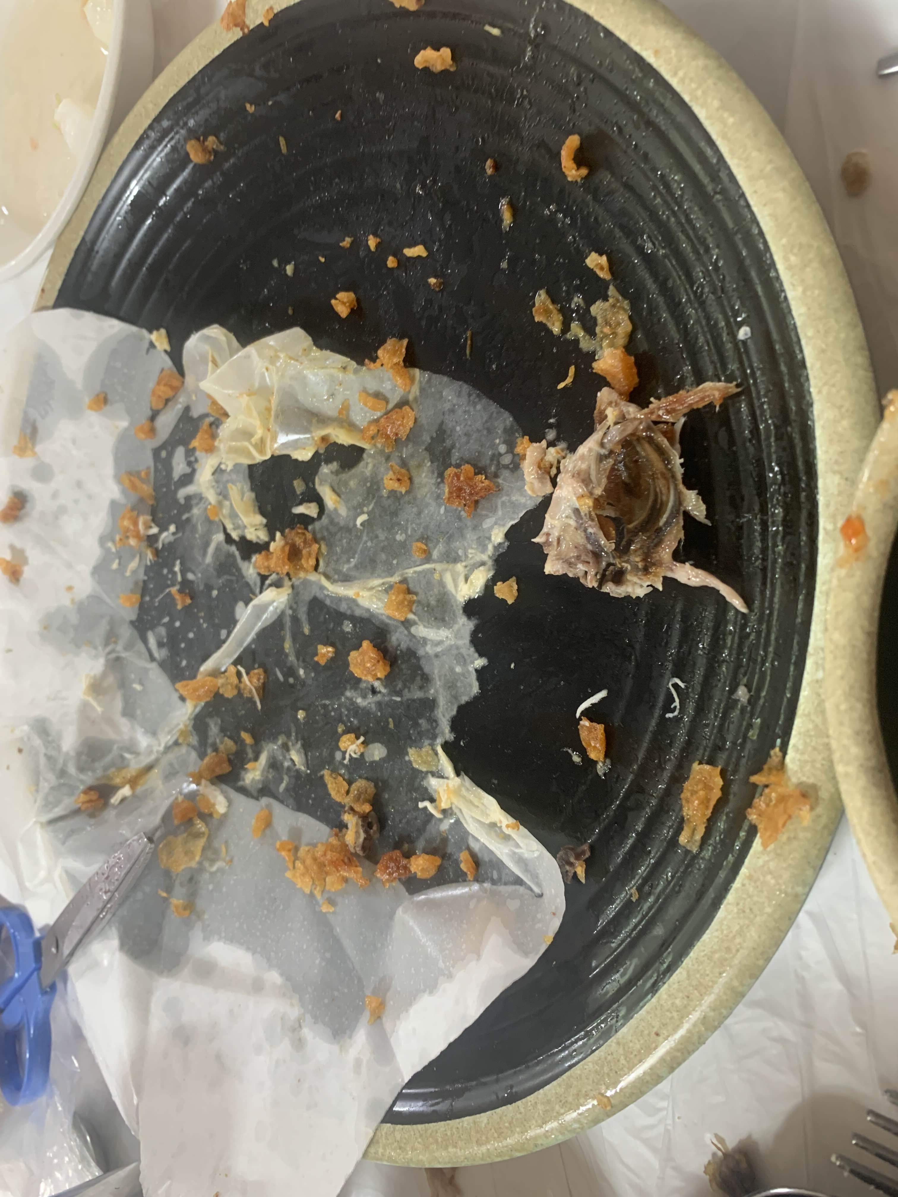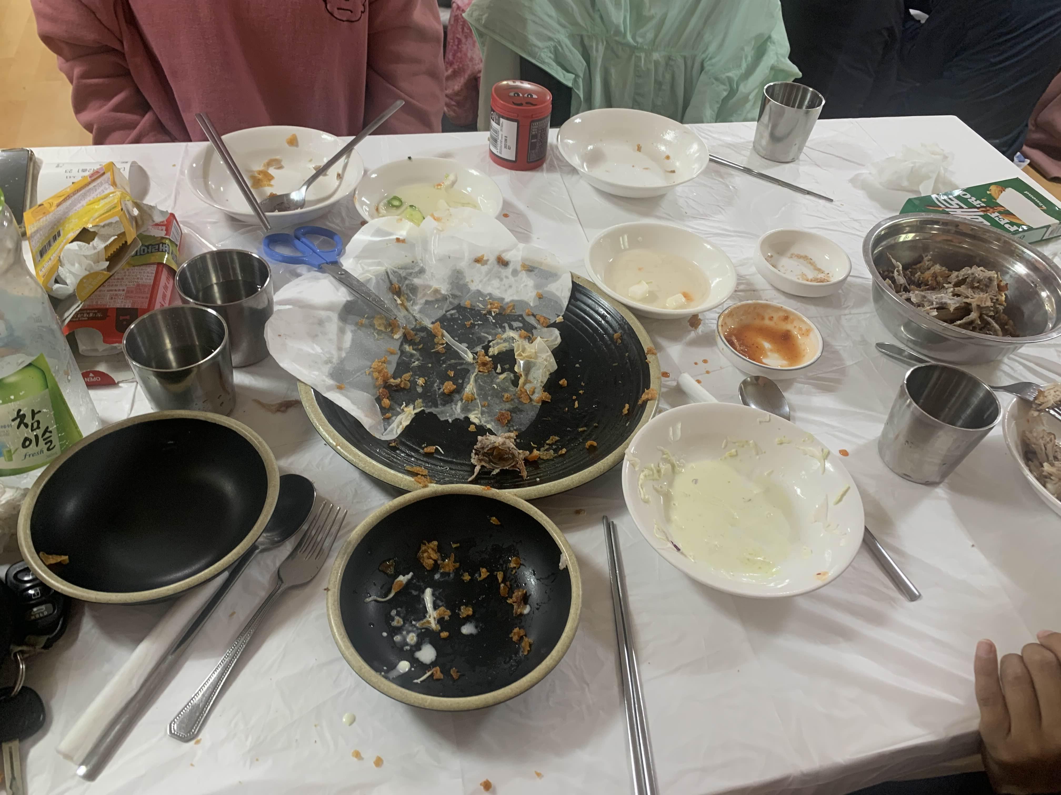 어느 순간 통닭이 동이 났다. 한 마리 더 먹고 싶다.