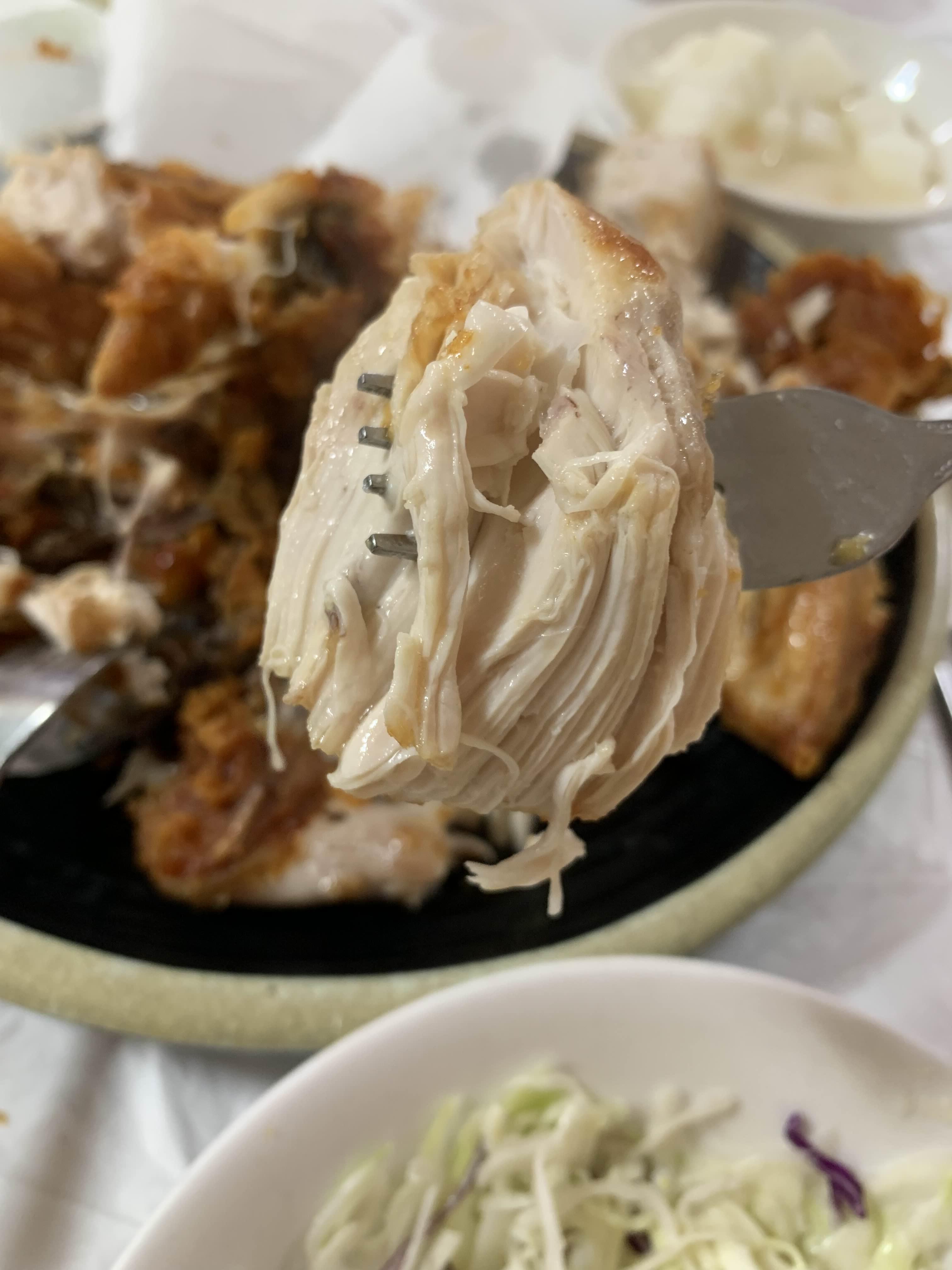 닭 사이즈가 그렇게 크지 않아서... 혼자 한 마리 다 먹을 수 있는 정도....