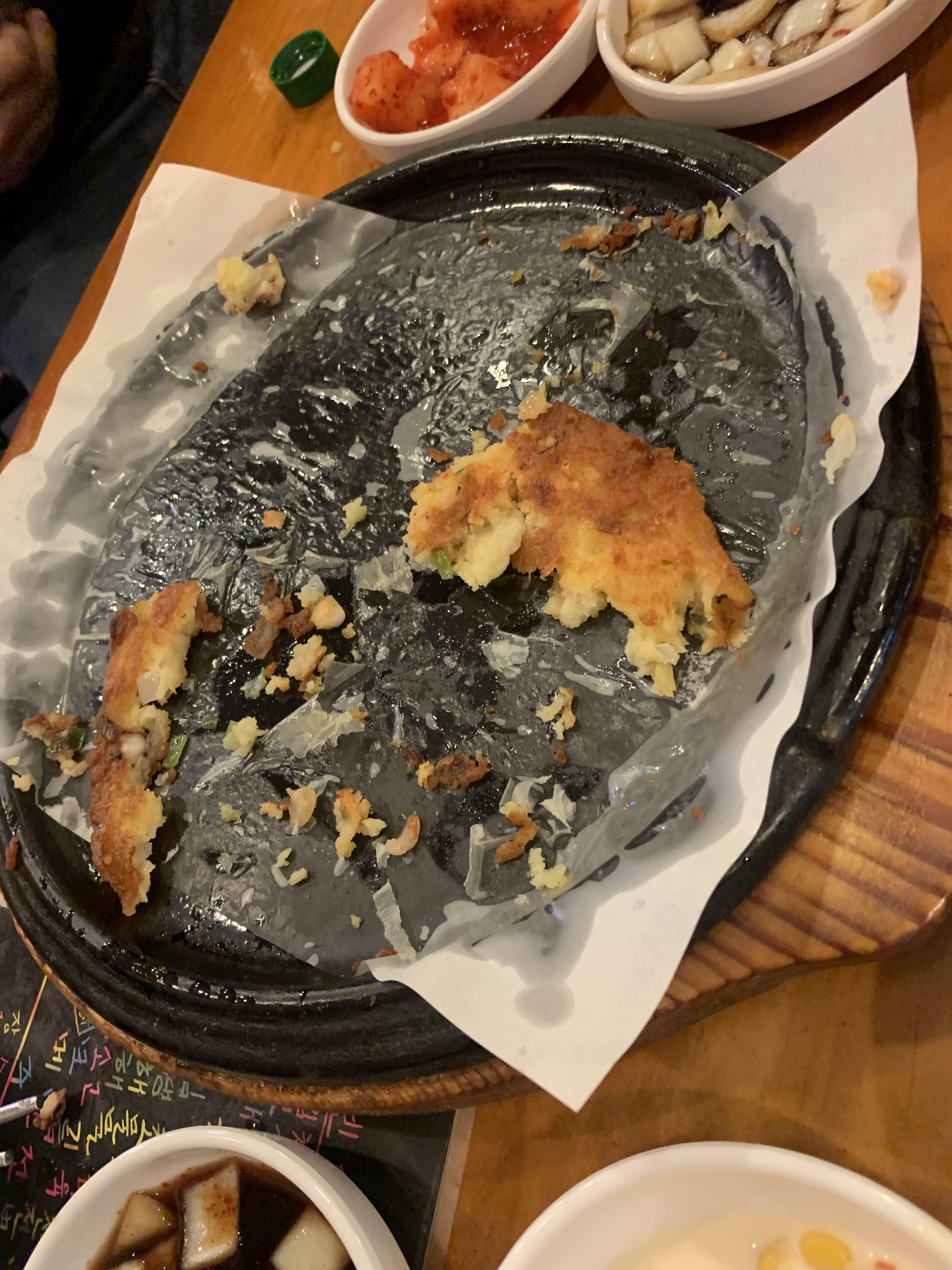 그리고... 주문한 빈대떡이 나옵니다. 빈대떡 사진은... 술을 많이 먹어서... 마지막 한점 사진만 있네요.ㅎㅎ