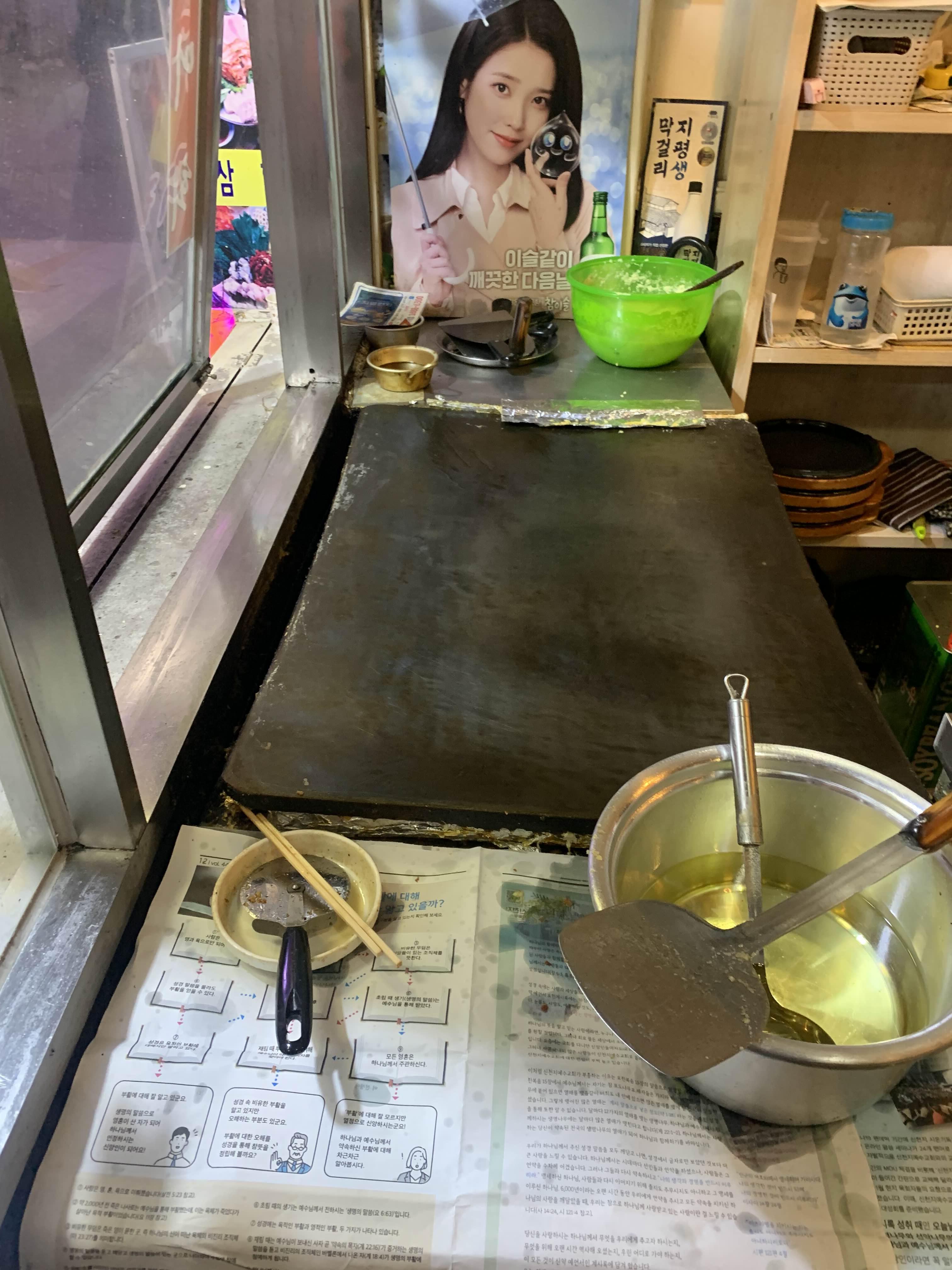 빈대떡 넓은 불판..... 이런 불판이 집에 있으면 좋겠다는 생각을 하며... 빈대떡 후기 끝.ㅋㅋ