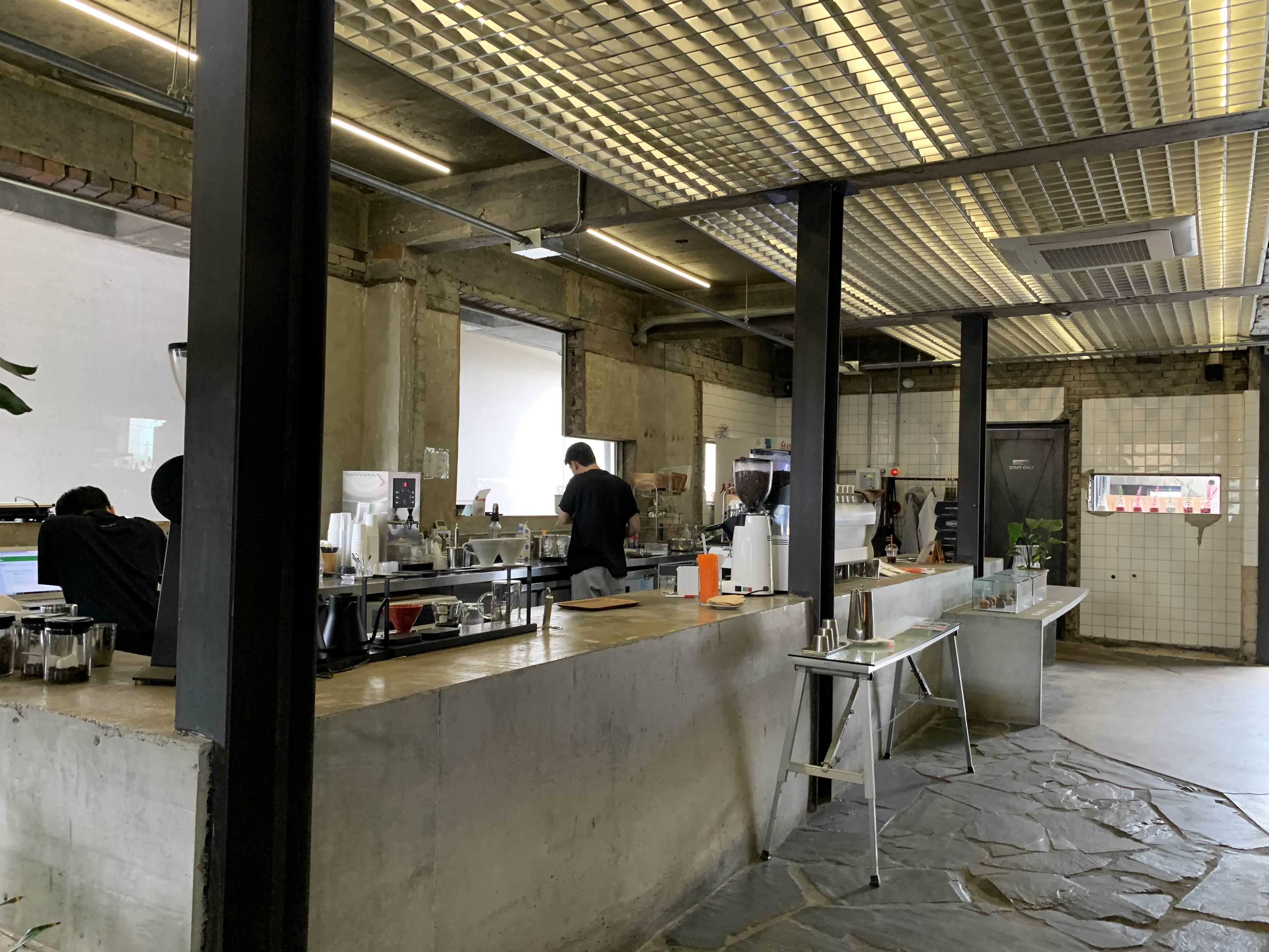 내부는 콘크리트를 그대로 이용한 테이블과 사각 의자가 눈길을 사로잡는다.