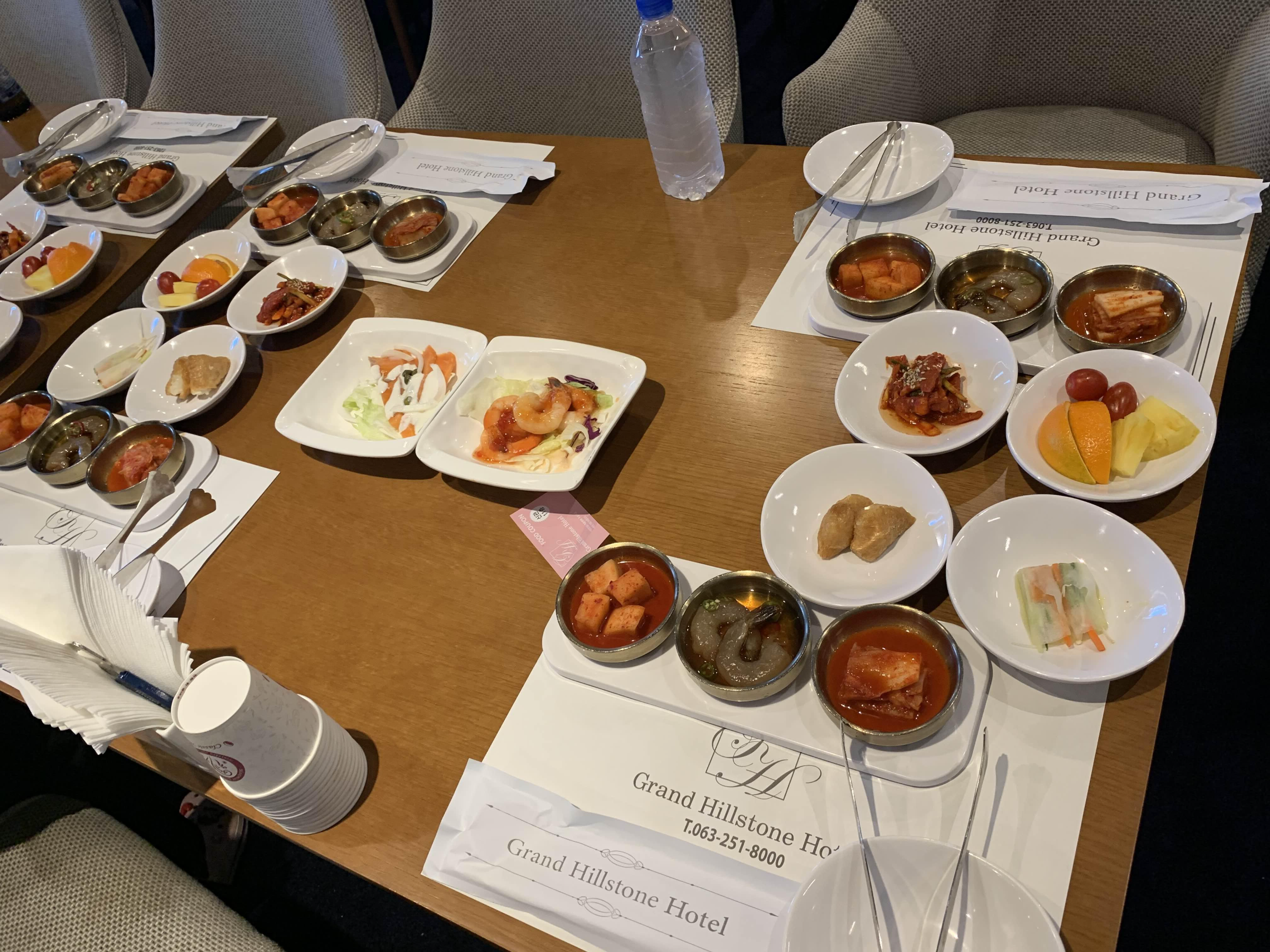 테이블에는 사전에 마련된 기본 음식이 세팅되어 있더군요.