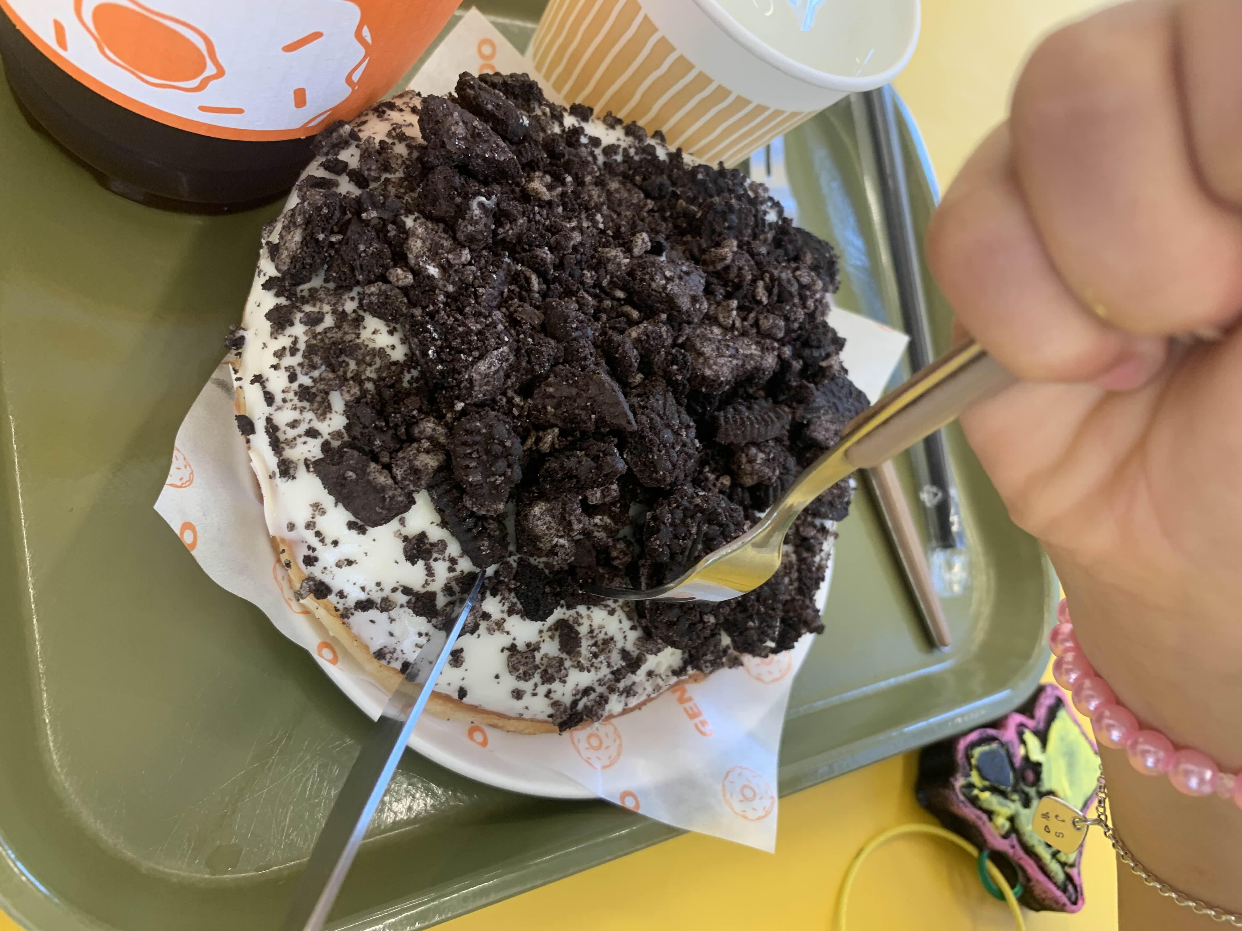 도넛 위 올려진 오레오 토핑이 있어, 그냥 들고 먹기는 좀 불편해 보이더군요.ㅎㅎ