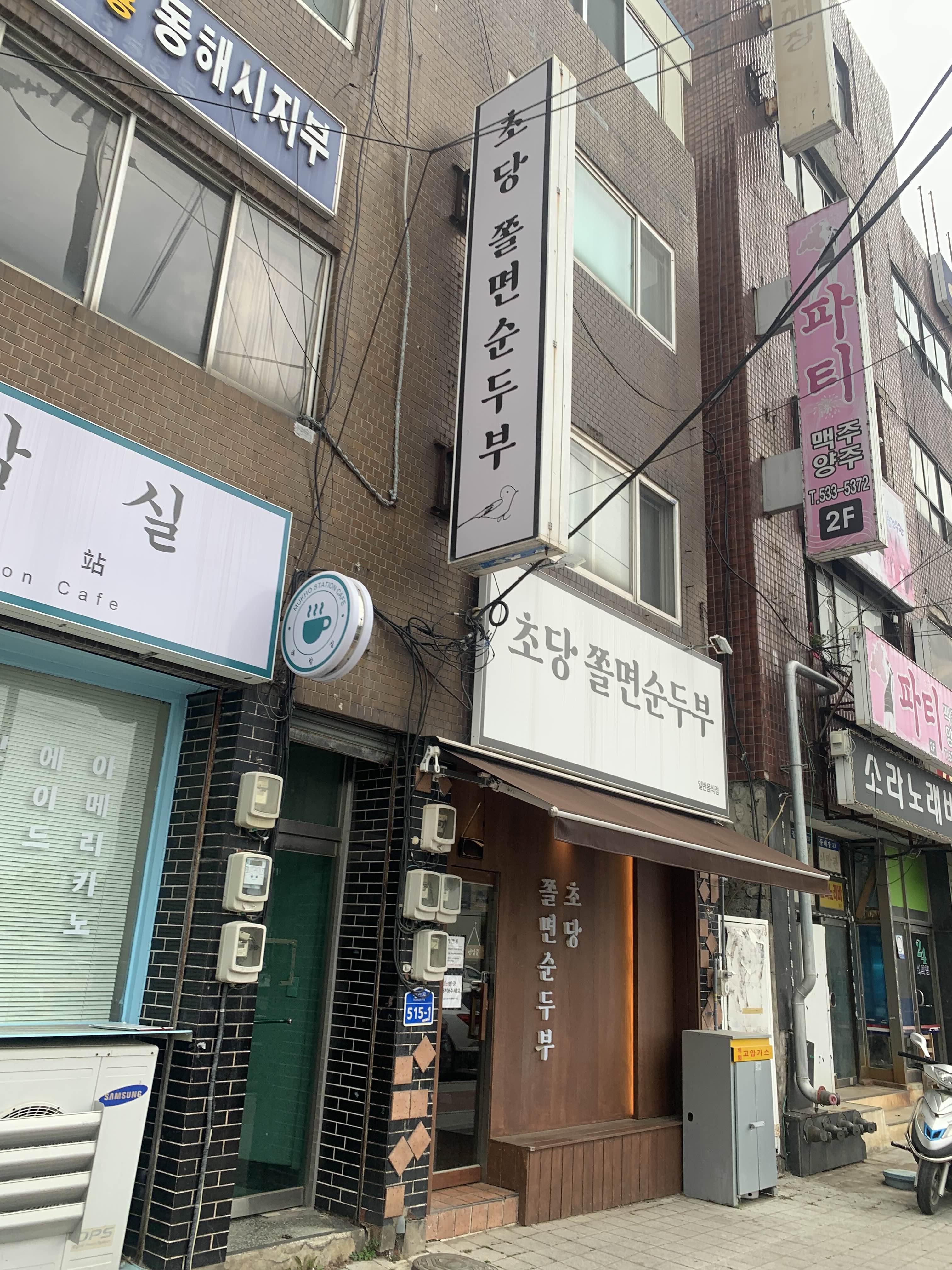 순두부의 뚝배기에 쫄면이 들어있어서....