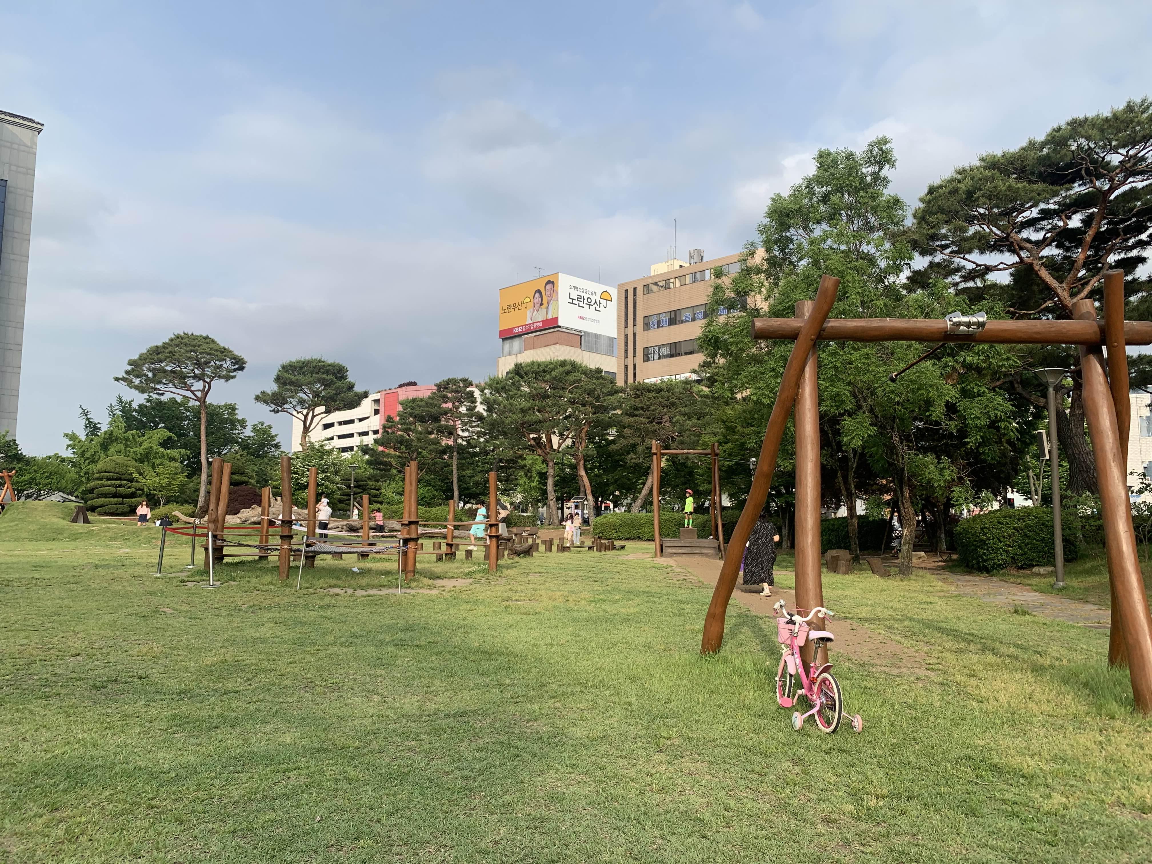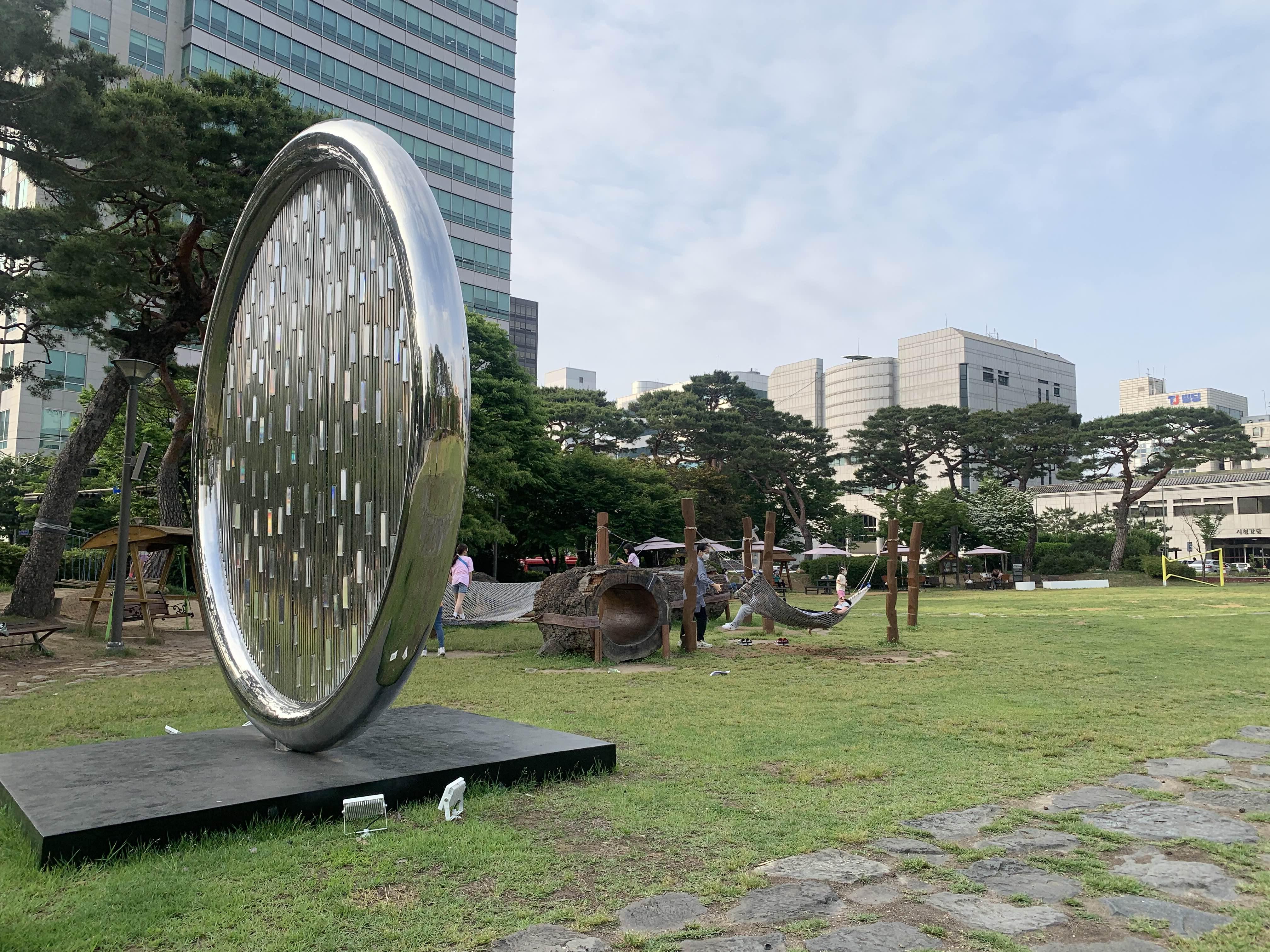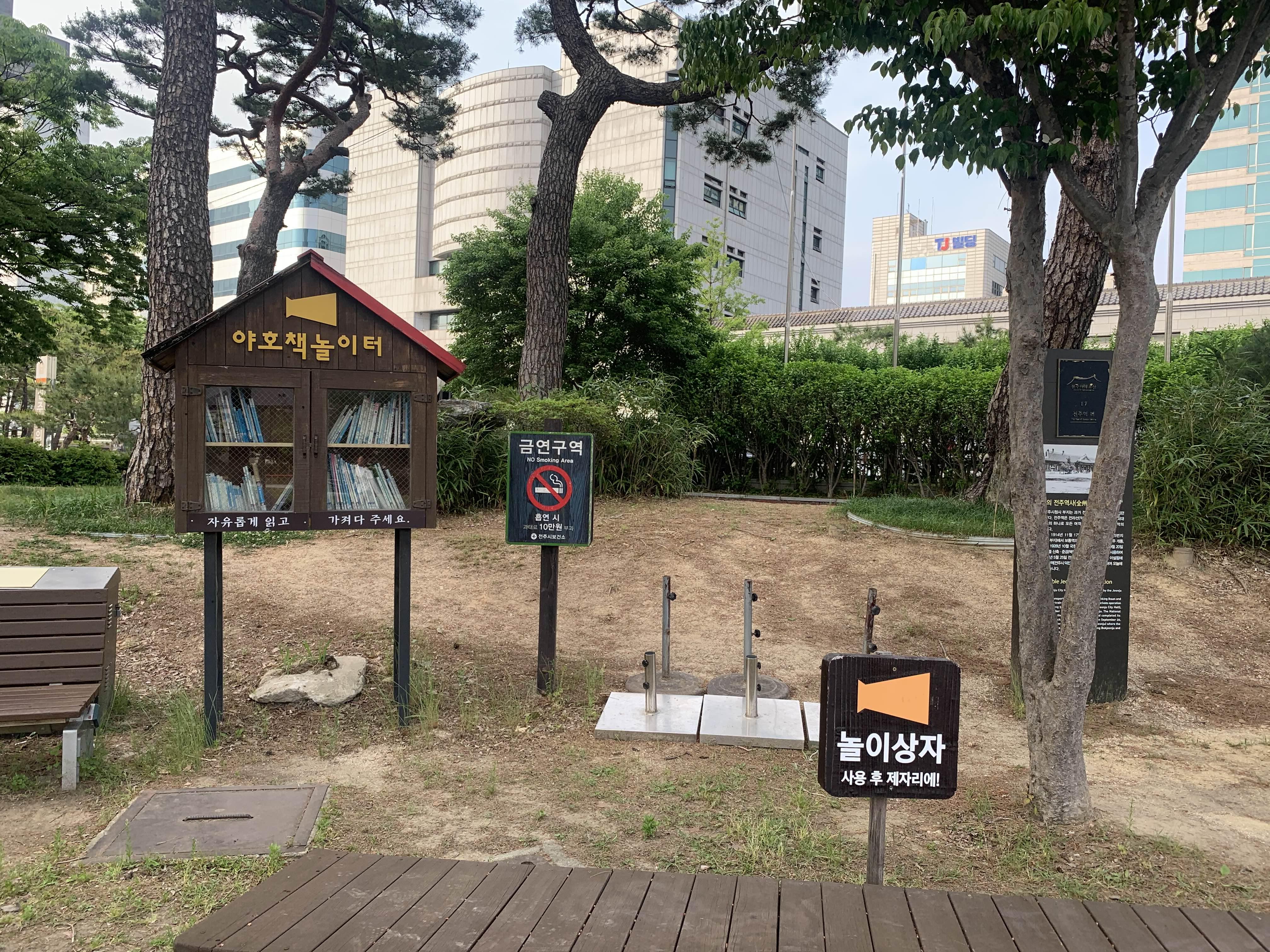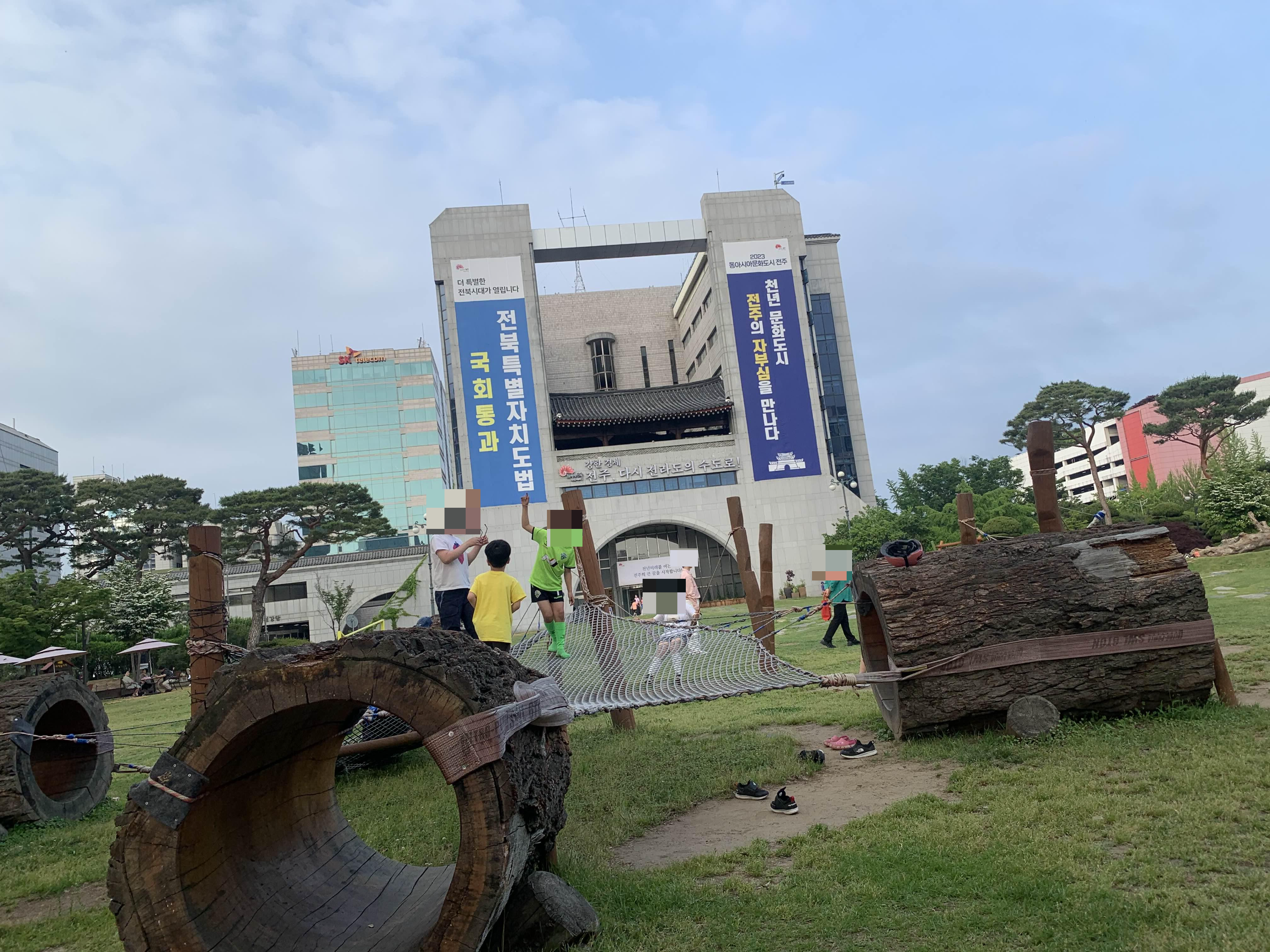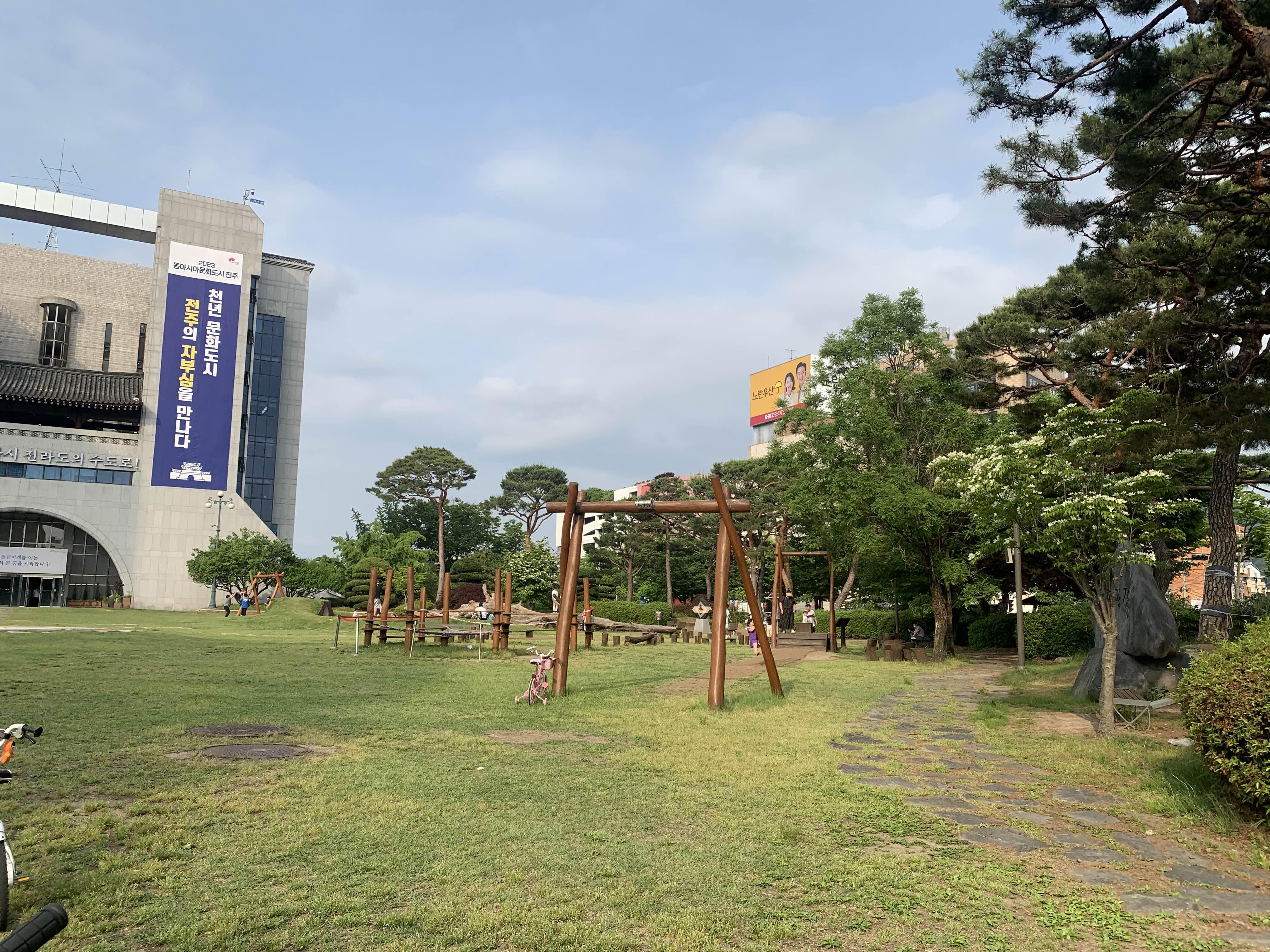 전주시청 광장에 휴식공간과 놀이구가 설치되어 있었다.