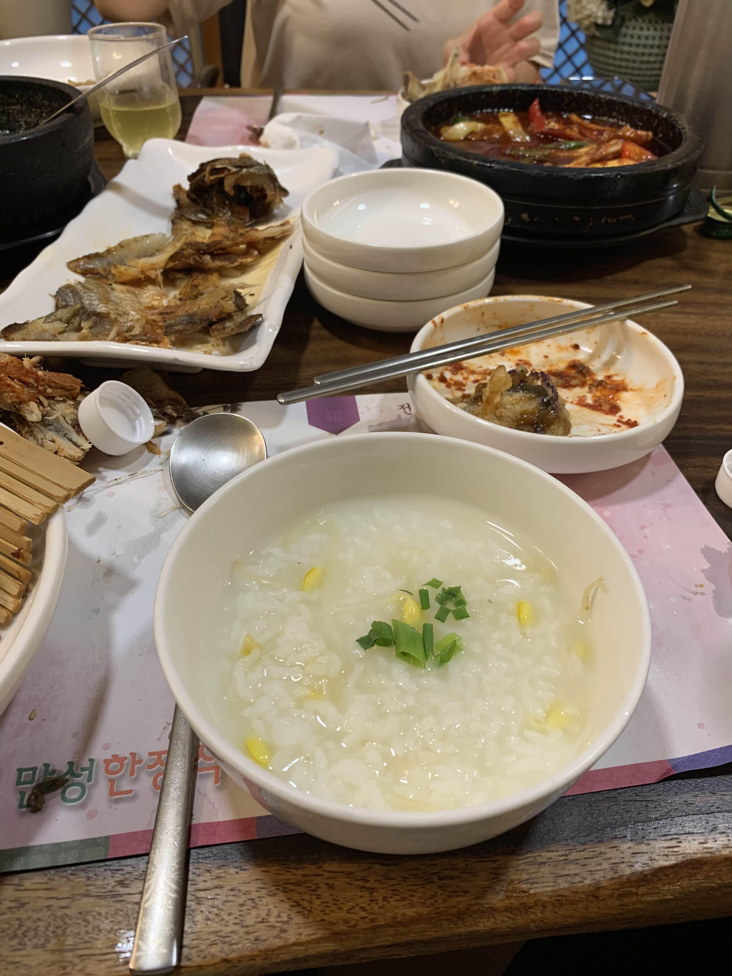 하지만... 마지막으로 나온 콩나물죽! 이 죽이 왜 이리 맛있던지....