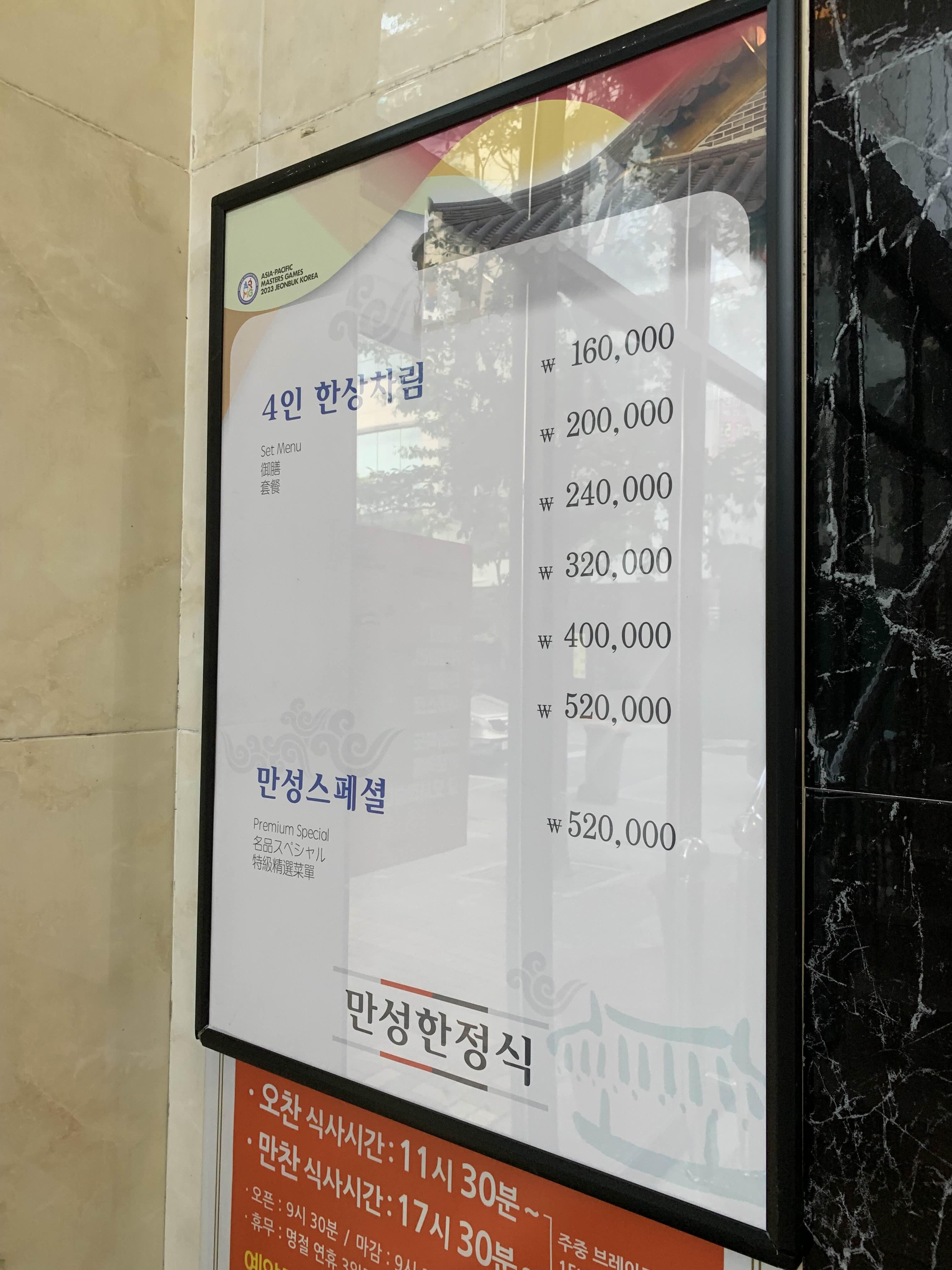 음식은 4인 한상차림으로.... 4인 한상이 32만 원으로 주문했다고 한다.