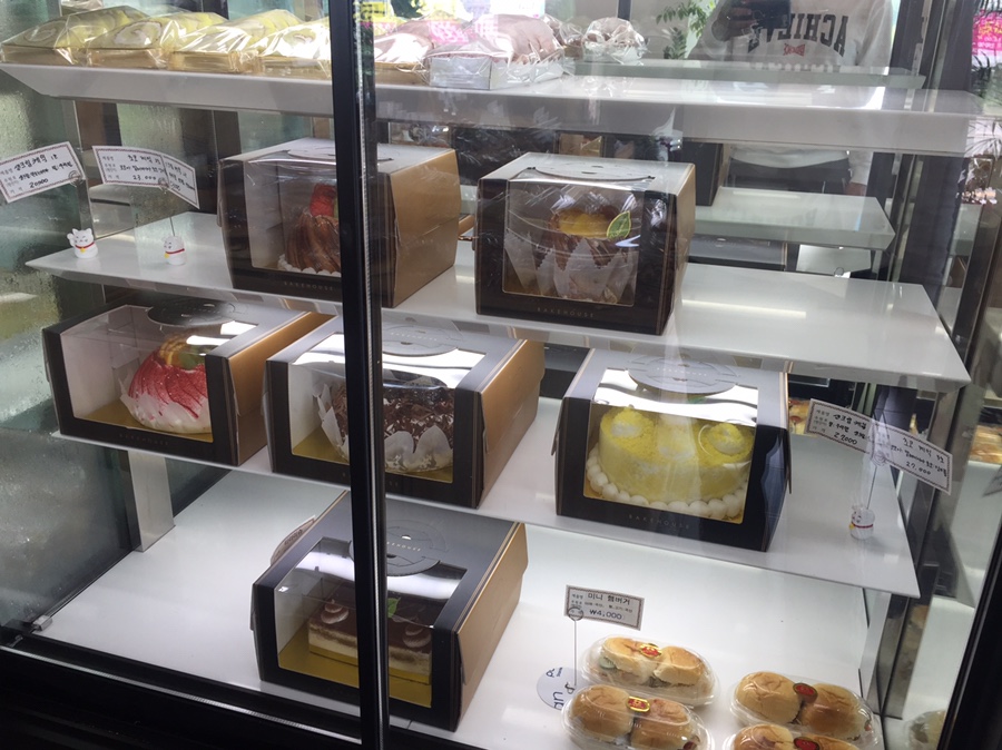 빵집에 들어서니 여러 종류의 빵과 케이크가 보이네요. 자주 먹는 카스테라, 식빵, 찹살도너츠와 시식용으로 나온 볼케이노? 이렇게 구입을 해보았네요. 다른 빵집보다 좀 가격이 비싼 편이네요.
