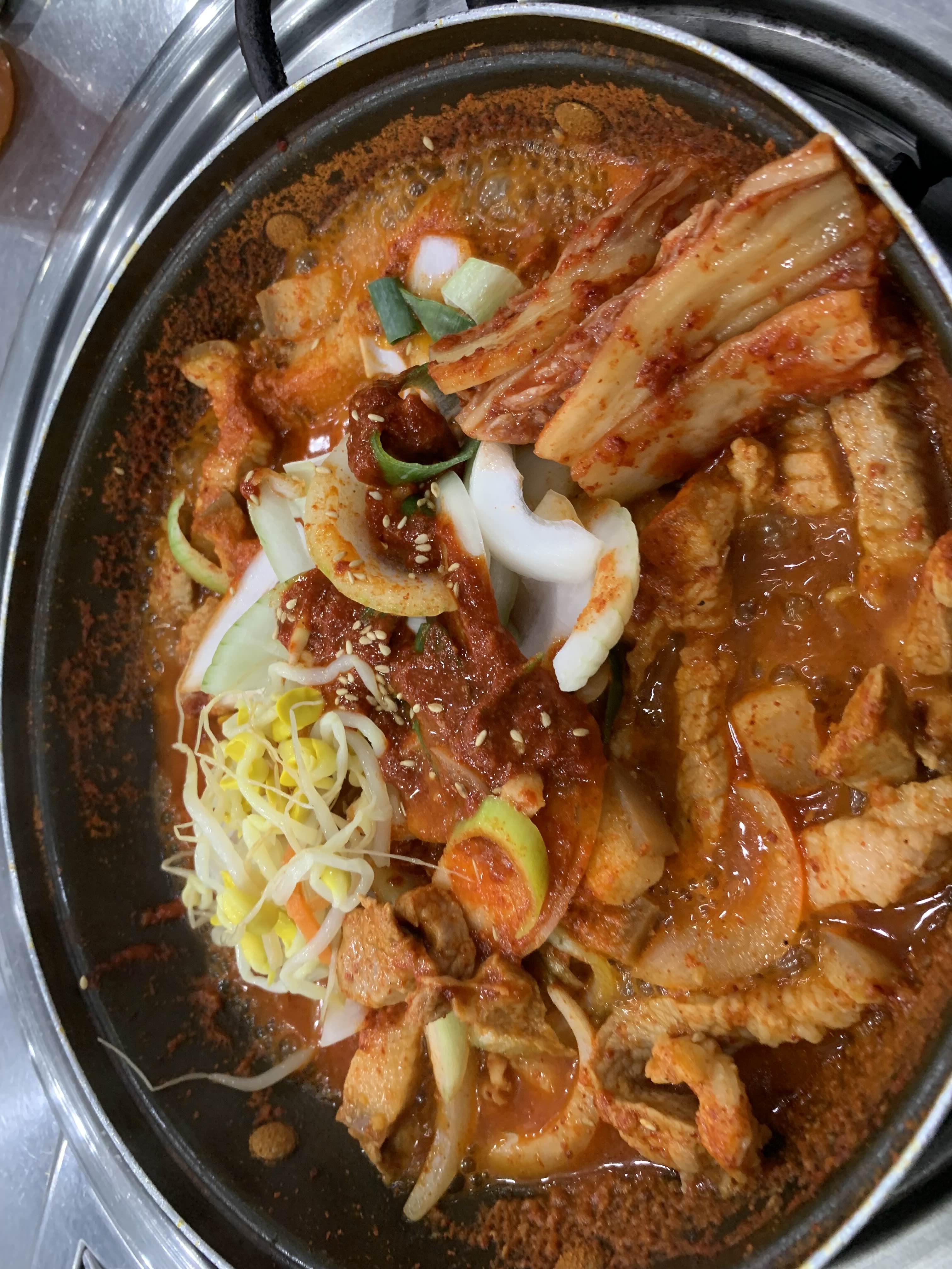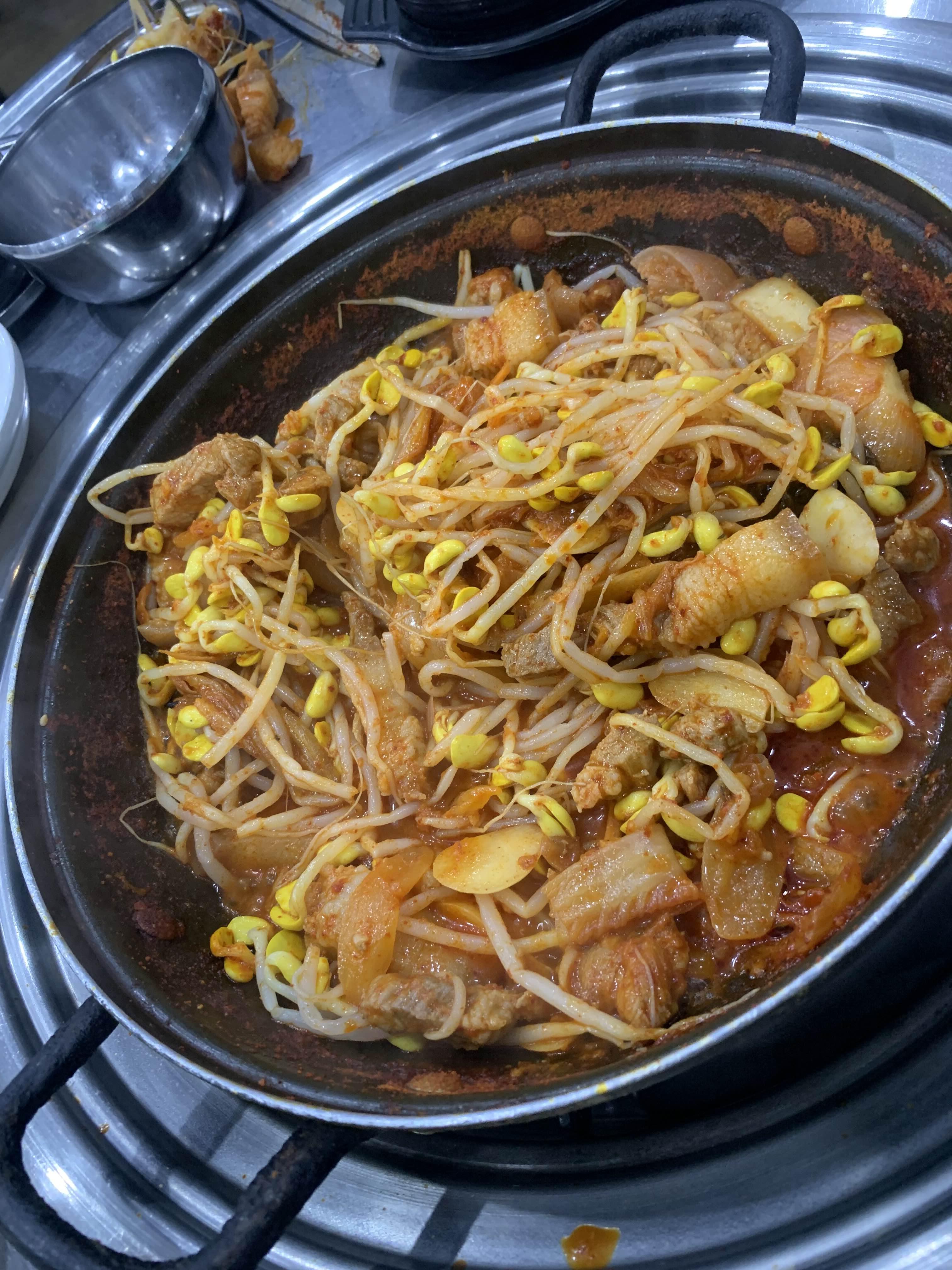 짜글이.. 얼큰하니, 김치와 콩나물을 추가해서 먹는 재미가 있다.