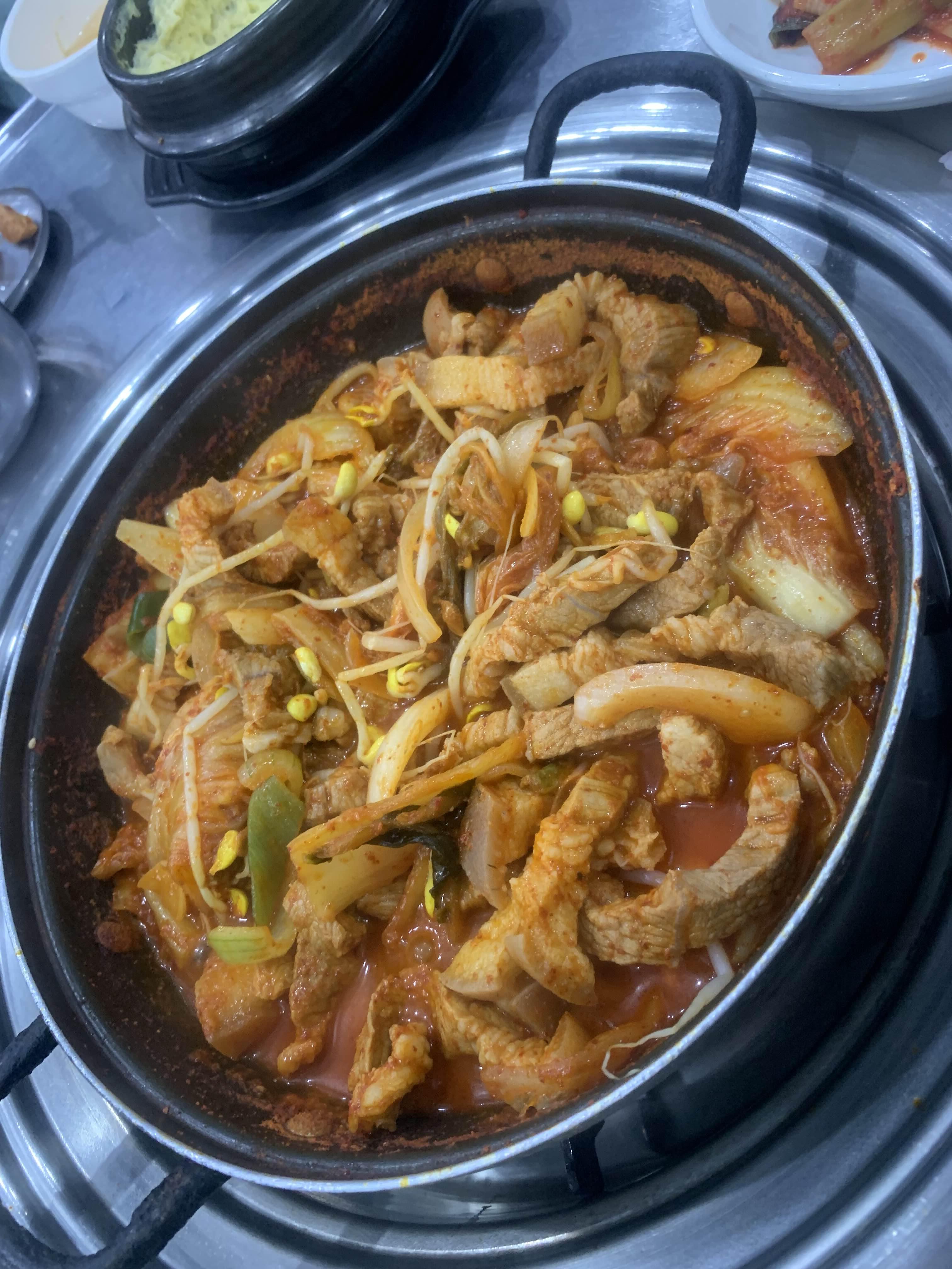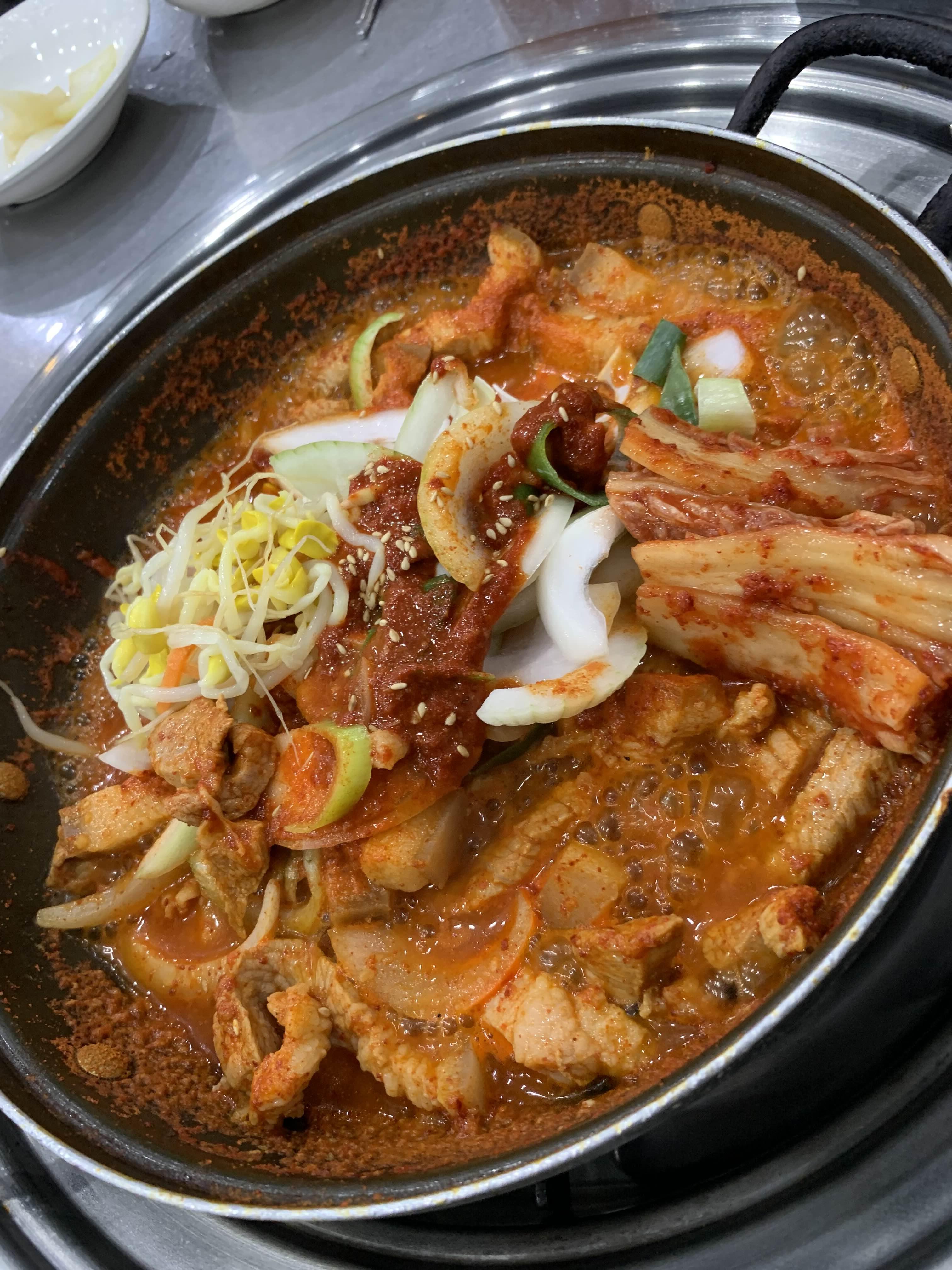 짜글이를 계속 끊이면서 먹으면... 돼지고기의 기름이 녹아... 국물이 담백해짐! 공깃밥을 미리 시켜서 짜글이랑 함께 먹으면 괜찮음!