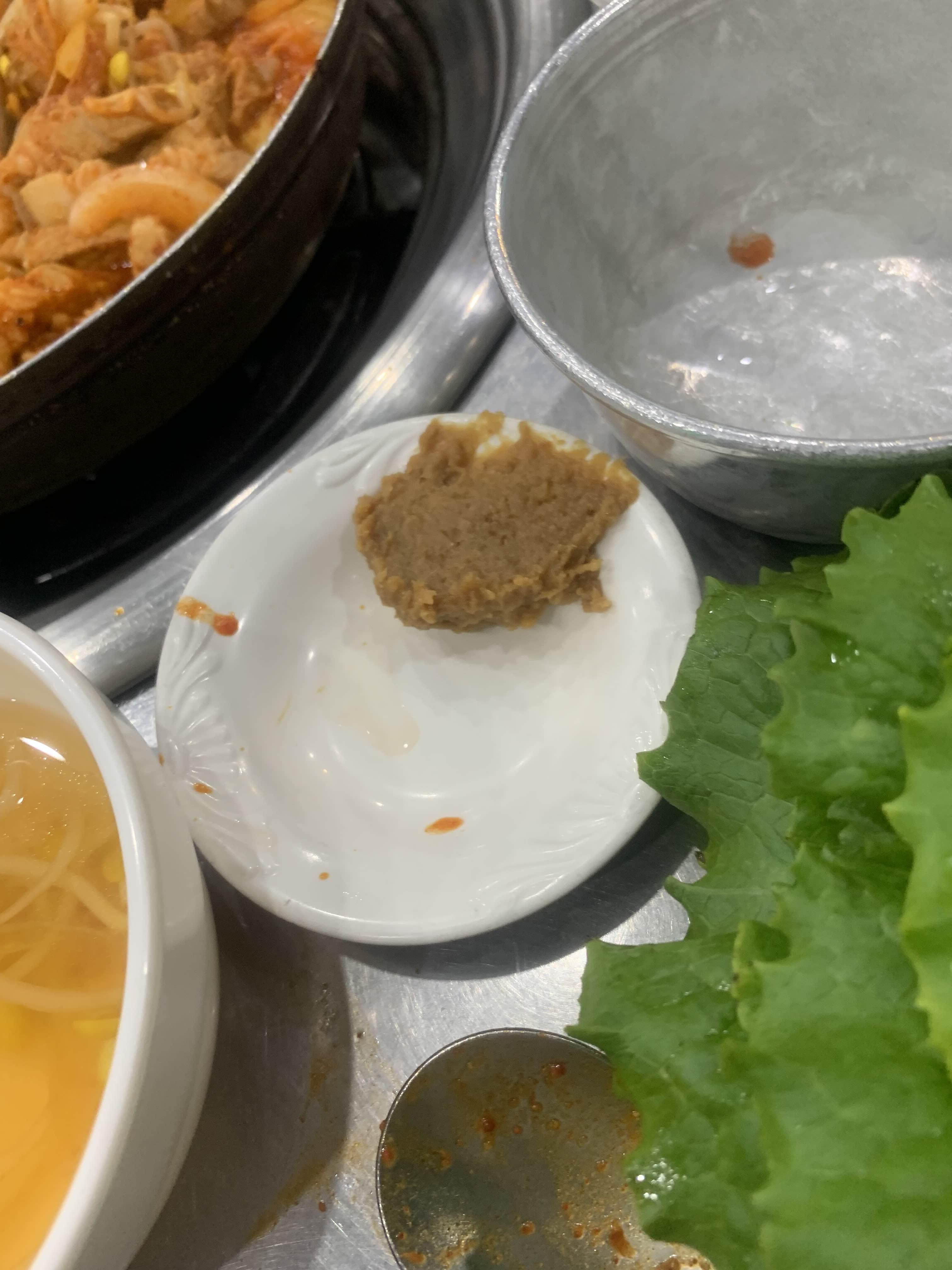 짜글이 식당의 된장을 살포시 넣어주면 꿀맛!