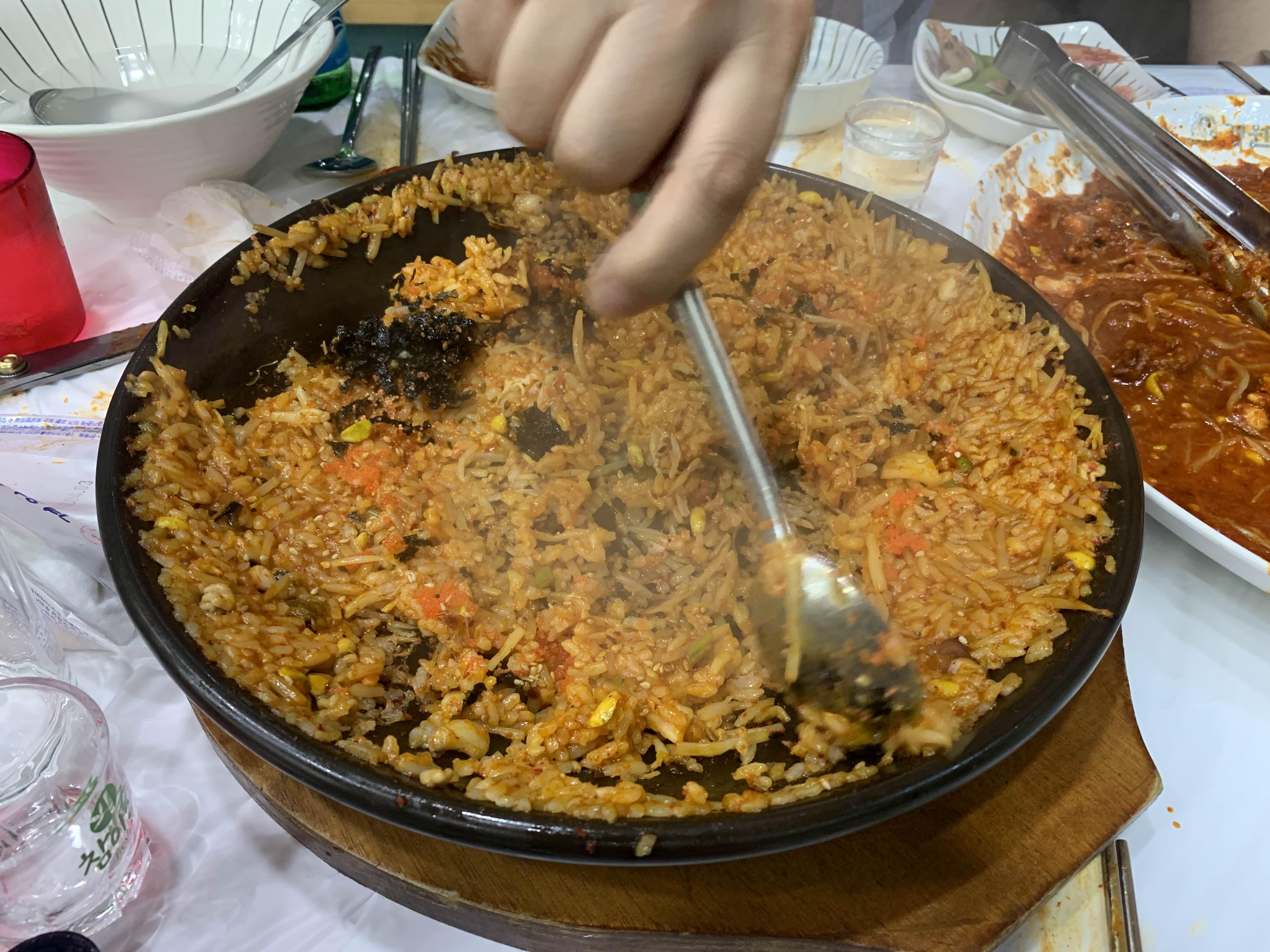 해물찜과 막걸리 2명을 먹은 상태라... 이미 배가 많이 불러서... 볶은밥을 어떻게 먹나 생각했는데...