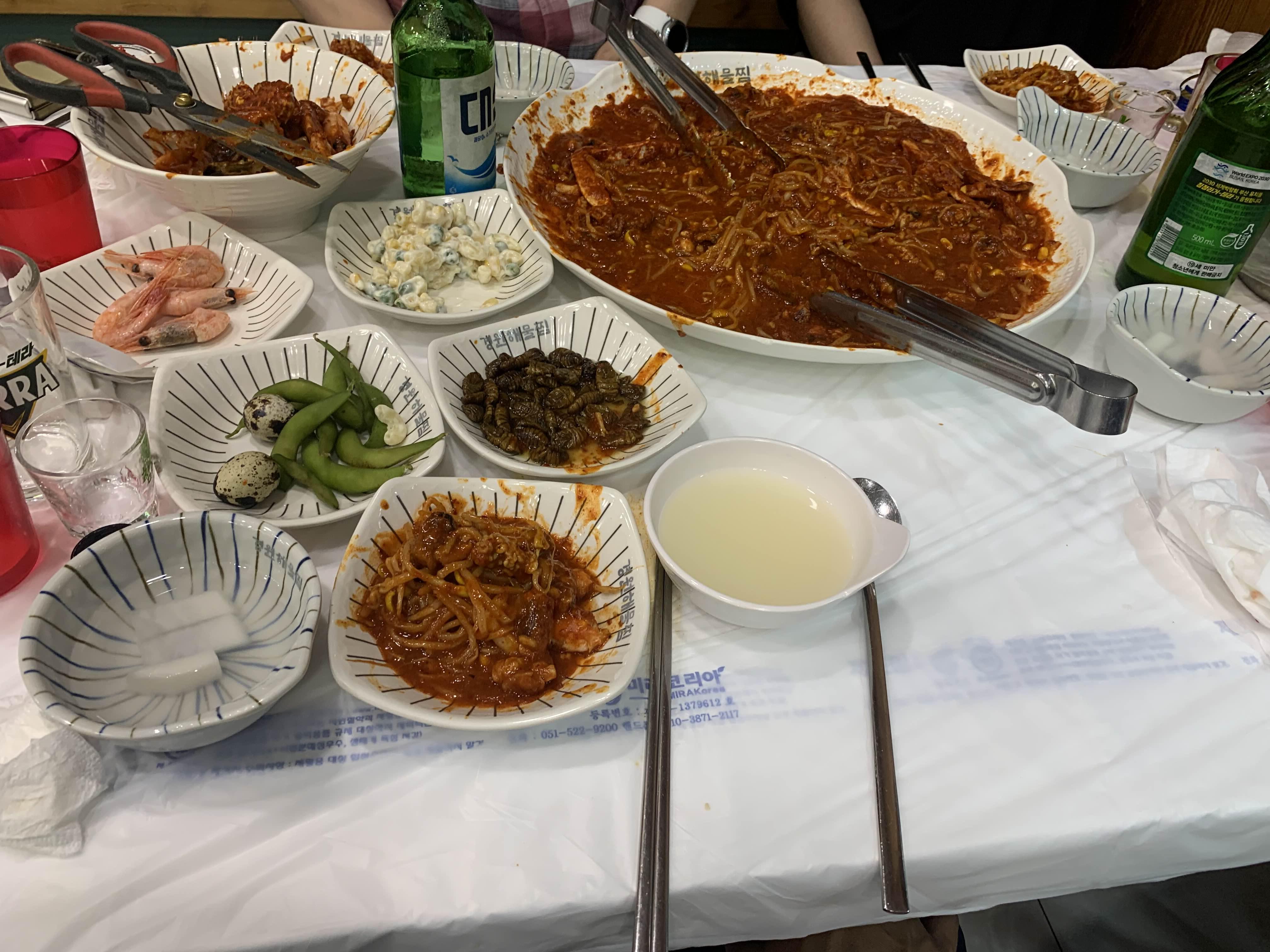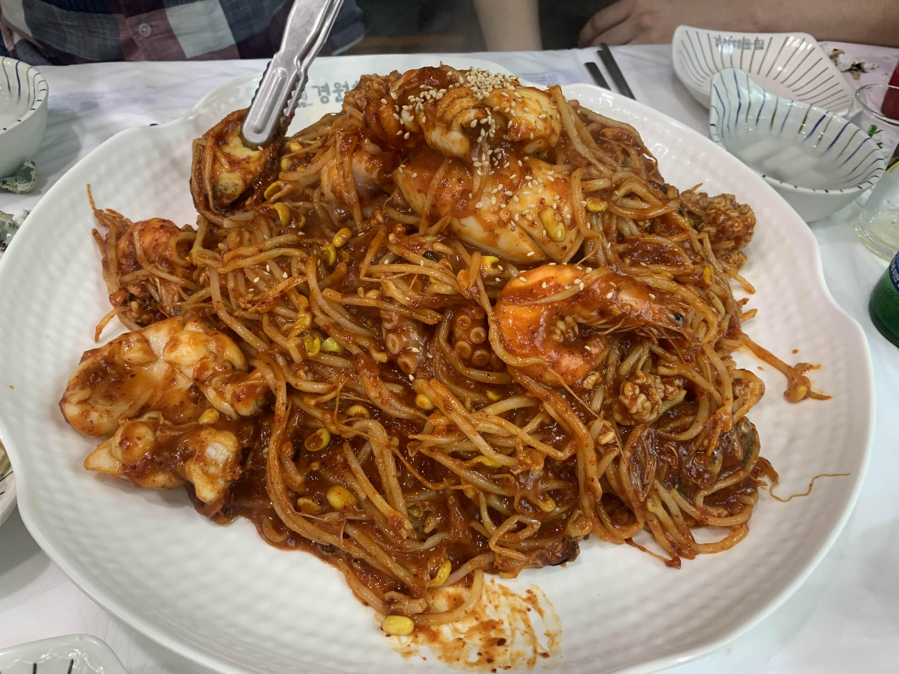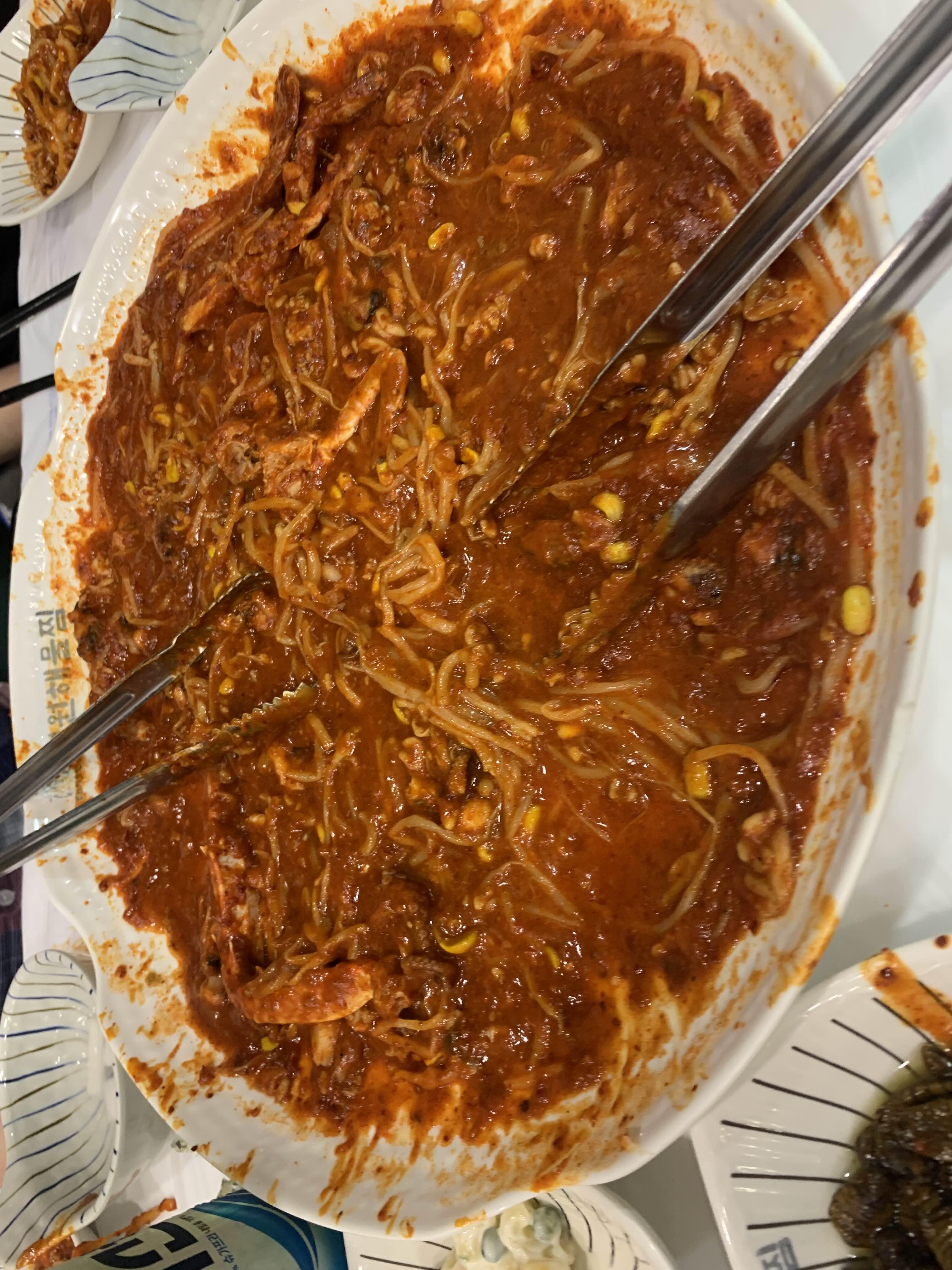 양이 상당히 많은 해물찜!!ㅎㅎ 집게와 가위를 사용하여... 해물찜을 먹기 좋은 사이즈로 손질해 주고! 바로 식사시작~