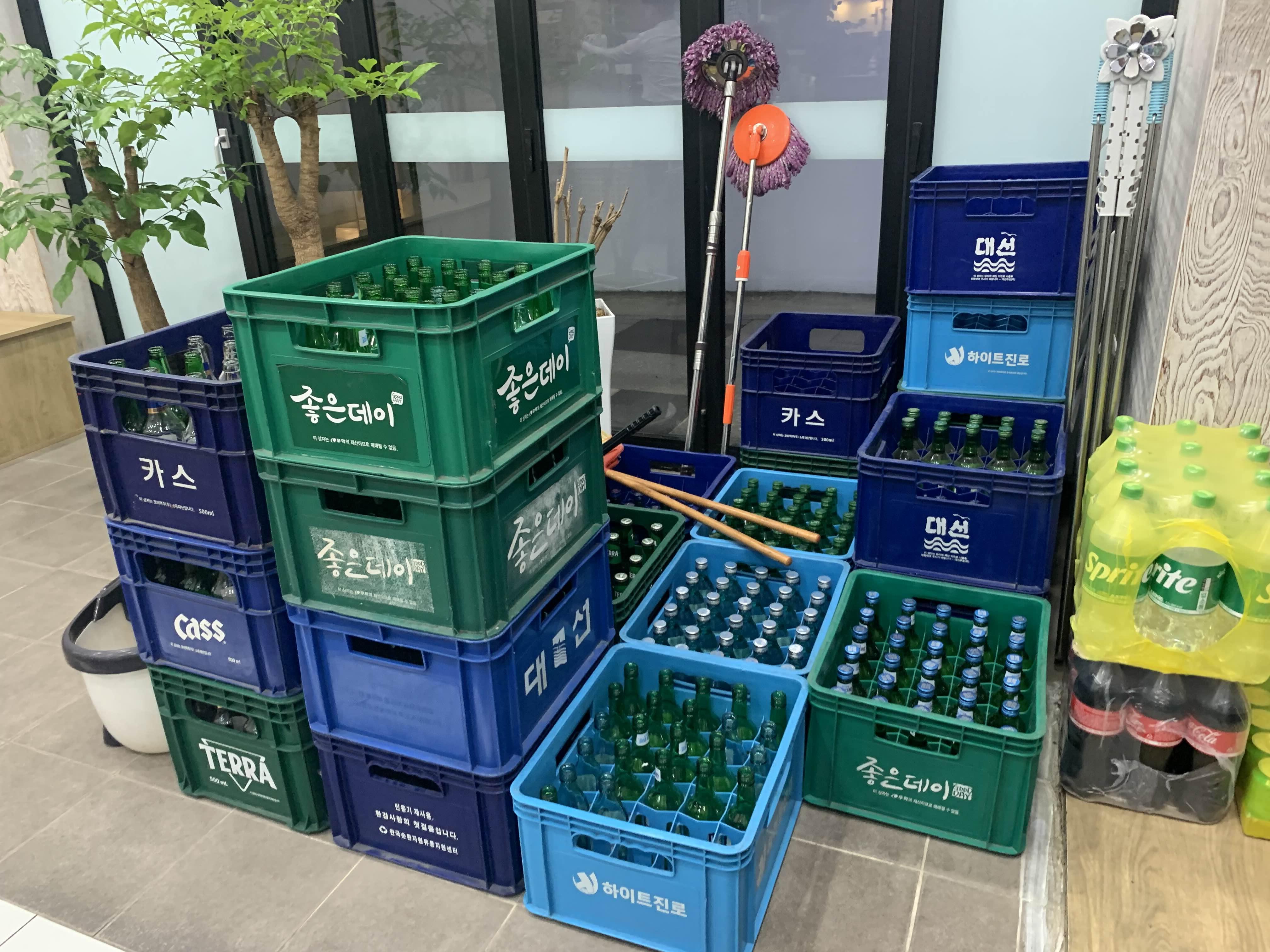 식당에 들어서며... 입구에 쌓아놓으신, 술박스...... 엄청 많다.ㅎㅎ