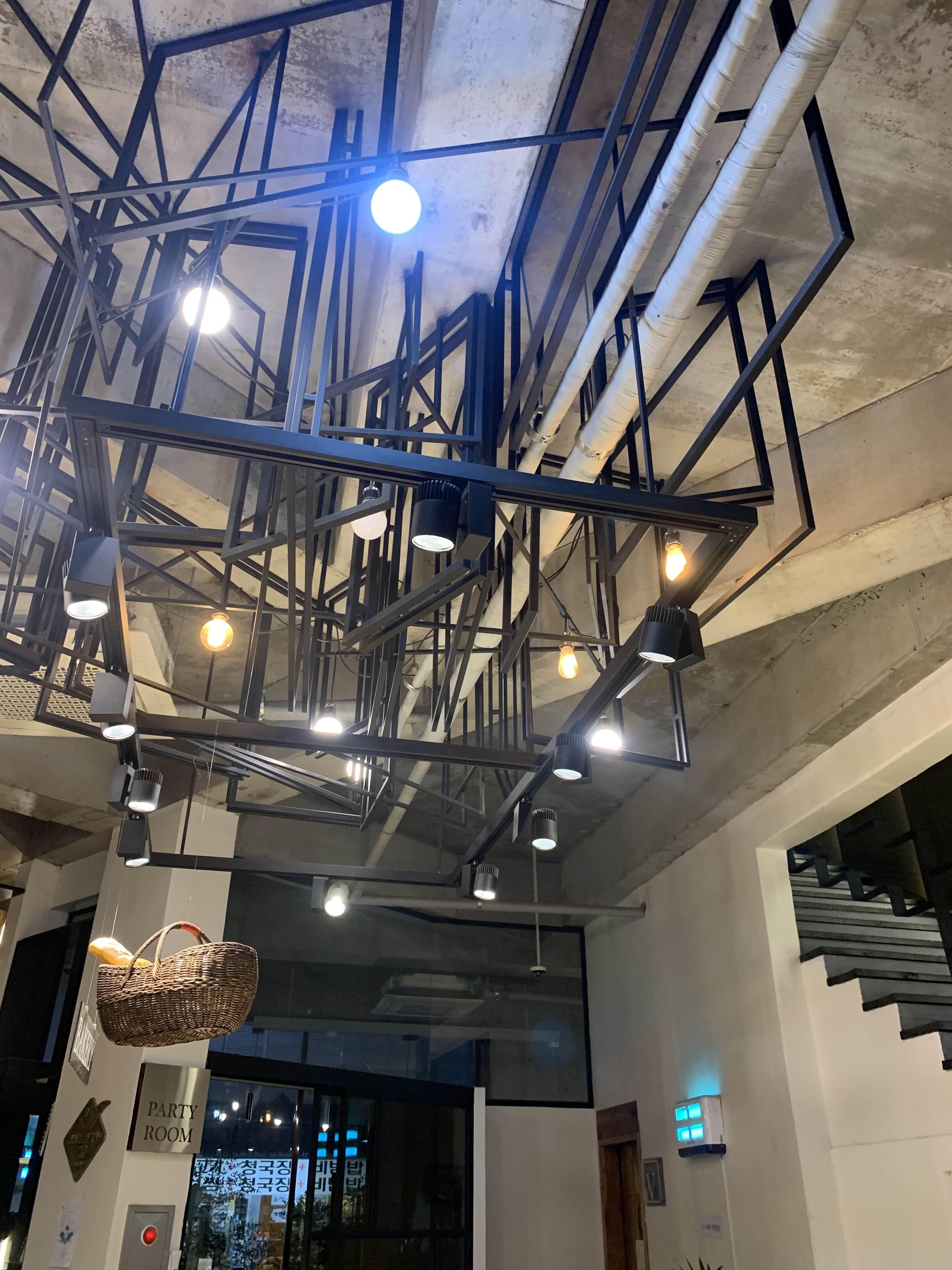 내부 인테리어는 오픈형 천정으로... 레이스웨이를 이용한 등기구 그리고 노출 콘크리트로 마감되었다.