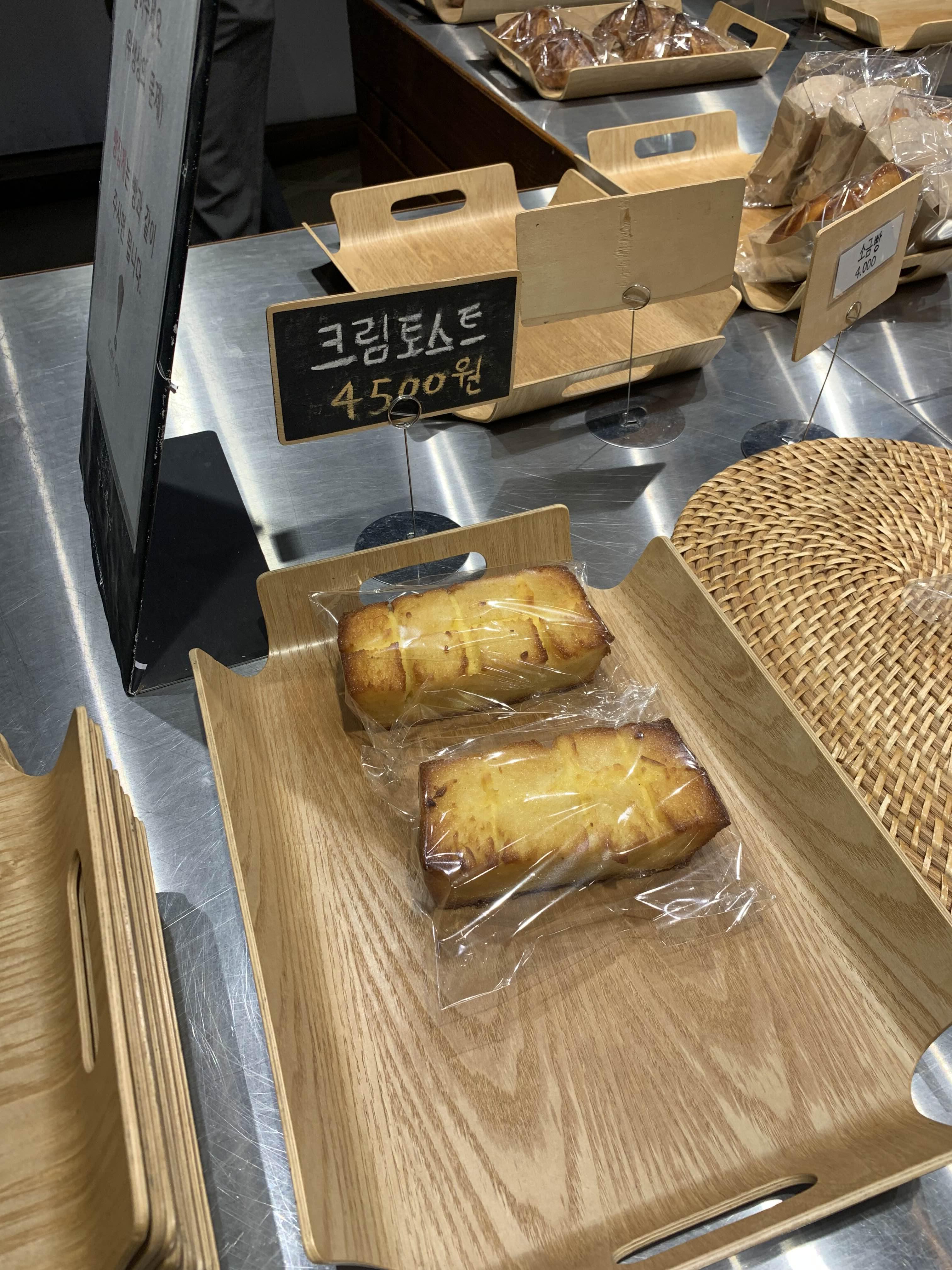 크림토스트, 마늘치즈플라워, 소금빵과 자몽블랙티를 주문해 보았다.