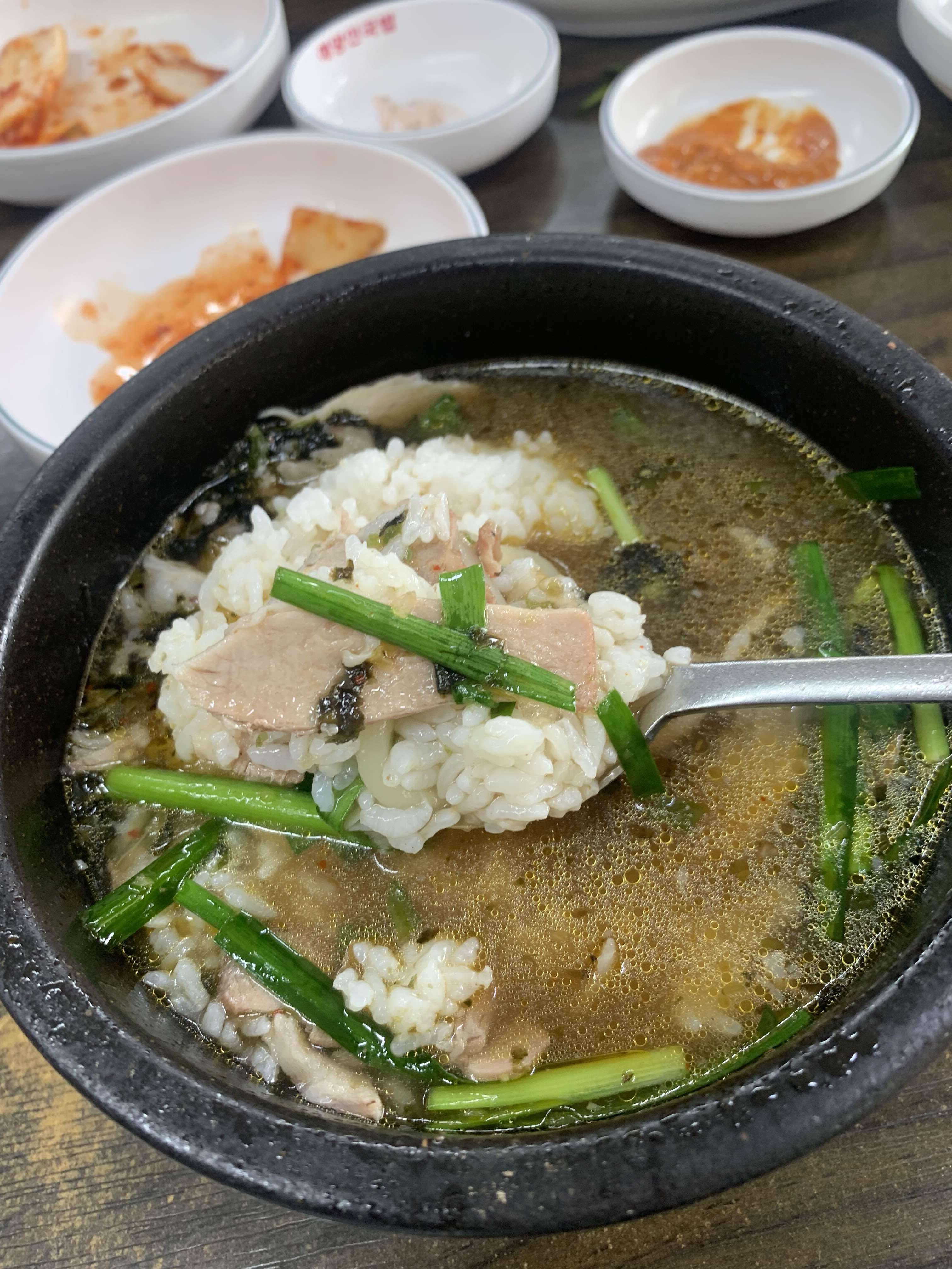 국밥에 숟가락이 꼽혀서 나온다.ㅎㅎ