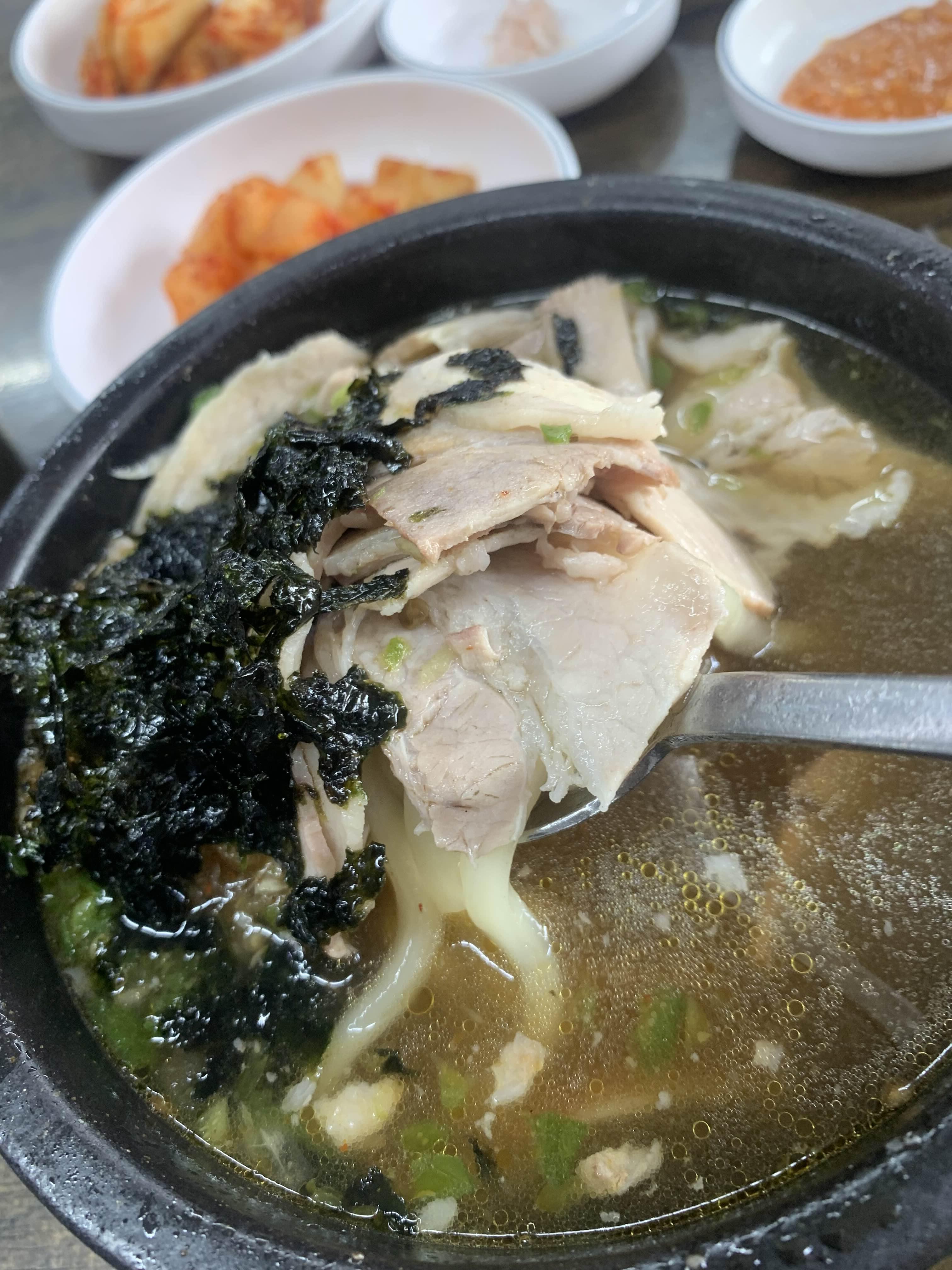 가락국수면을 한 젓가락 맛보는 돼... 상당히 쫄깃하며, 국밥의 국물과 조합이 좋다.ㅎㅎ 그리고, 김가루!ㅎㅎ