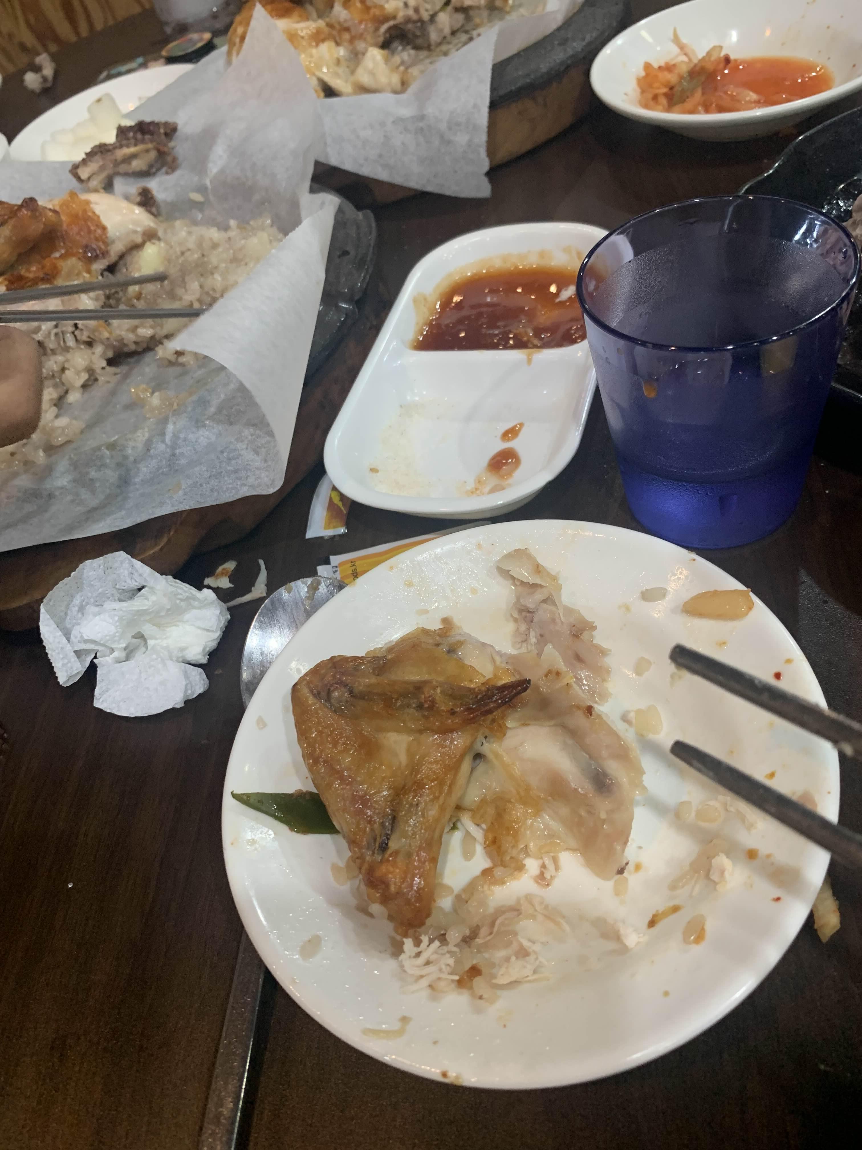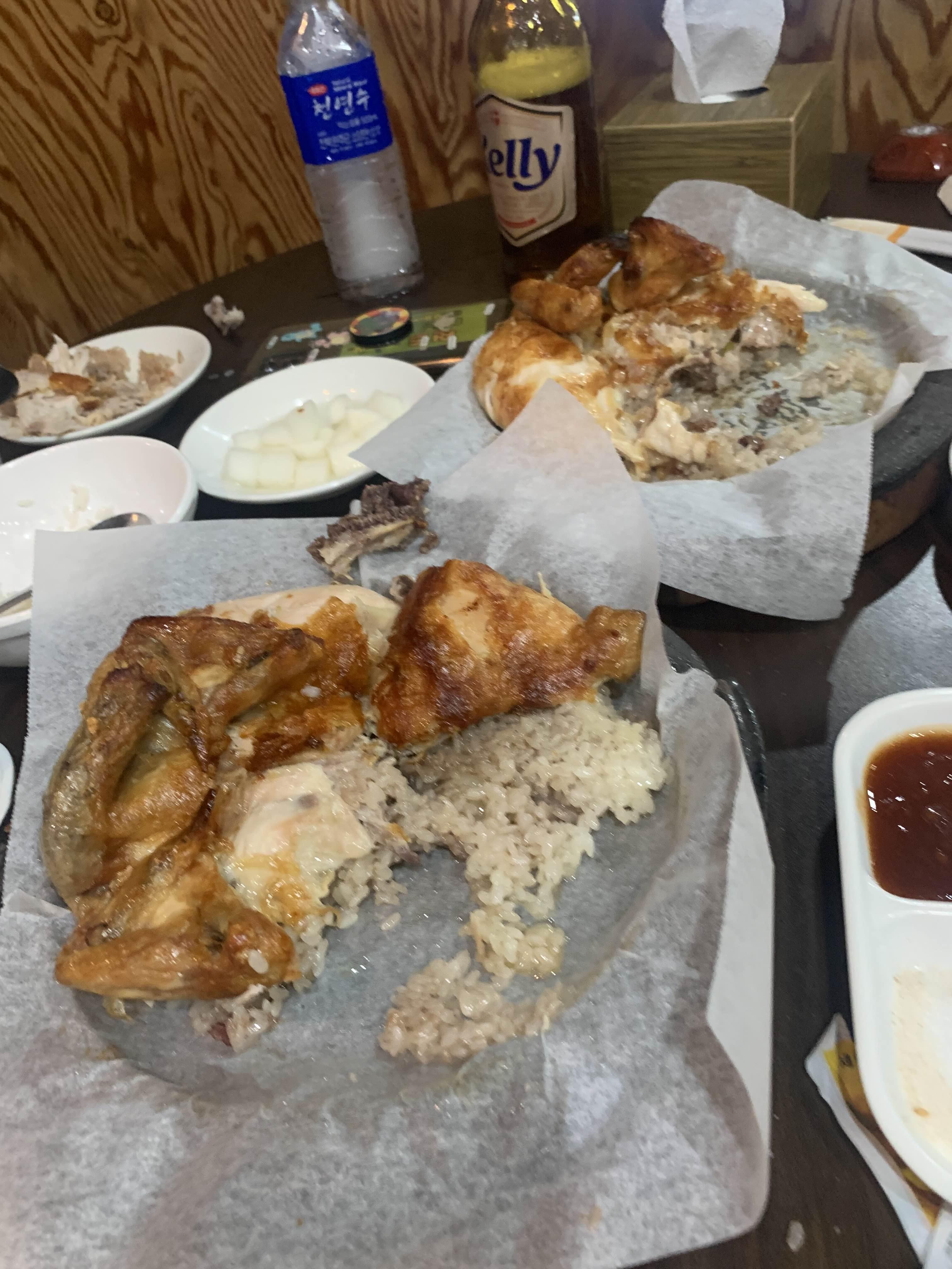 아이들은 미역국에 공깃밥.... 통닭구이가 빠르게 나오면 좋겠으나... 미리 만들고 있지는 않은 듯하더군요. 주문이 들어오면.... 그때 만들기 시작하시는 듯... 소요시간 1시간이라, 방문 전 미리 전화하고 방문해서 먹어야 할 듯합니다.