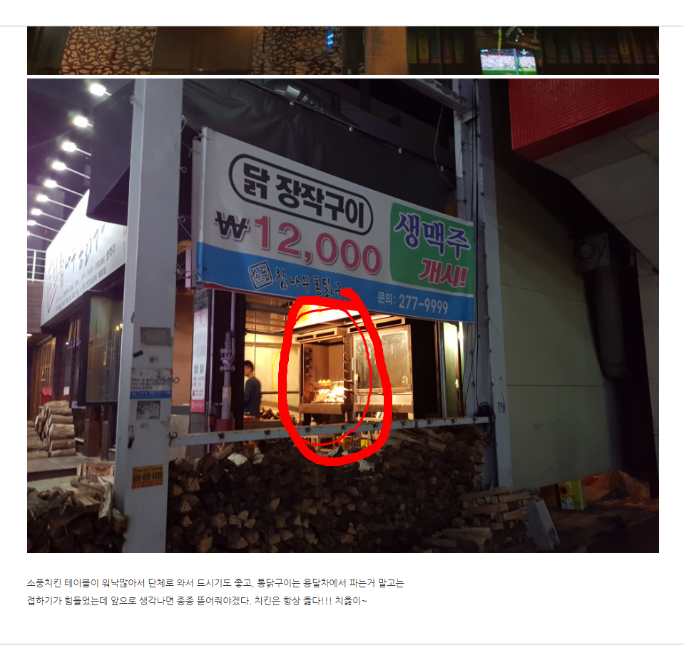 식당 입구에는 장작이 많이 쌓여있더군요... 하지만, 입구에.... 카페인지? 식당인지 헷갈리더군요. 카페와 통닭집을 하나의 공간에 함께 운영하시는 듯하더군요. 예전과 다르게... 식당이 잘 안 돼서 그런지... 다양한 매장이 하나의 공간에서 운영하는 듯합니다.