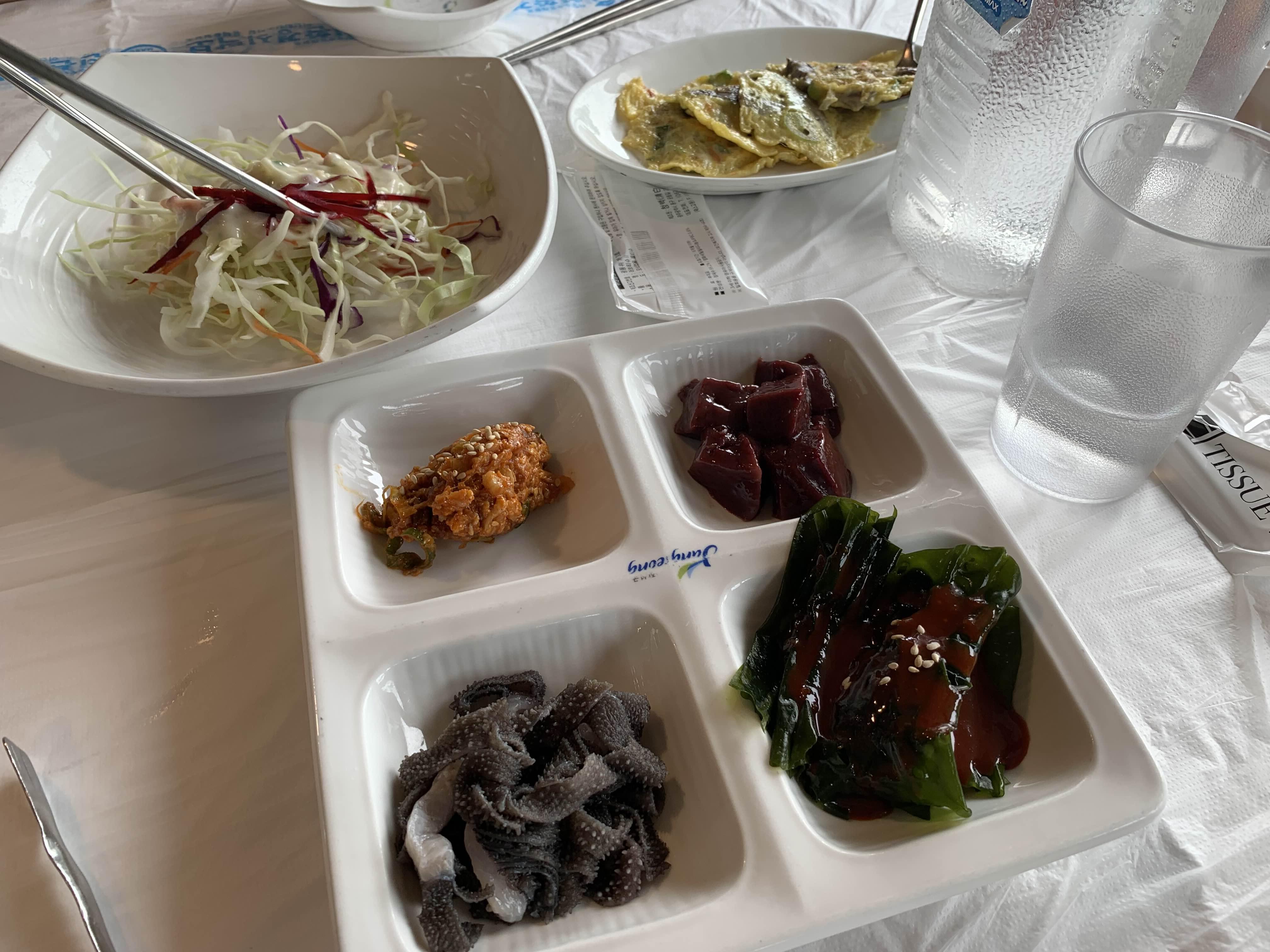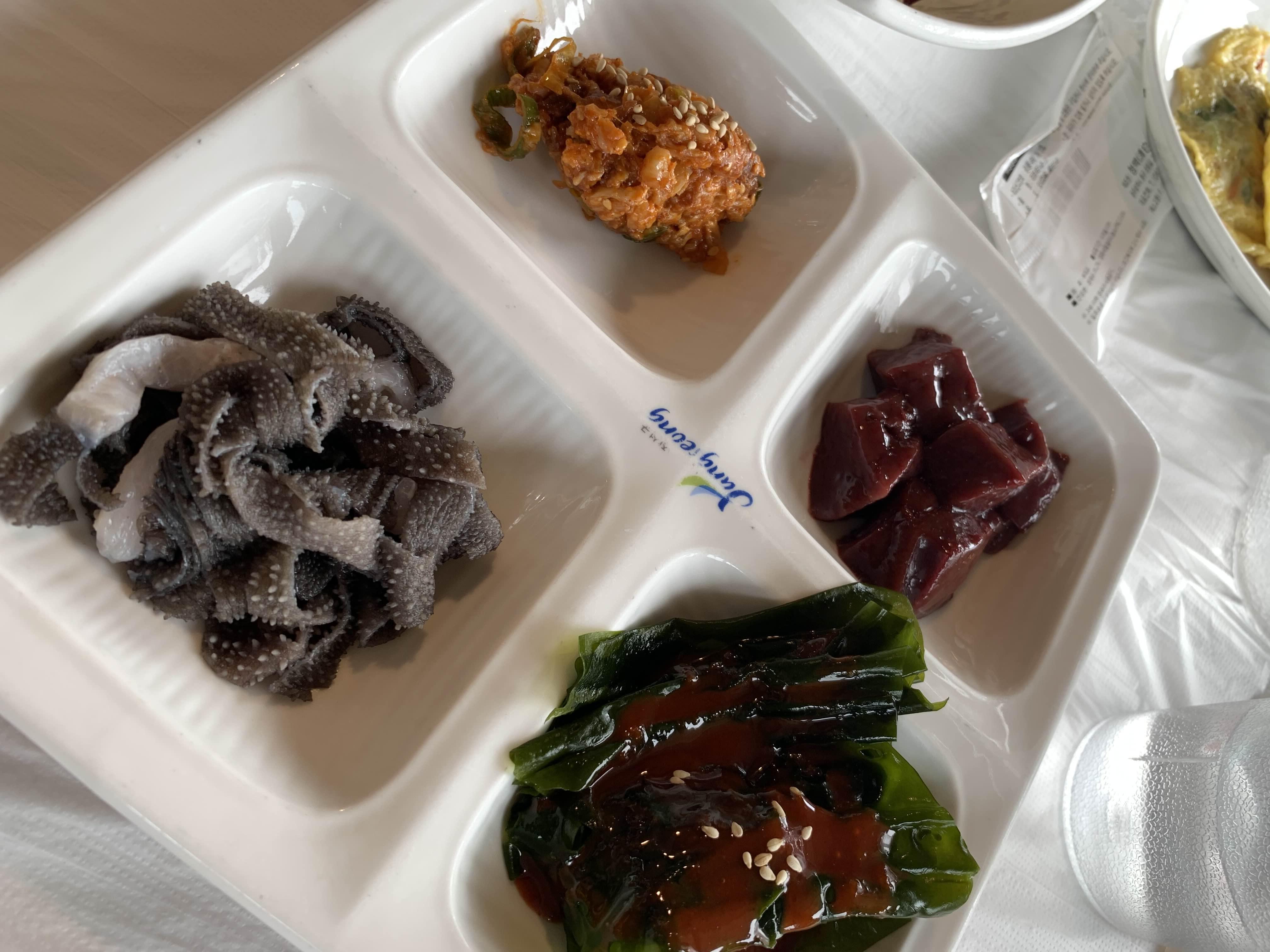 음식을 주문하면... 소고기의 간 그리고 천엽이 나오는데... 꽤 싱싱하고, 기름소금을 찍어 먹는데..