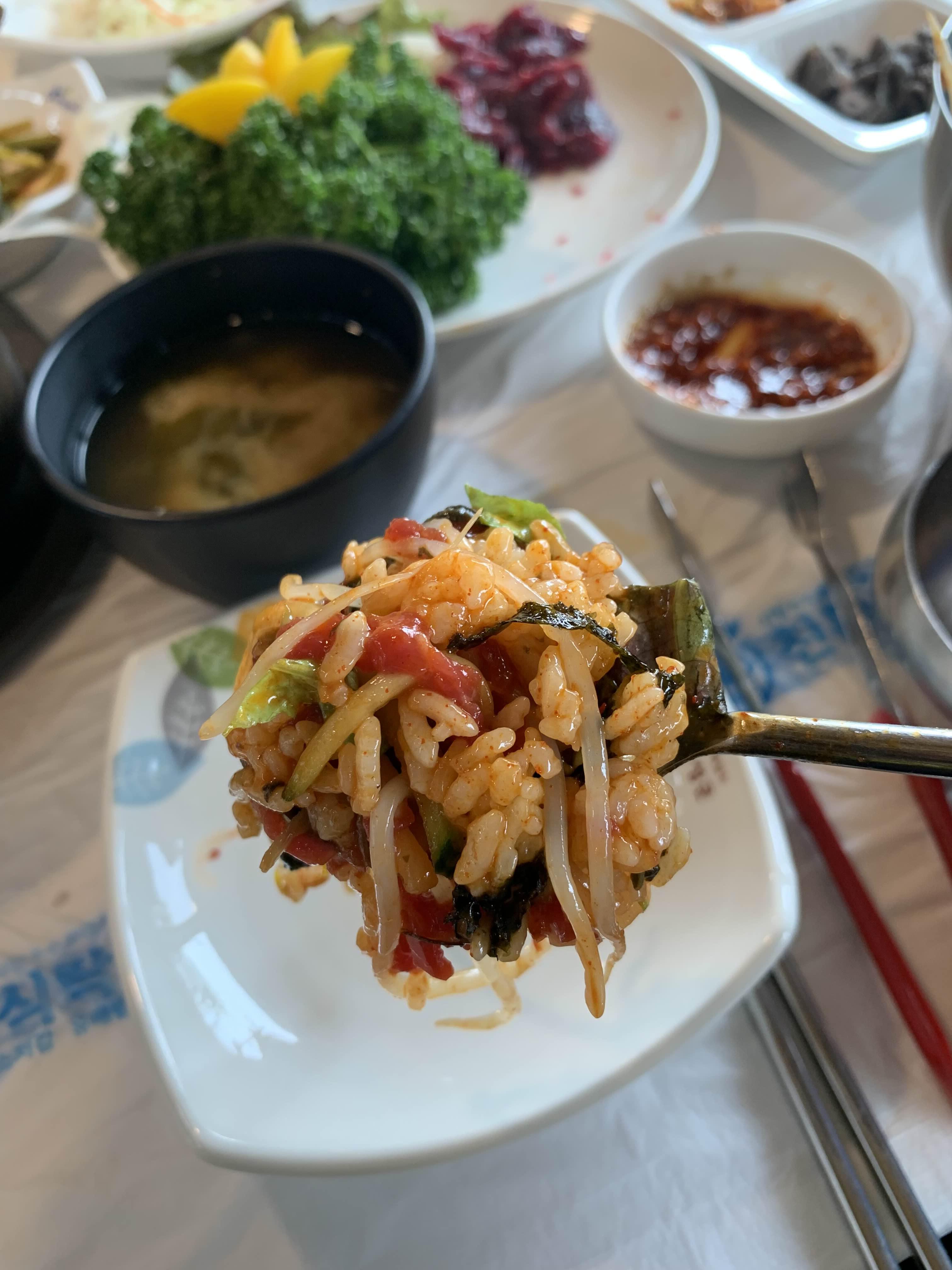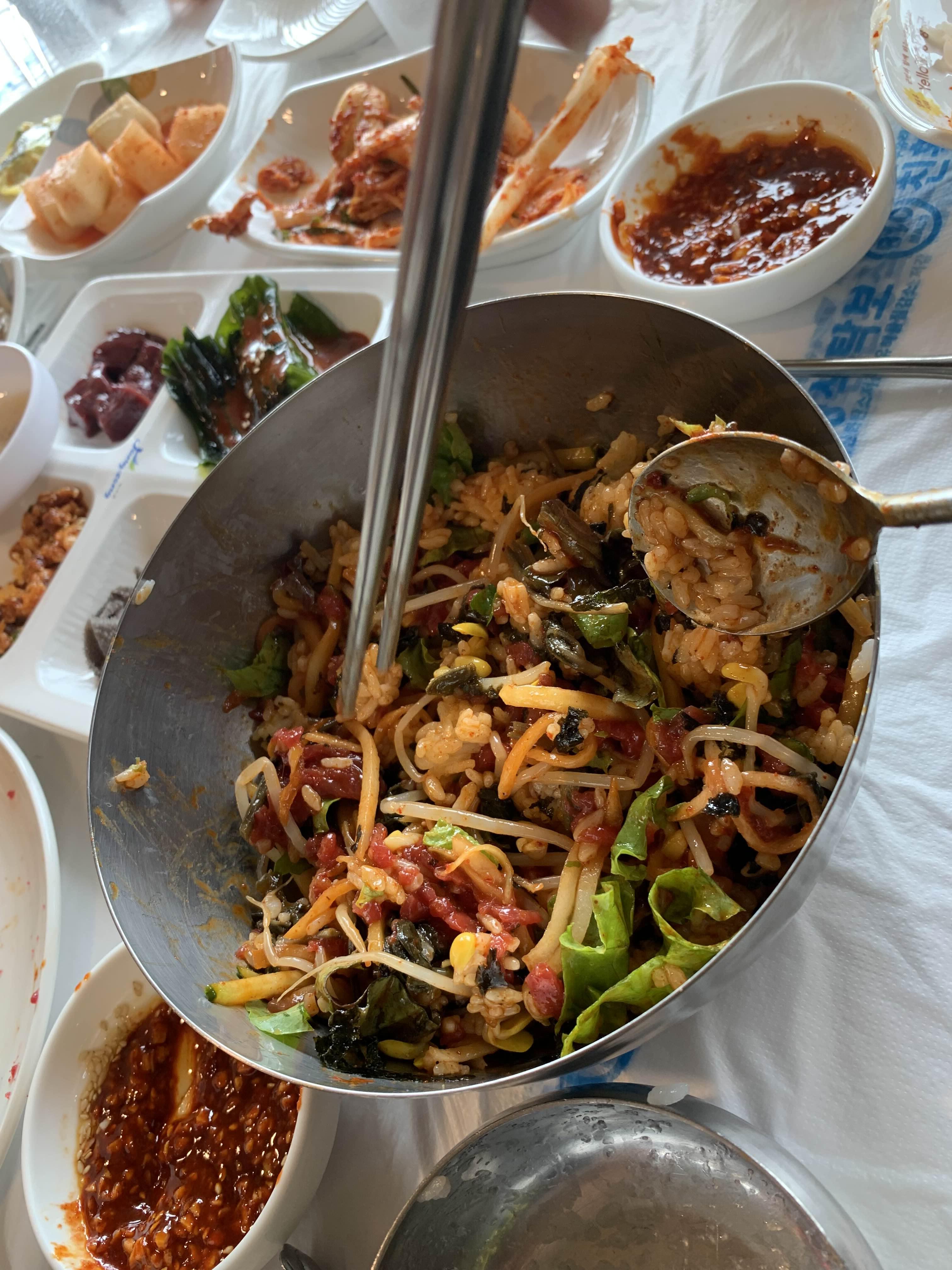 육회비빔밥! 공깃밥을 추가하고... 양념장을 더 넣어서... 풍족하게 먹어야 비빔밥이 맛나죠!ㅎㅎ