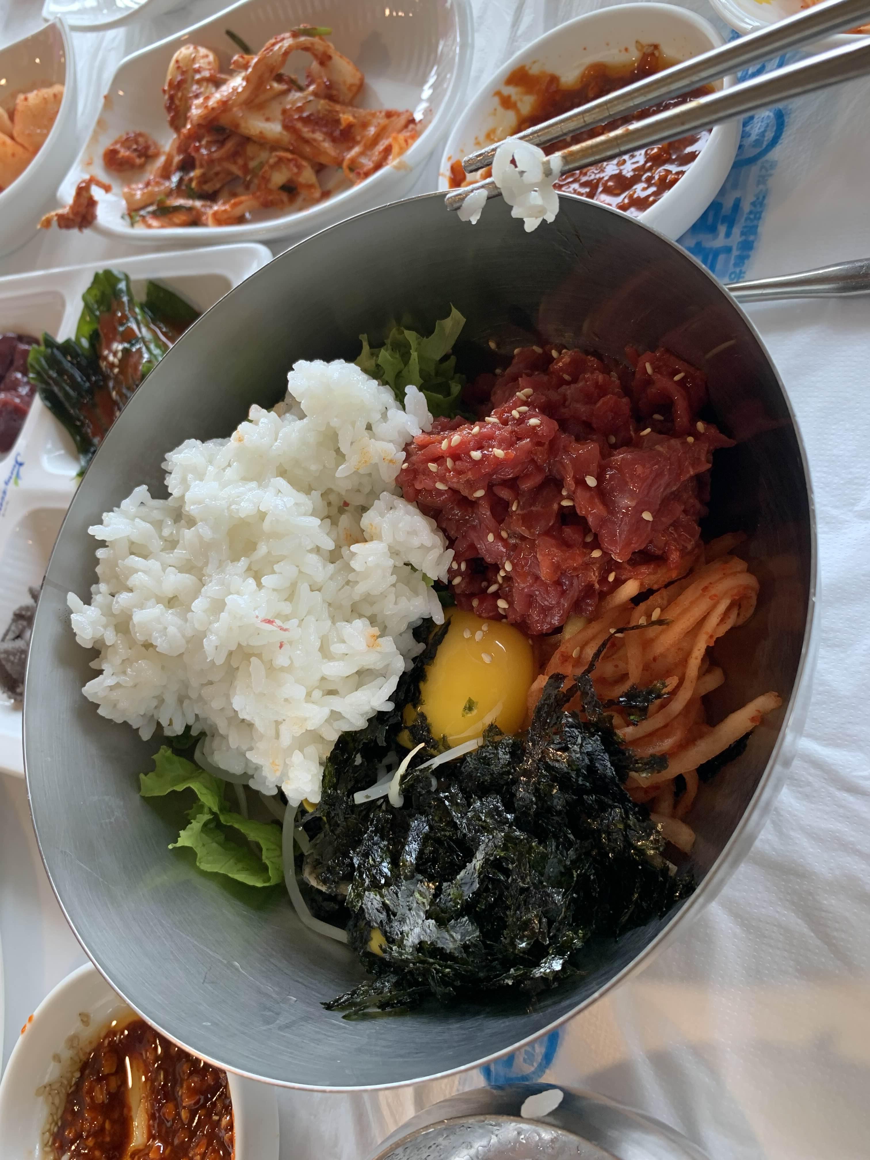주 메뉴는 육회비빔밥 그리고 생고기~