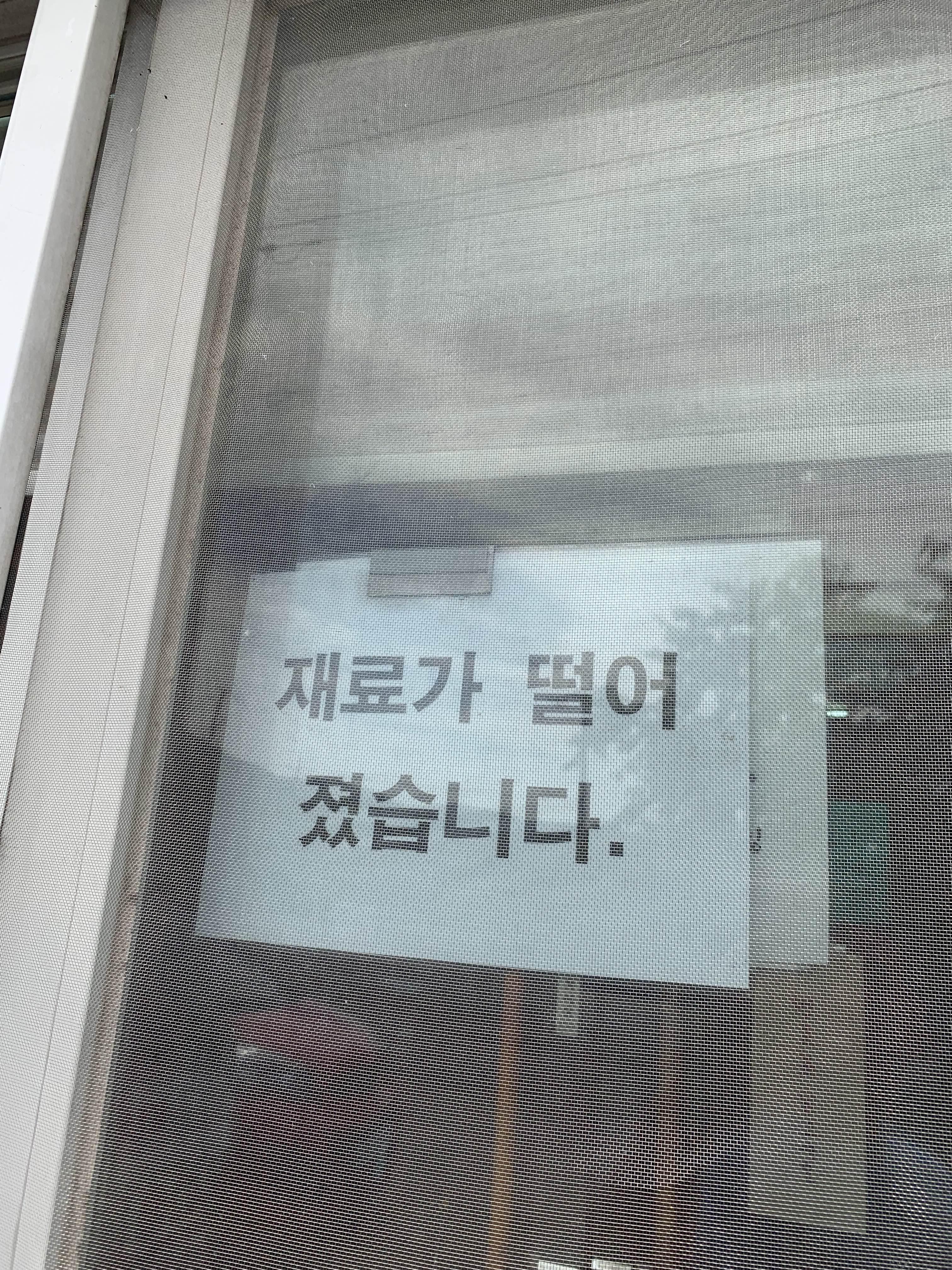 "재료가 떨어졌습니다."라는 안내문이 보이더군요.