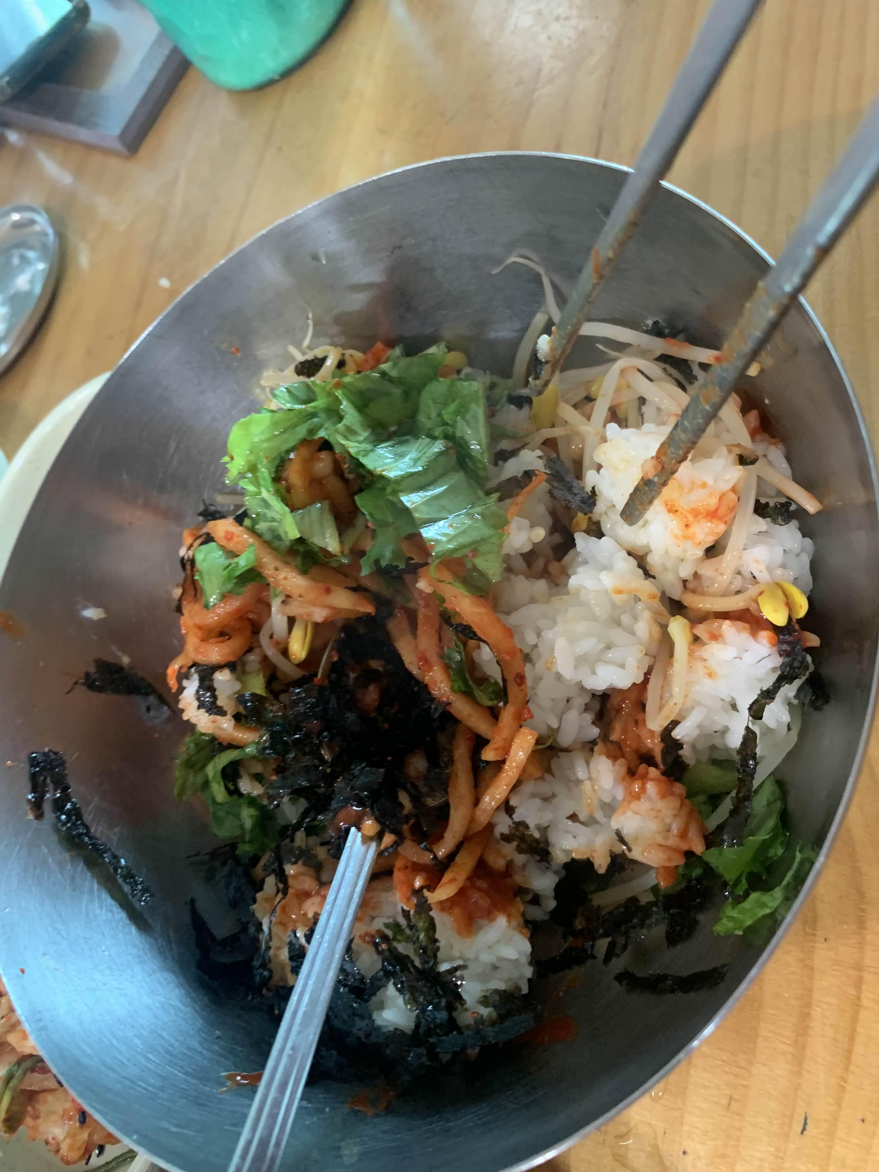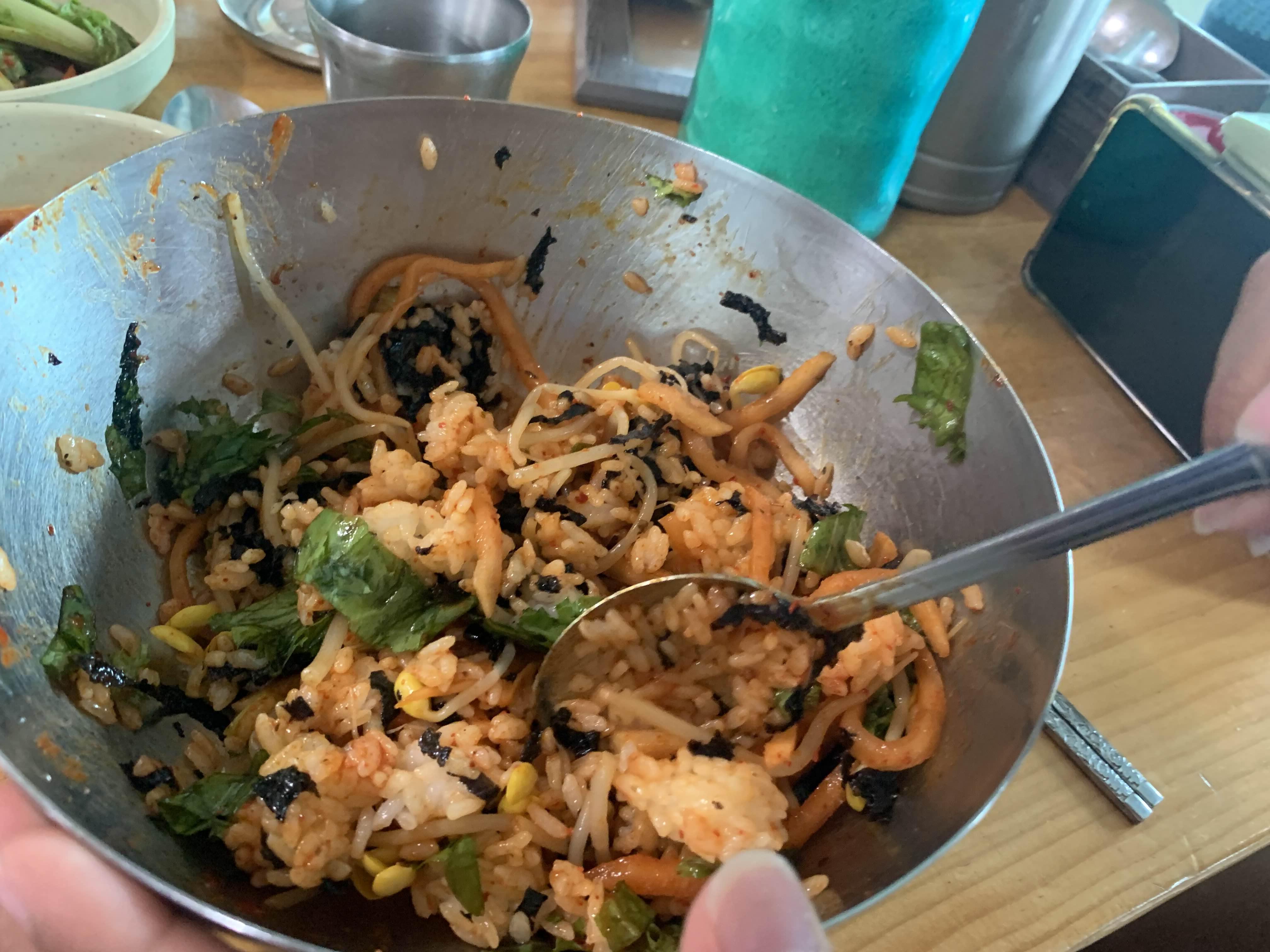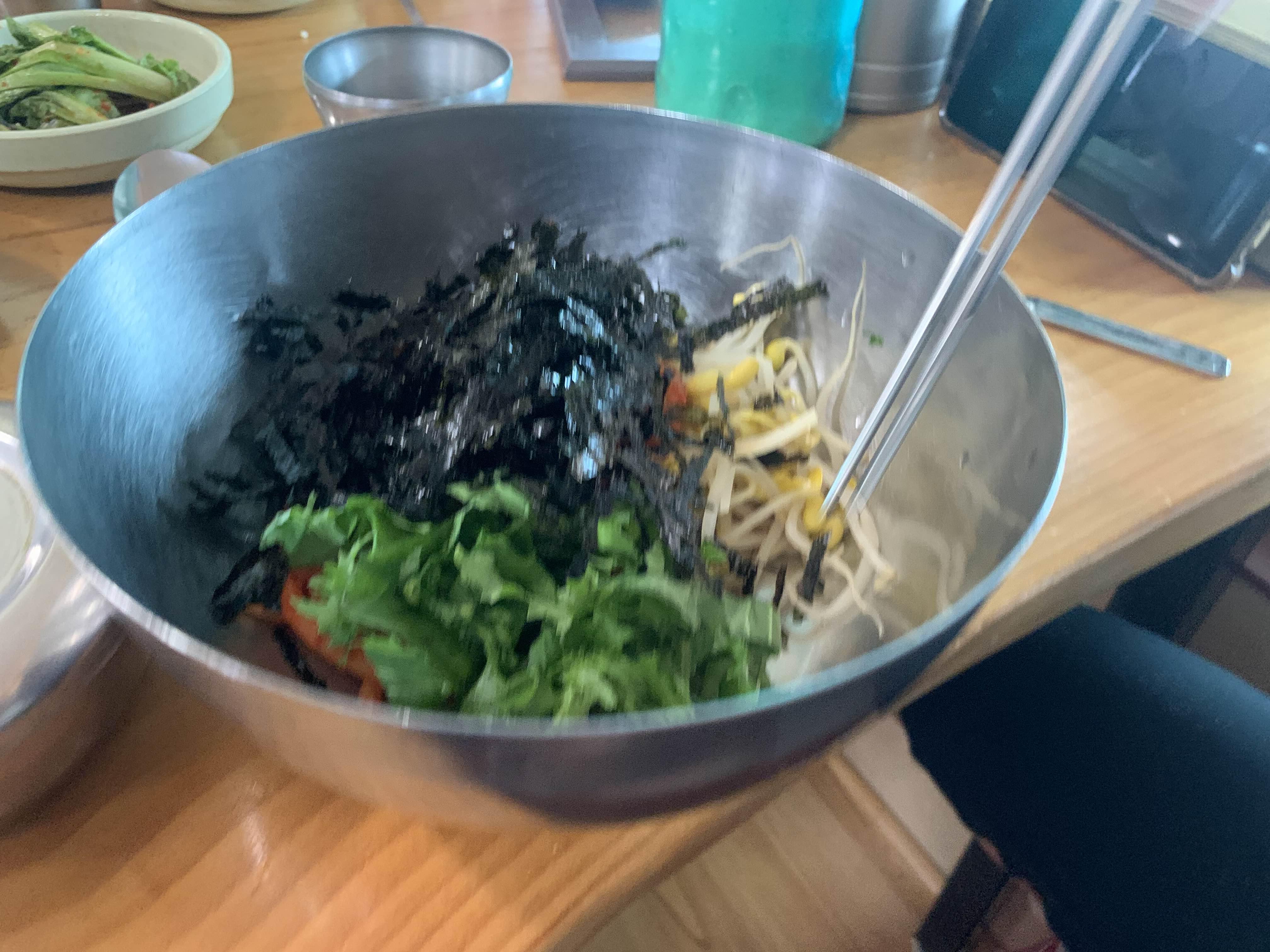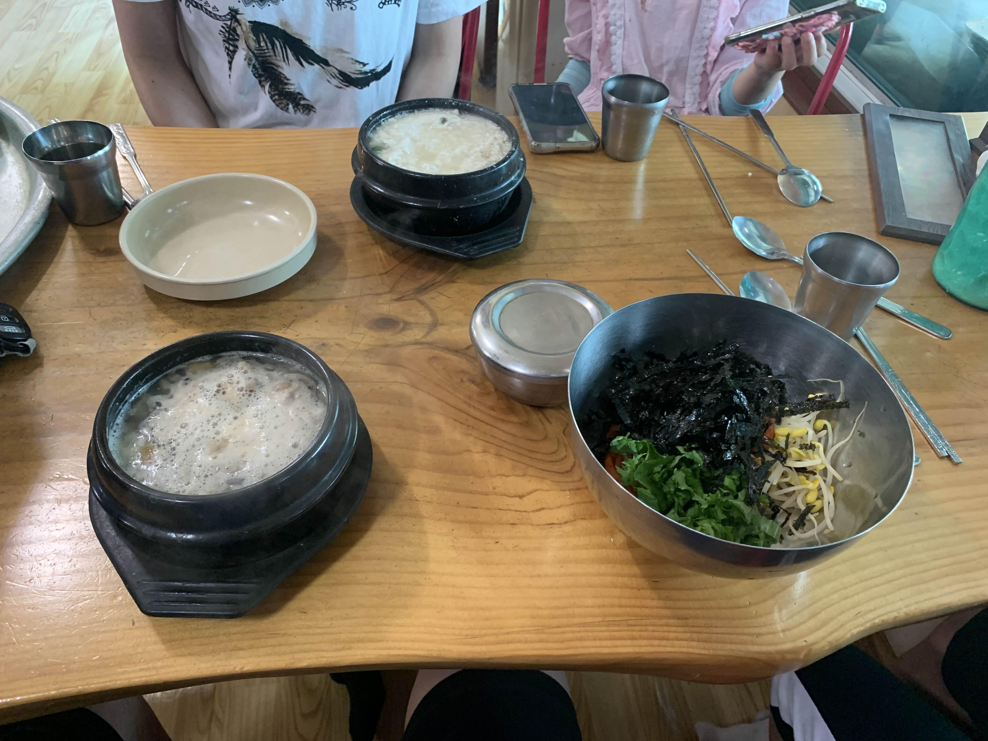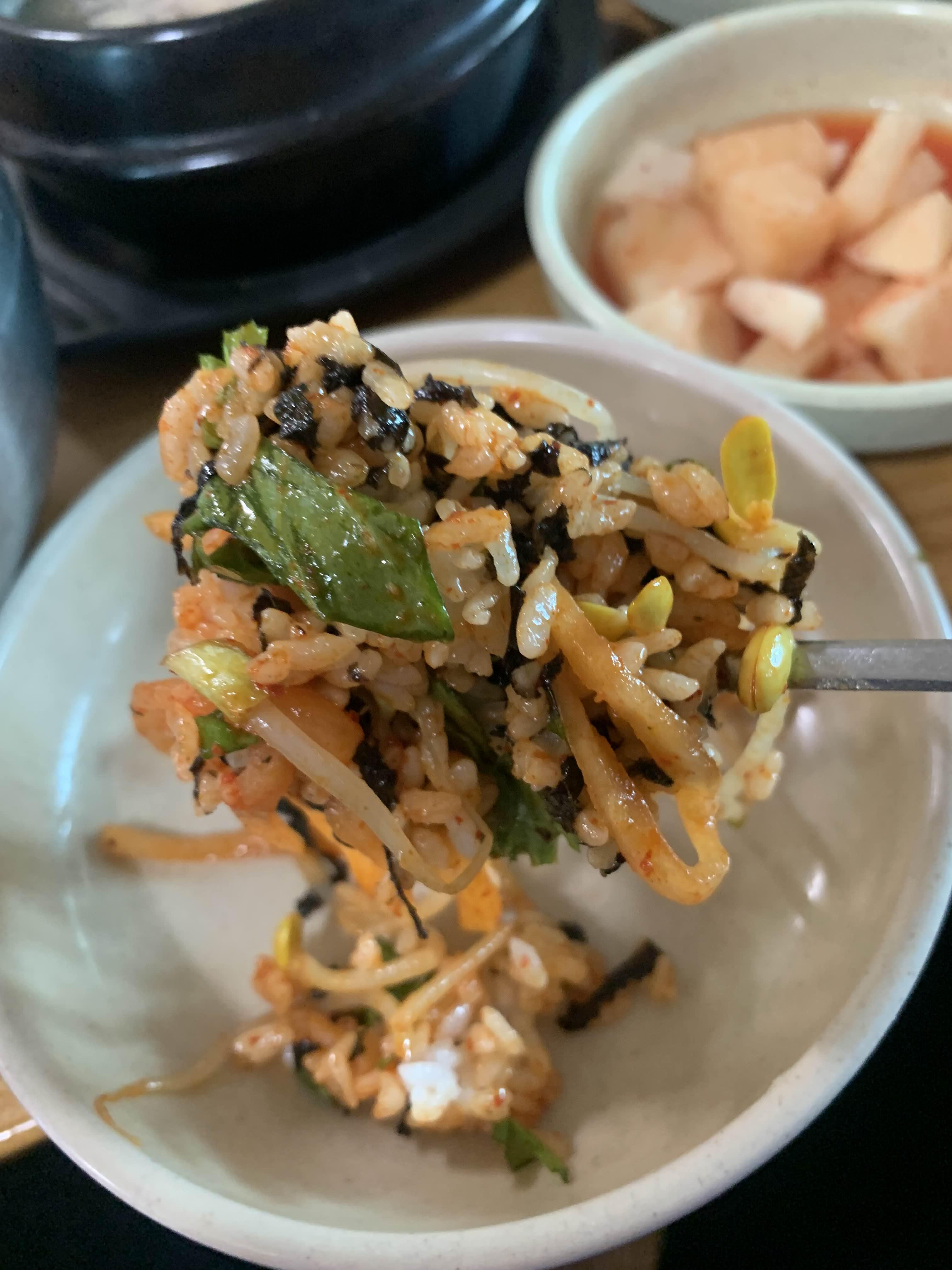 청국장과 순두부가 나왔습니다. 청국장은 비빔밥 재료와 함께 나옵니다. 청국장을 비빔밥에 함께 비벼먹기 좋겠더군요.