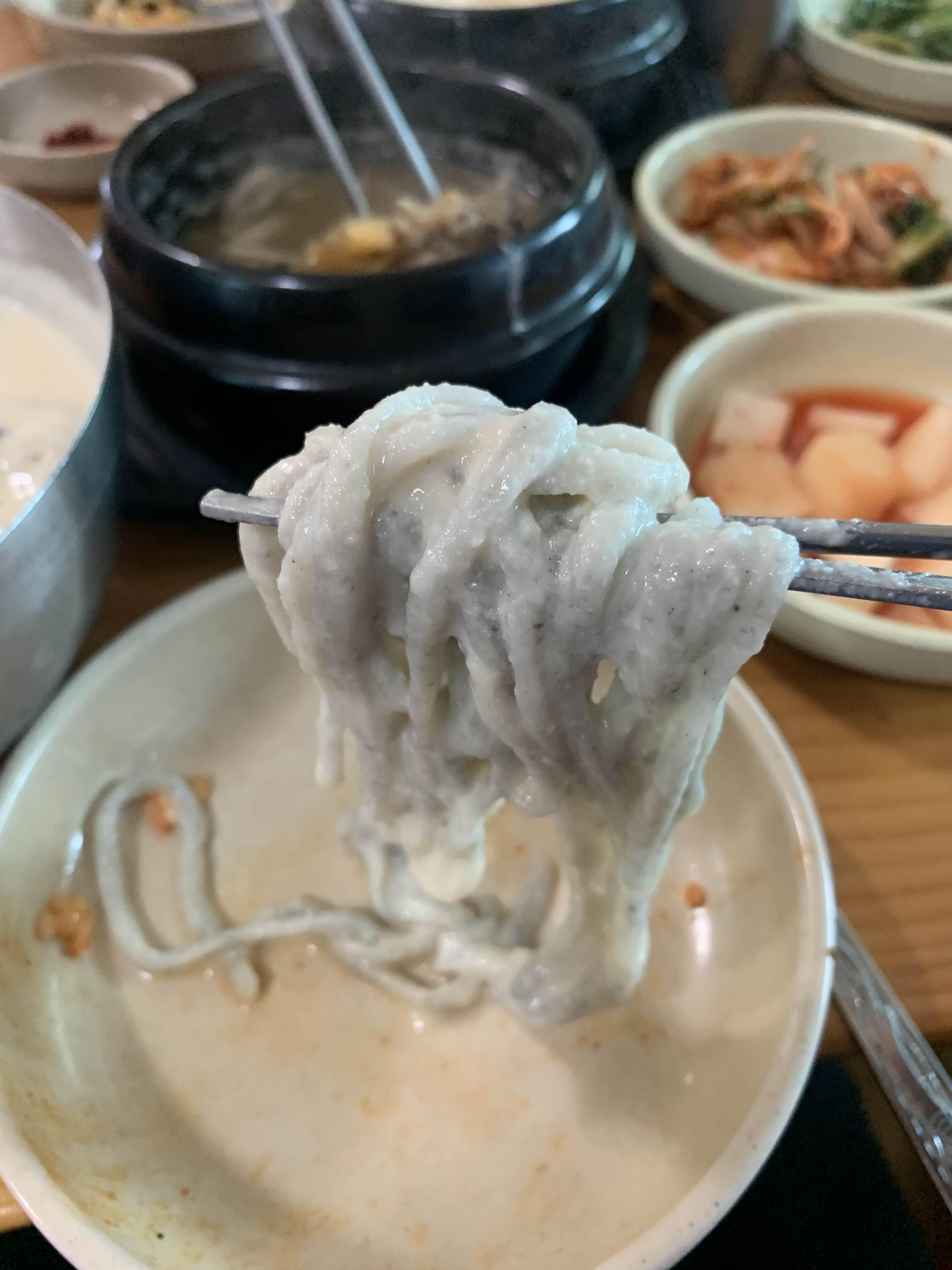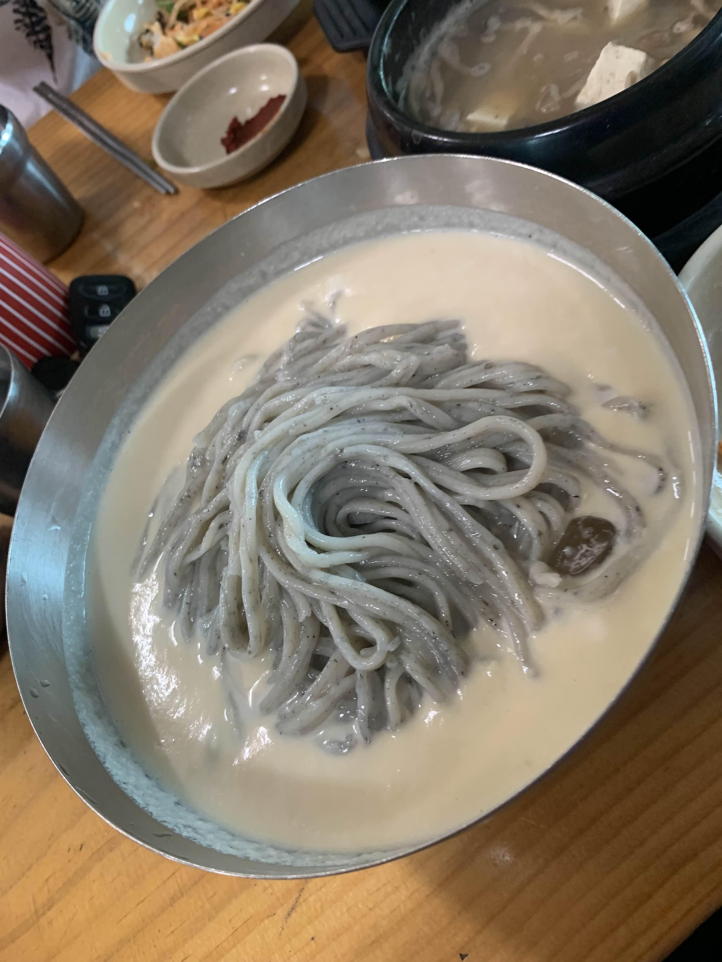 아... 청국장과 순두부를 엄청 맛나게 먹고 있는 사이!! 콩물국수가 나왔습니다.