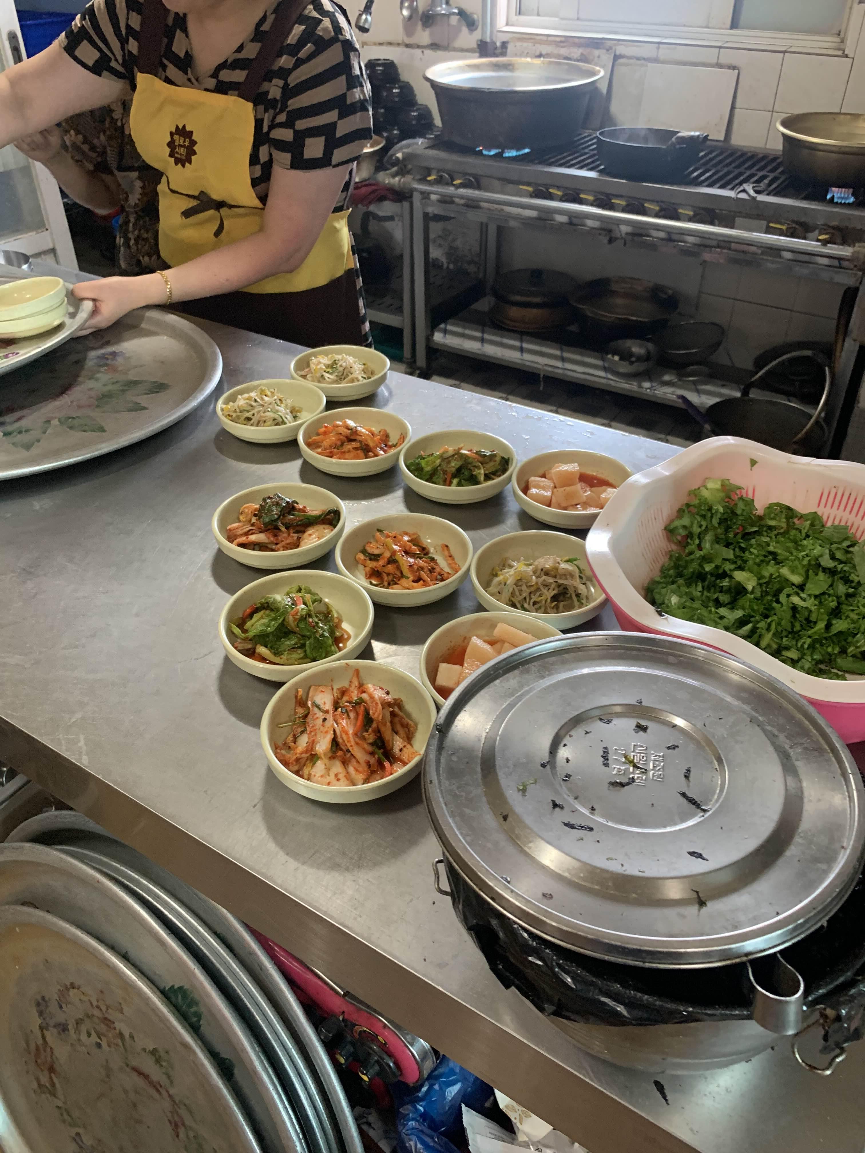 주방에서 밑반찬을 담긴 그릇을 보는데.... 식당의 음식이 상당히 맛있게 보이더군요.