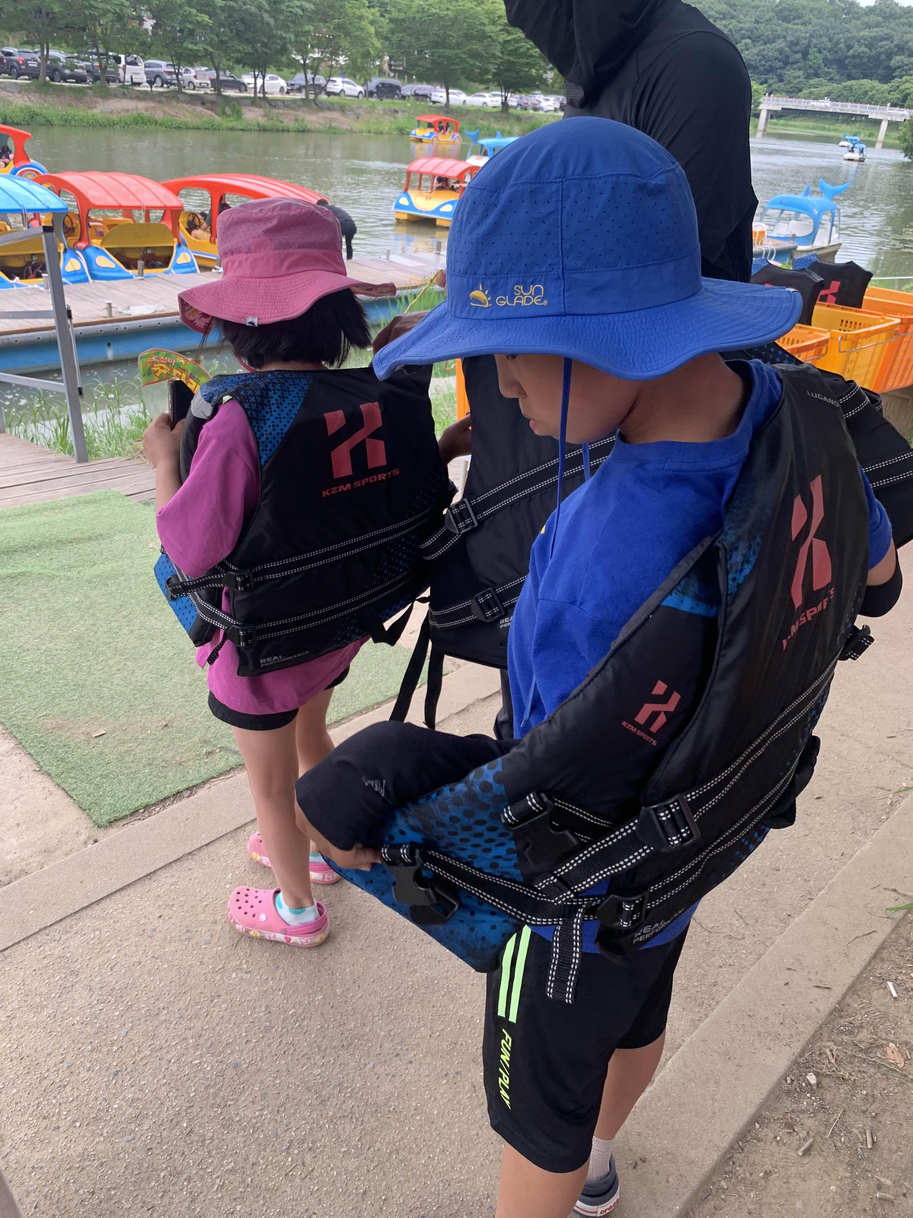 오리배 답승하기 전 안전을 위해 구명조끼 입어주고!!