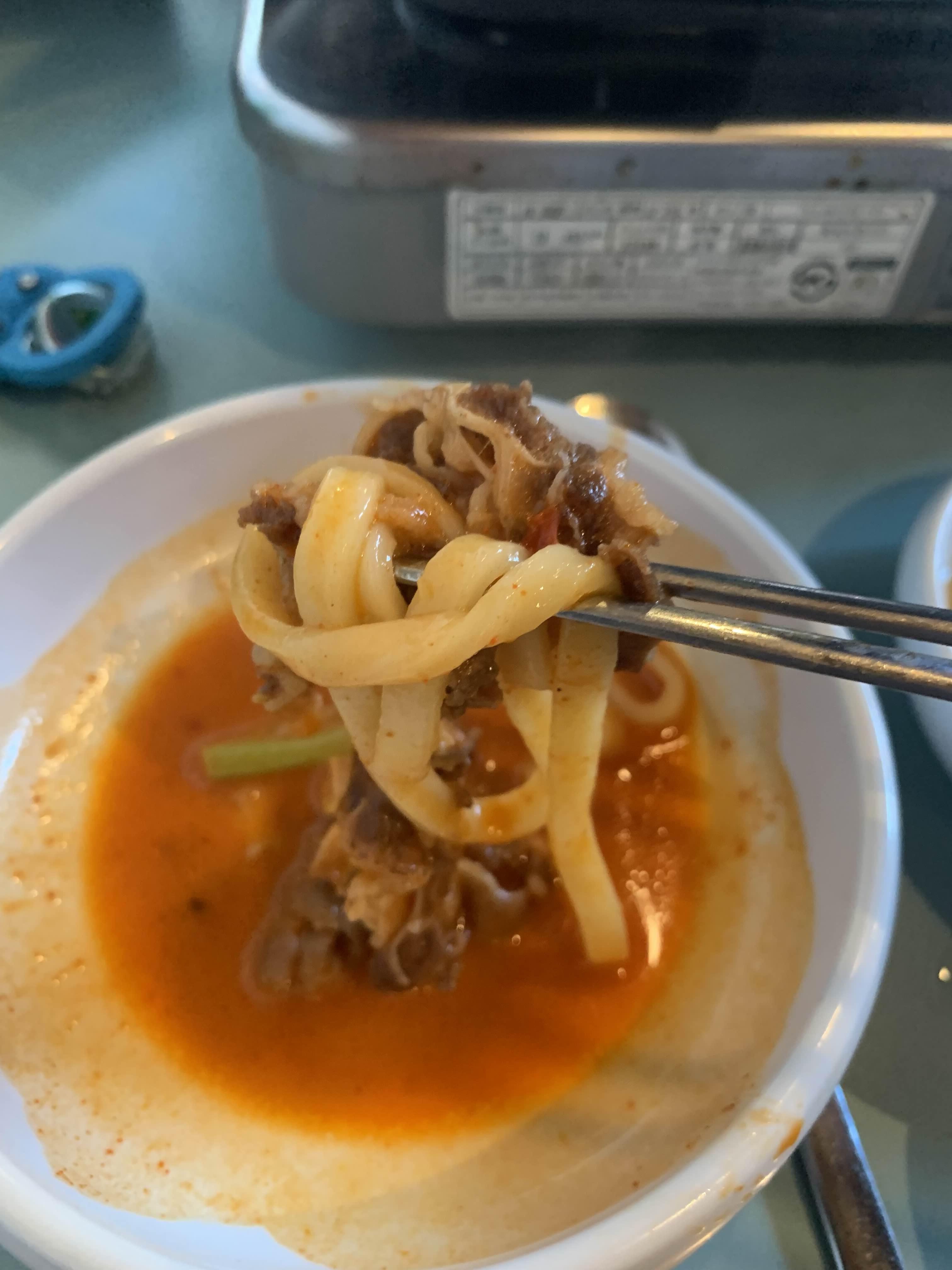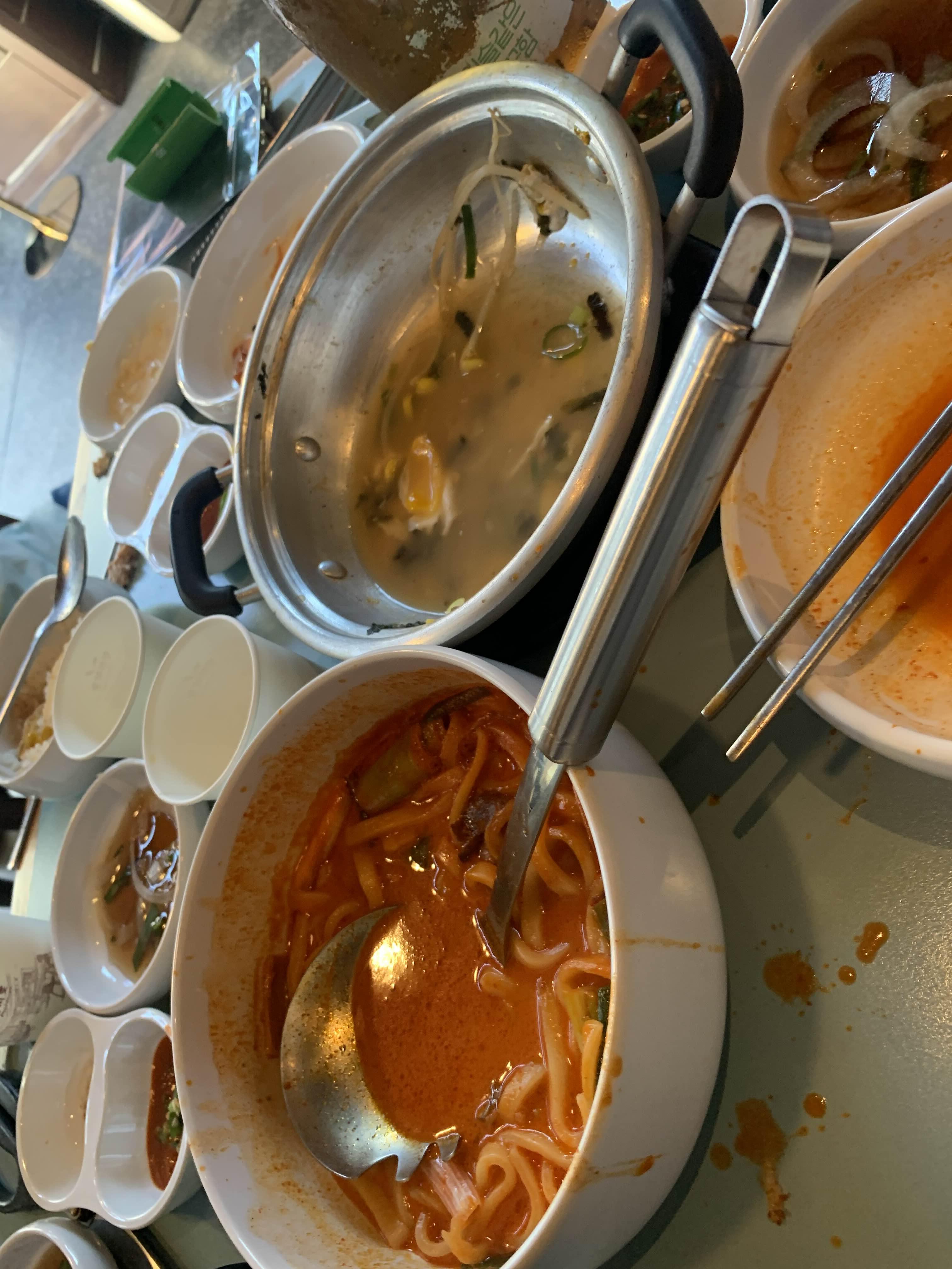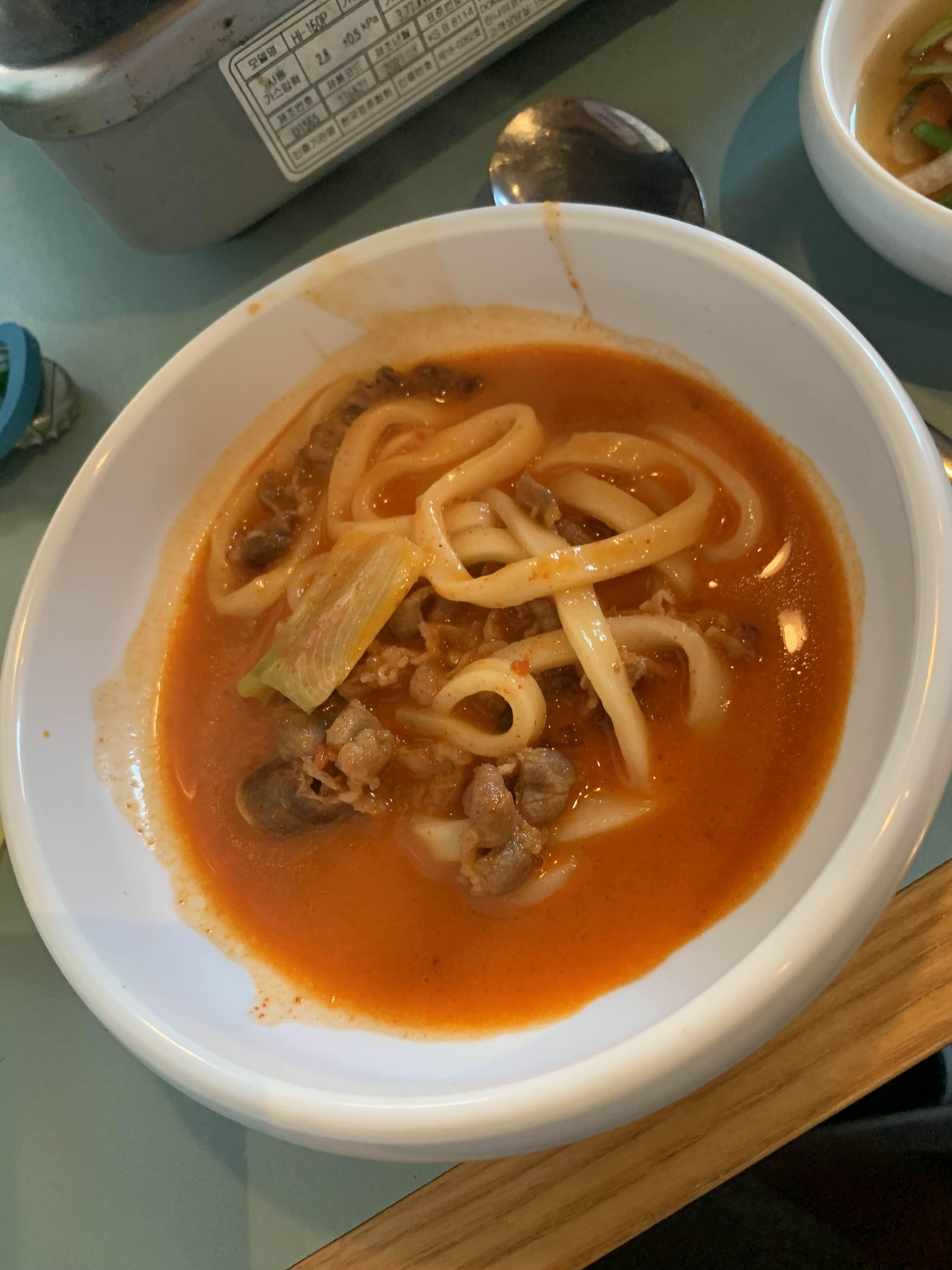 음... 간이 좀 강했다. 맛이 강한 칼국수에 차돌의(우삼겹인가?) 고소함을 더해서 먹는 음식인 거 같은데.... 차돌을 구워서 칼국수에 넣으니... 2가지가 잘 조합되지는 않아....