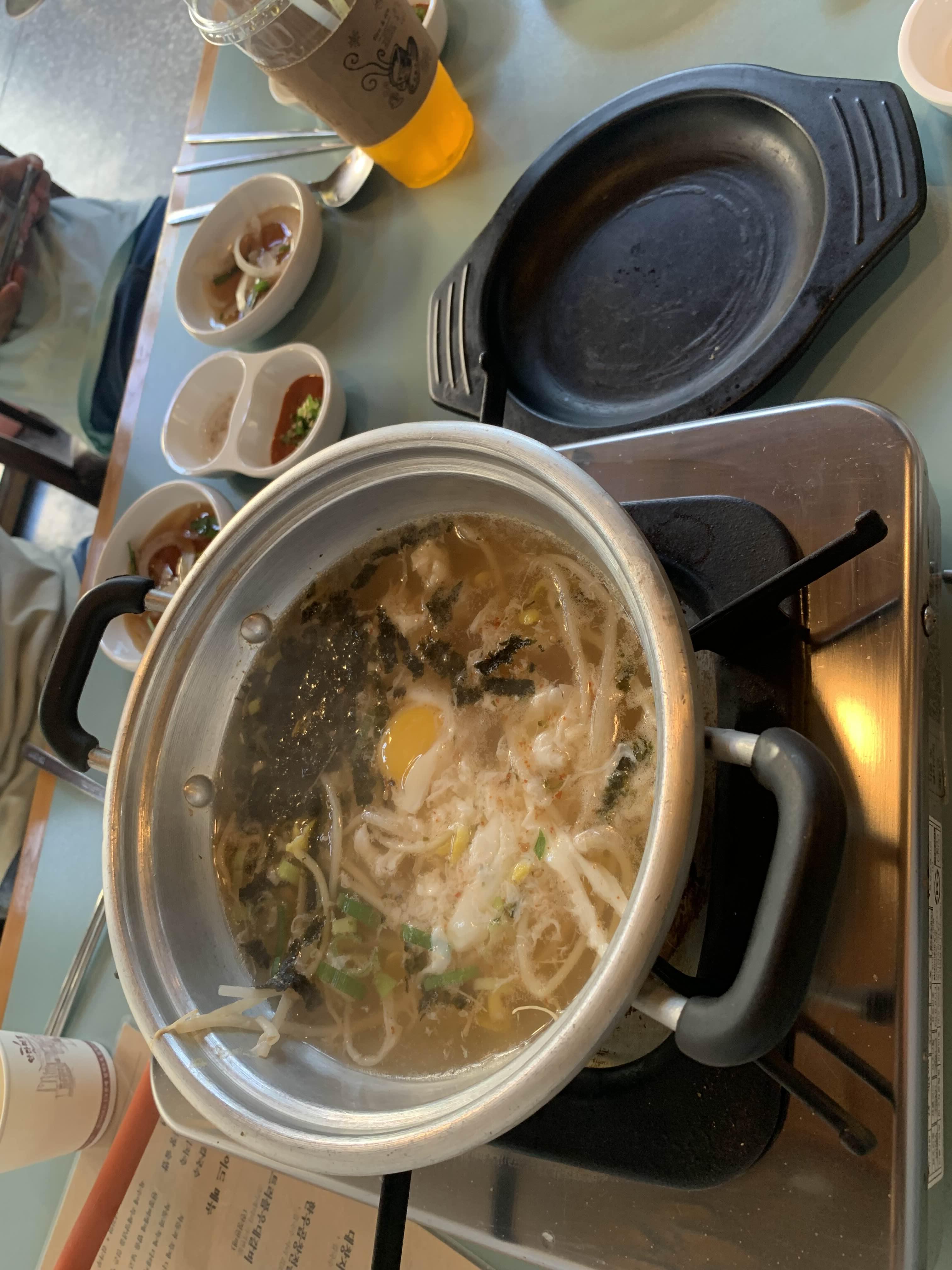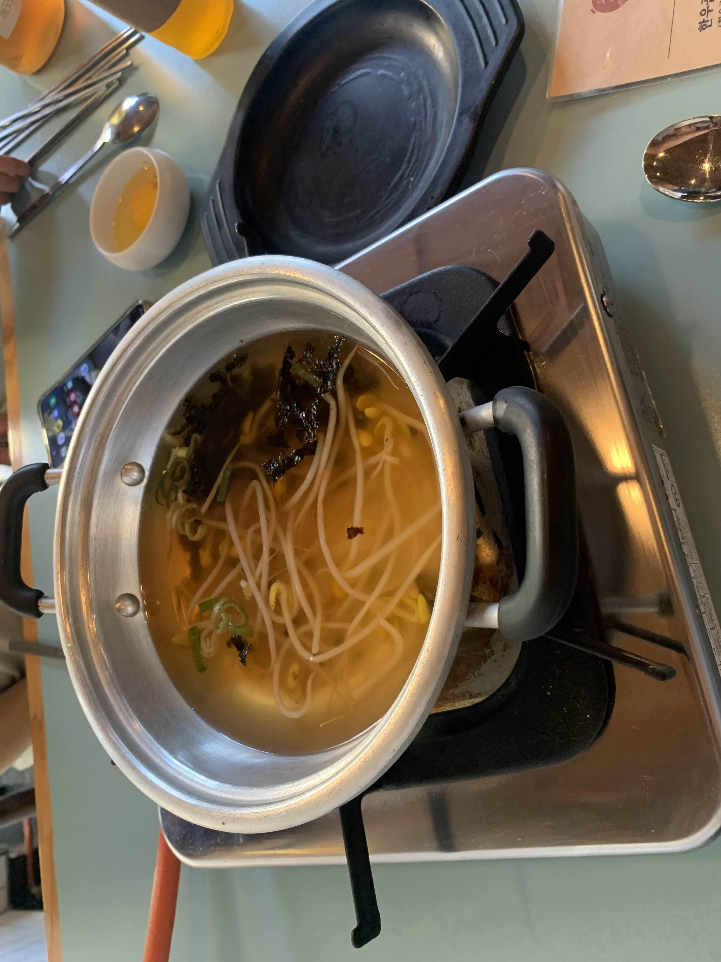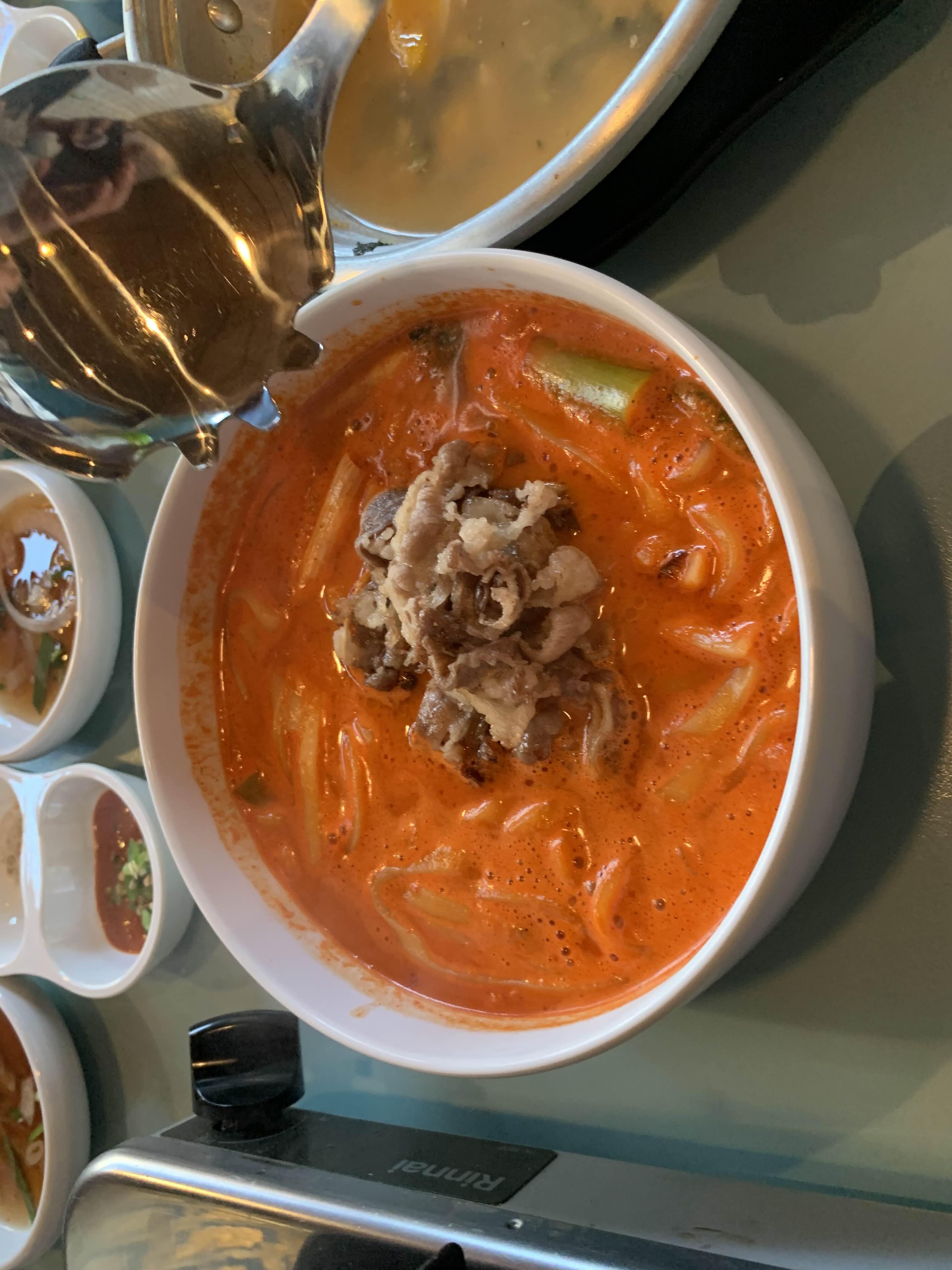 음... 간이 좀 강했다. 맛이 강한 칼국수에 차돌의(우삼겹인가?) 고소함을 더해서 먹는 음식인 거 같은데.... 차돌을 구워서 칼국수에 넣으니... 2가지가 잘 조합되지는 않아....