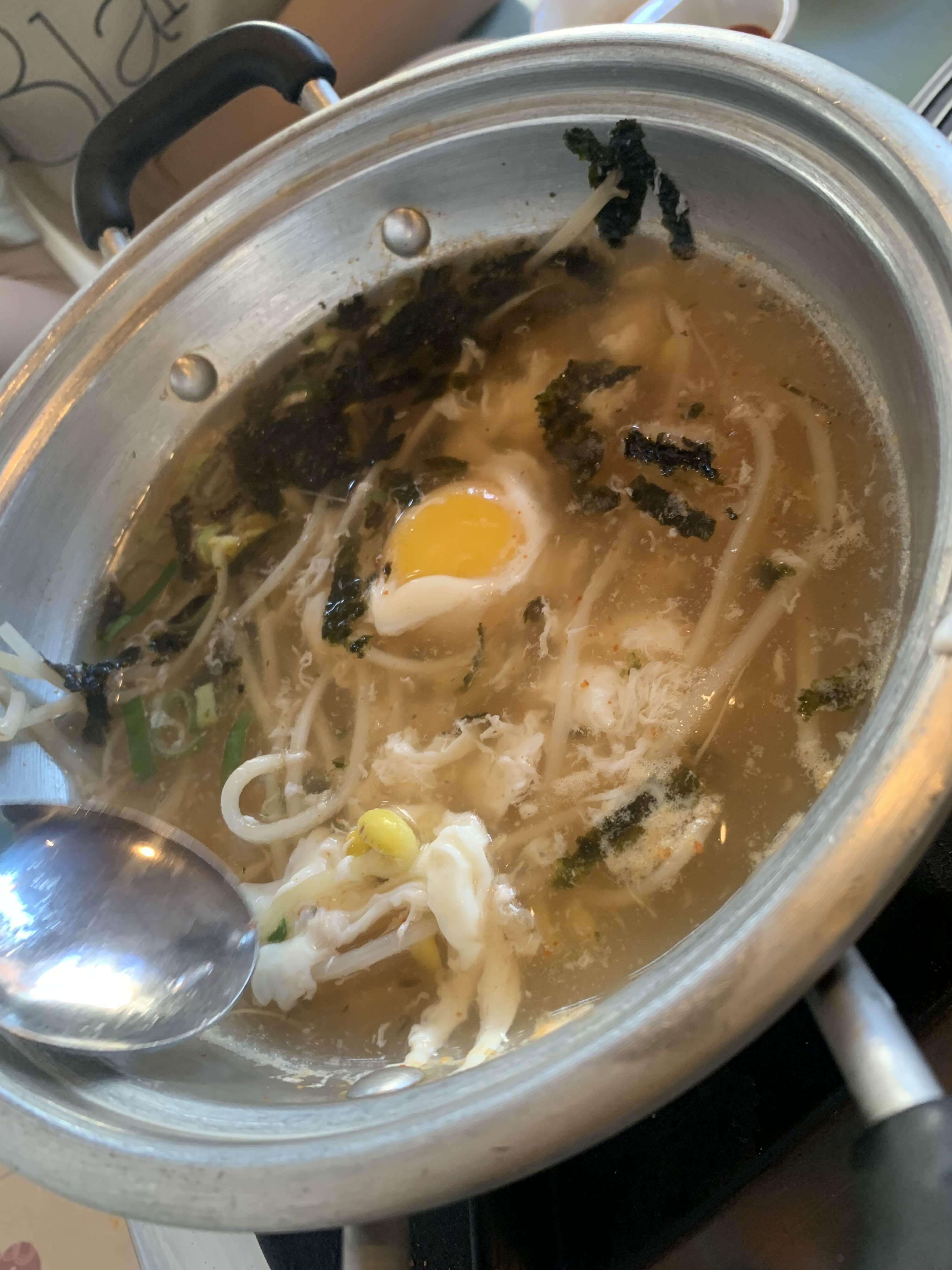 콩나물국은 달걀노른자를 풀어주지 않고.... 흰자만 풀어서 맑은 국물을 맛본다.ㅎㅎ