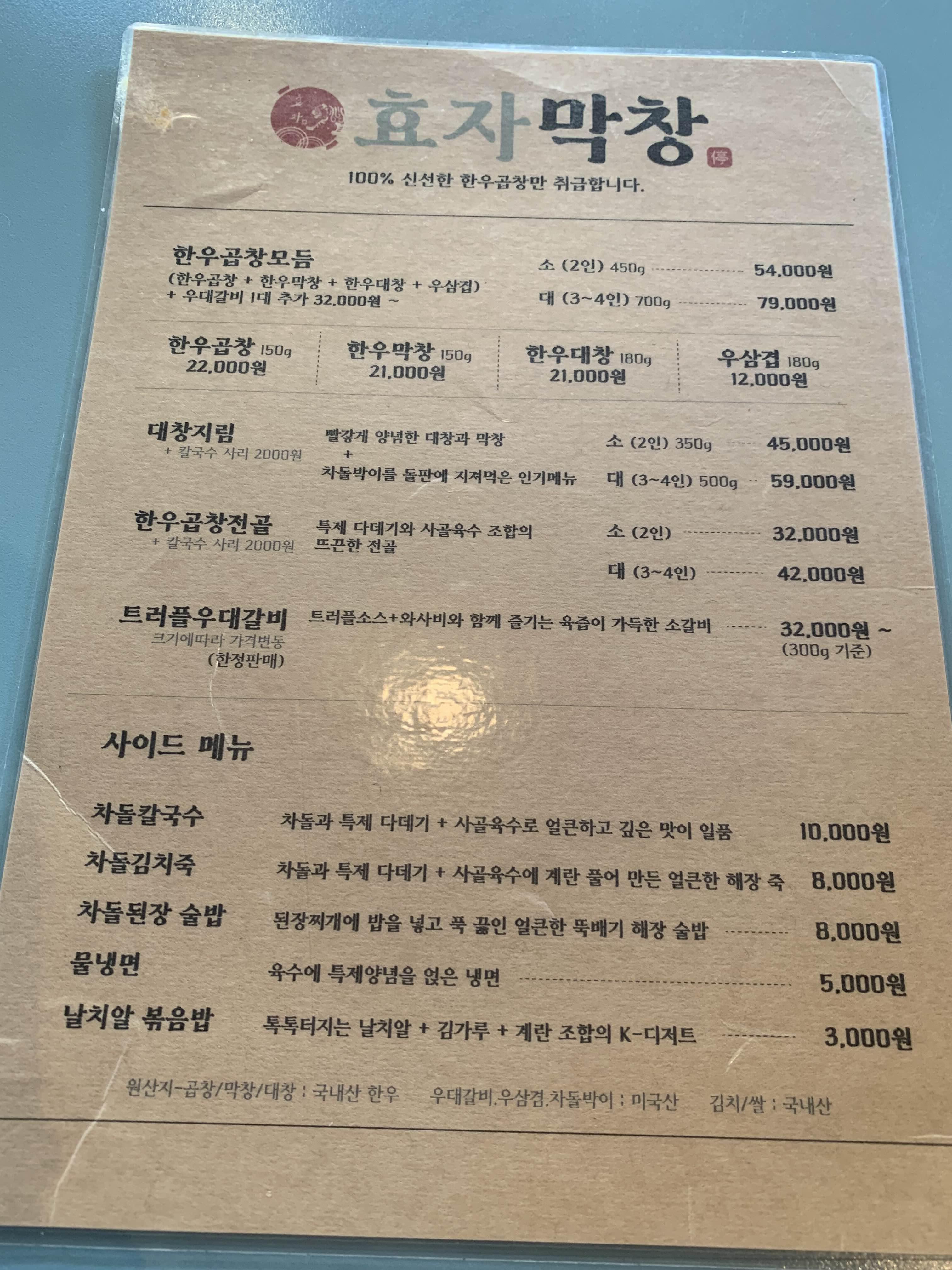 큰아이가 곱창을 먹고 싶다 해서 방문한 효자막창!