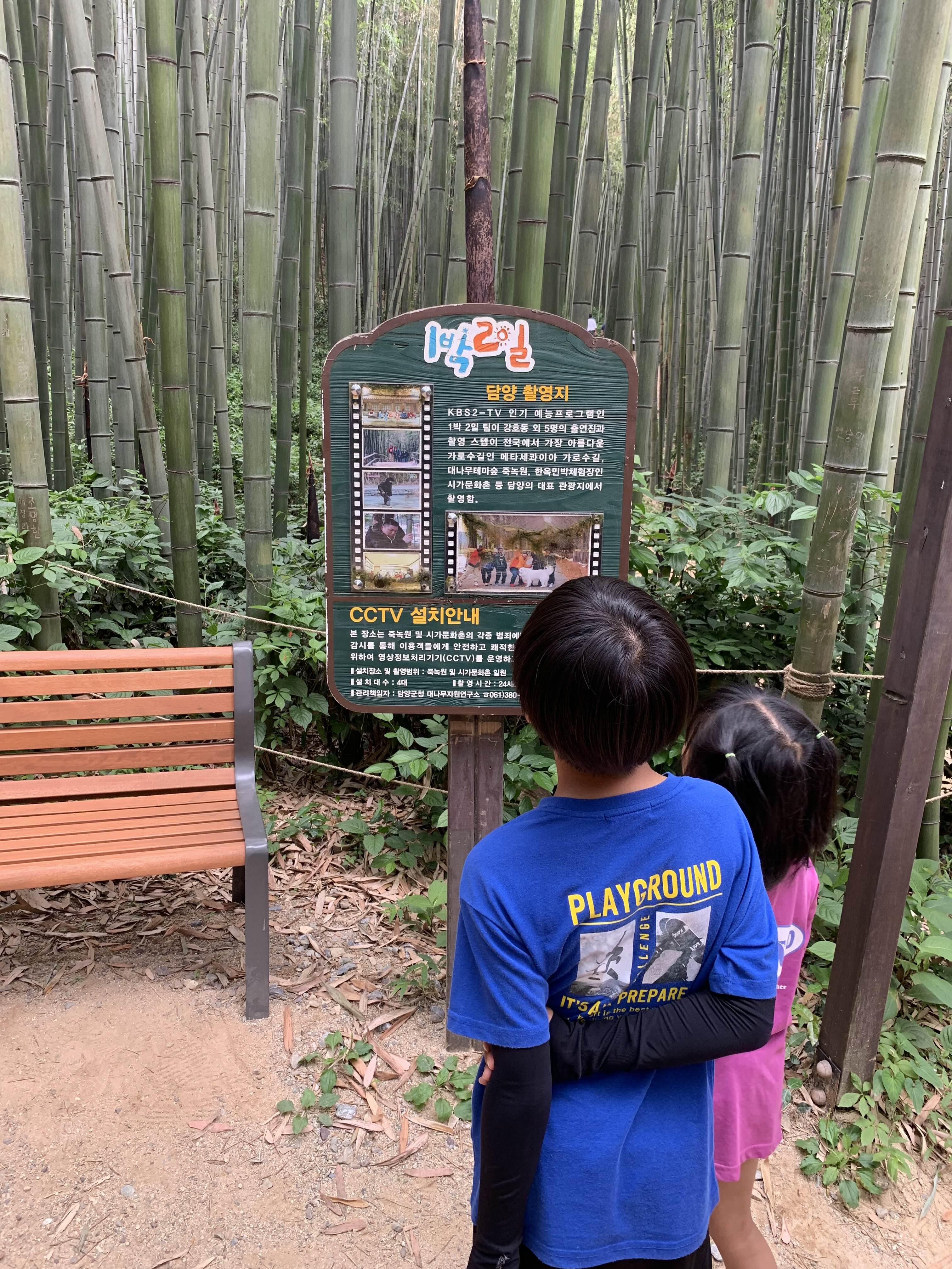 아이들이 좋아하는 1박 2일!! 촬영지라고 하니... 유심이 안내판을 읽는다.