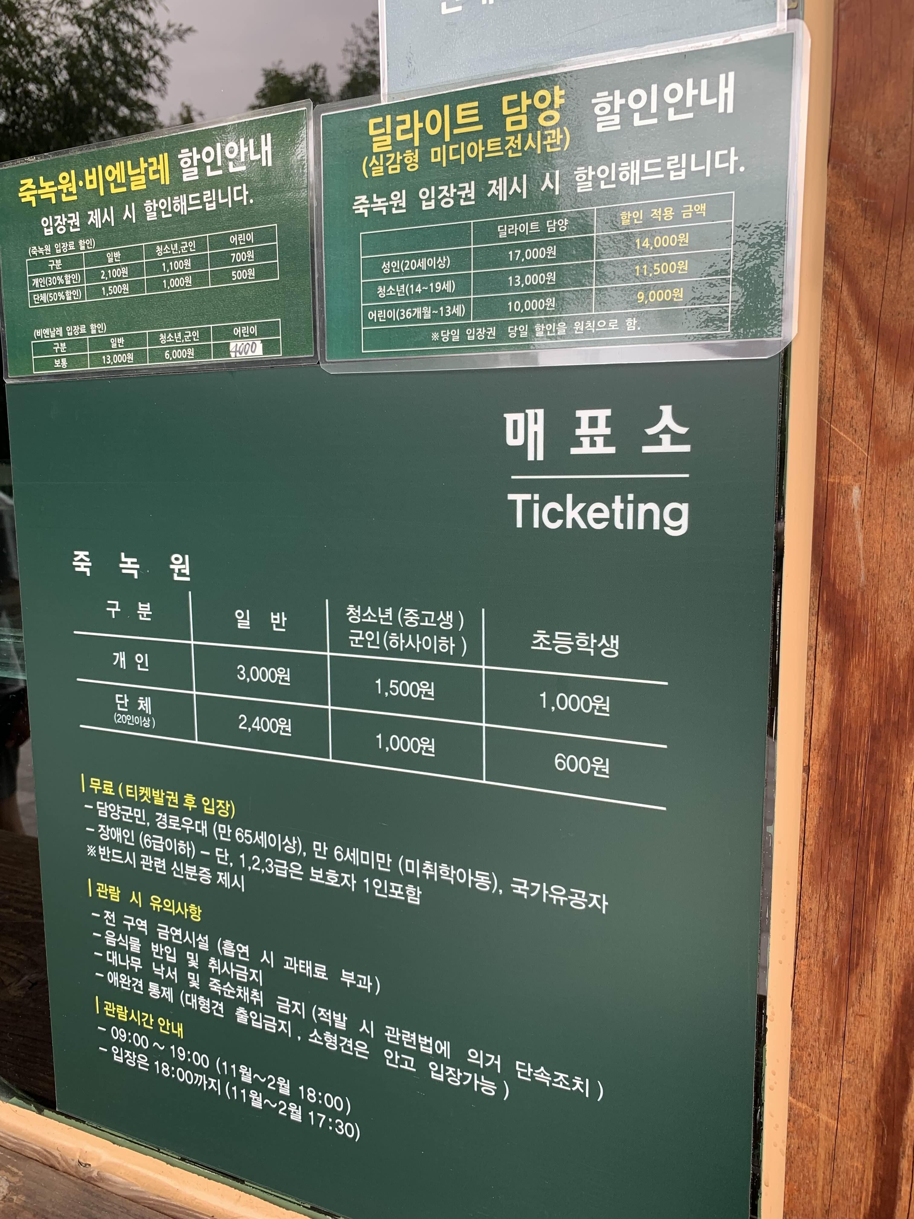 죽녹원 매표소에 도착하니..... 개인 3천 원... 아이들과 입장권 구입 8천 원!