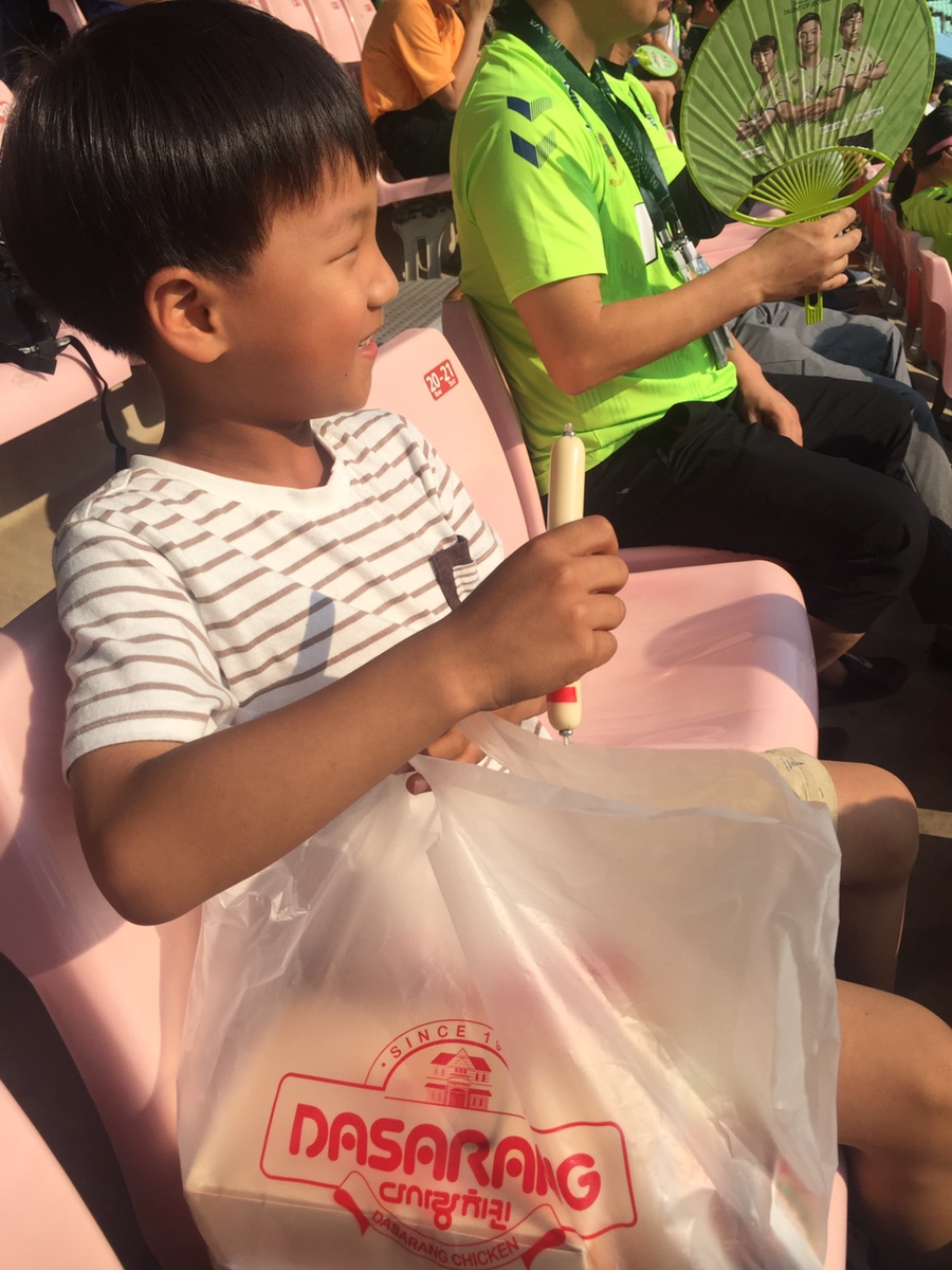 아들 덕에 공짜로 치킨과 팝콘을 먹게 되었네요. 15라운드 경기는 오후 5시에 진행되어 무더운 날씨로 인해 수비왕 부채를 선착순 8천 개를 나누어 주었네요. 사람들이 부채를 부채용으로 사용하는 게 아니라... 썬캡? 용도로 사용하네요. 햇볕이 너무 강해서 경기를 제대로 볼 수가 없었습니다. 그래서 전 미리 썬캡을 준비해서 경기장에 찾아가서 다행이지만.... 부채도 좋지만 낮 시간 경기에는 썬캡을 선물로 나누어 주었으면 좋겠네요. 종이로 된 썬캡이면 부채보다 가격도 저렴하니... 선캡에 선수 사진을 인쇄해서 좋으면 좋을 거 같네요.ㅎㅎ