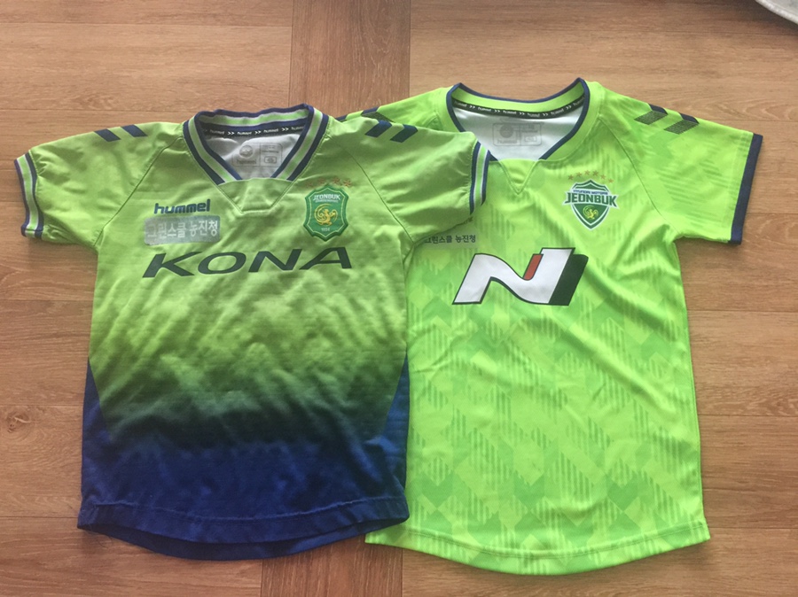 기본 전북현대 마킹에는 전북현대 마크가 오바로크? 되어있었는데.... 이번 유니폼에는 색으로만 구분이 되어있었네요. 마크는 오바로크?가 좋은데. 아이가 운동하며 세탁을 여러 번 하면 마크가 흐릿해지는데... 이럴 때는 마킹 오바르크가 좋죠. 그리고, 우승별도 지워지지 않는 오바르크?ㅎㅎ 오바르크..... 군대 오바르크가 생각나네요.ㅎㅎ 아래는 2017년 유니폼인데.. 같은 사이즈 4S인데... 사이즈는 두 사이즈 정도 차이가 나오이네요.ㅎㅎ