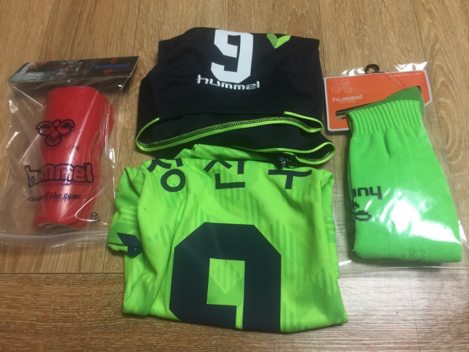 올 유니폼은 목 부분이 좀 크게 나왔네요. 하의는 3S, 상의는 4S로 구매했는데... 목 부분이 너무 크게 띄어져 있었네요. 기존 유니폼과 비교해도 목이 너무 허전한 느낌입니다. 이럴 줄 알았으면... 이너웨어(안쪽에 입는)를 구매해서 입어야 할 정도입니다. 9번 유니폼을 좋아해서 전북 현대 선수들이 좋아하는 세리머니?를 하네요.ㅎㅎ