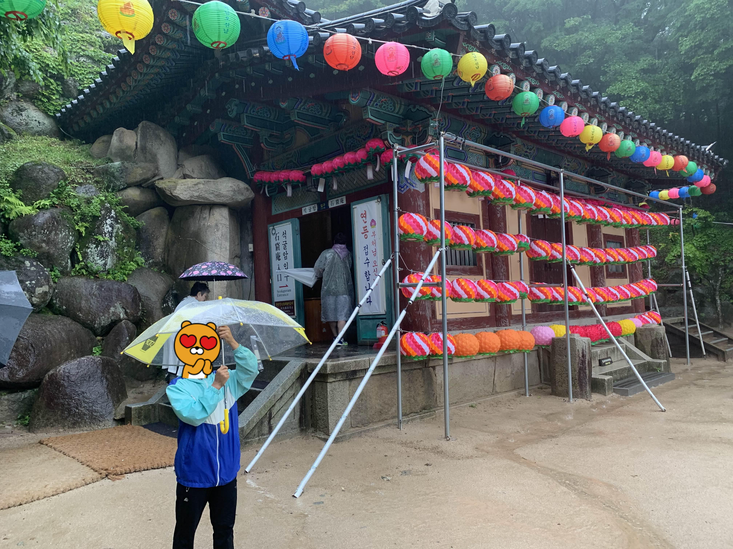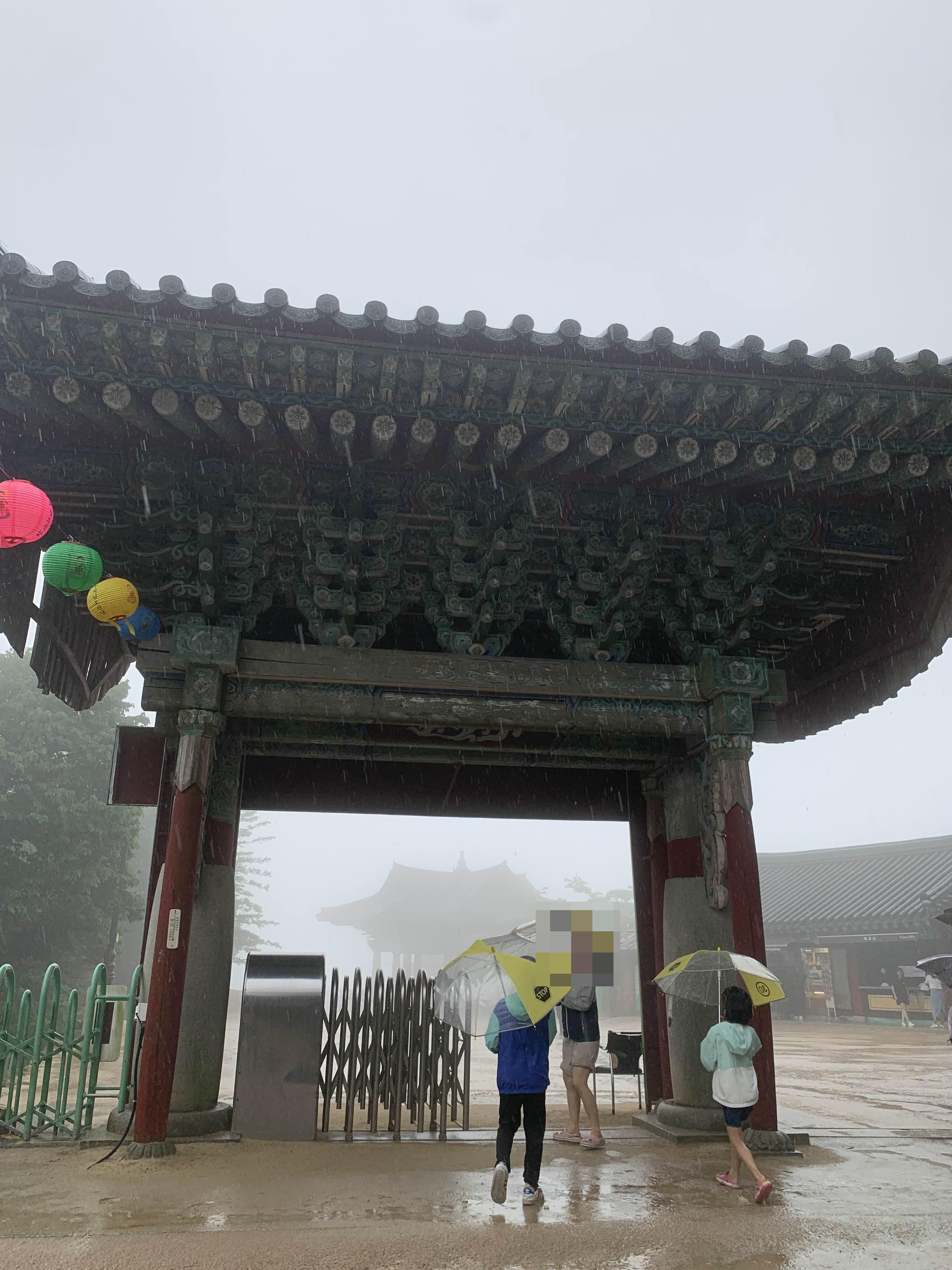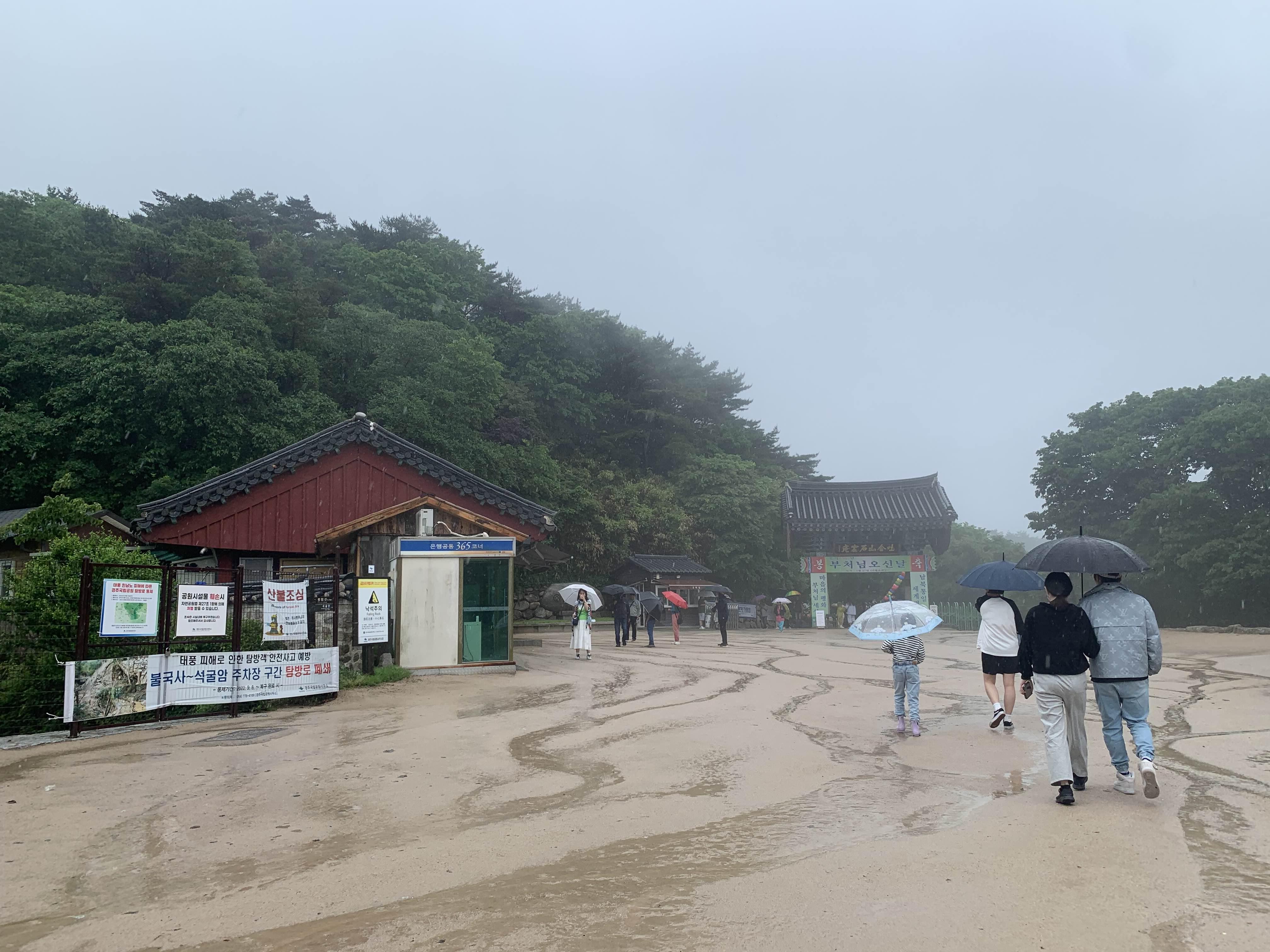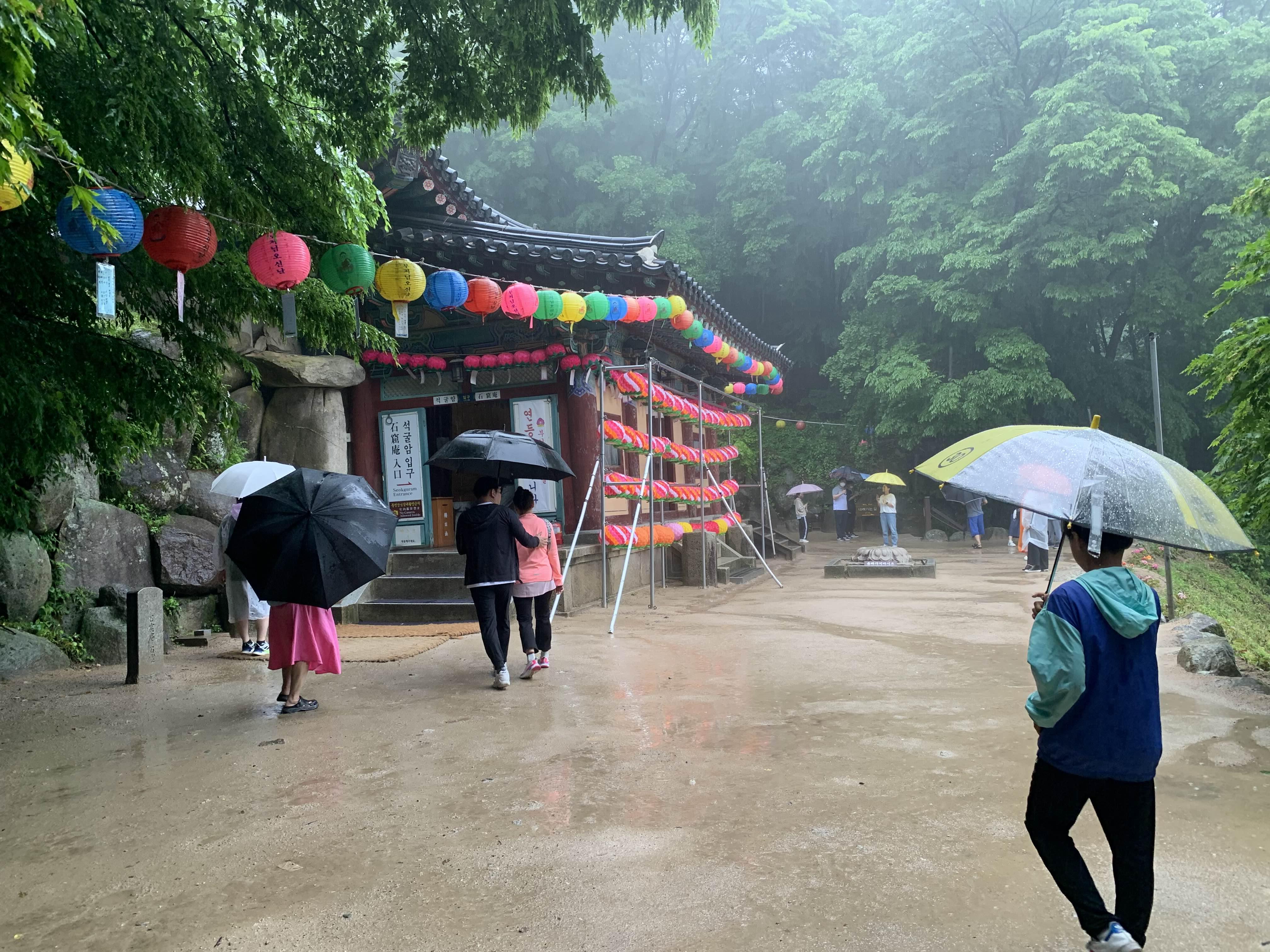 상당히 많은 비가 내리고 있었지만... 석굴암에 방문하는 사람들이 꽤 많았다.