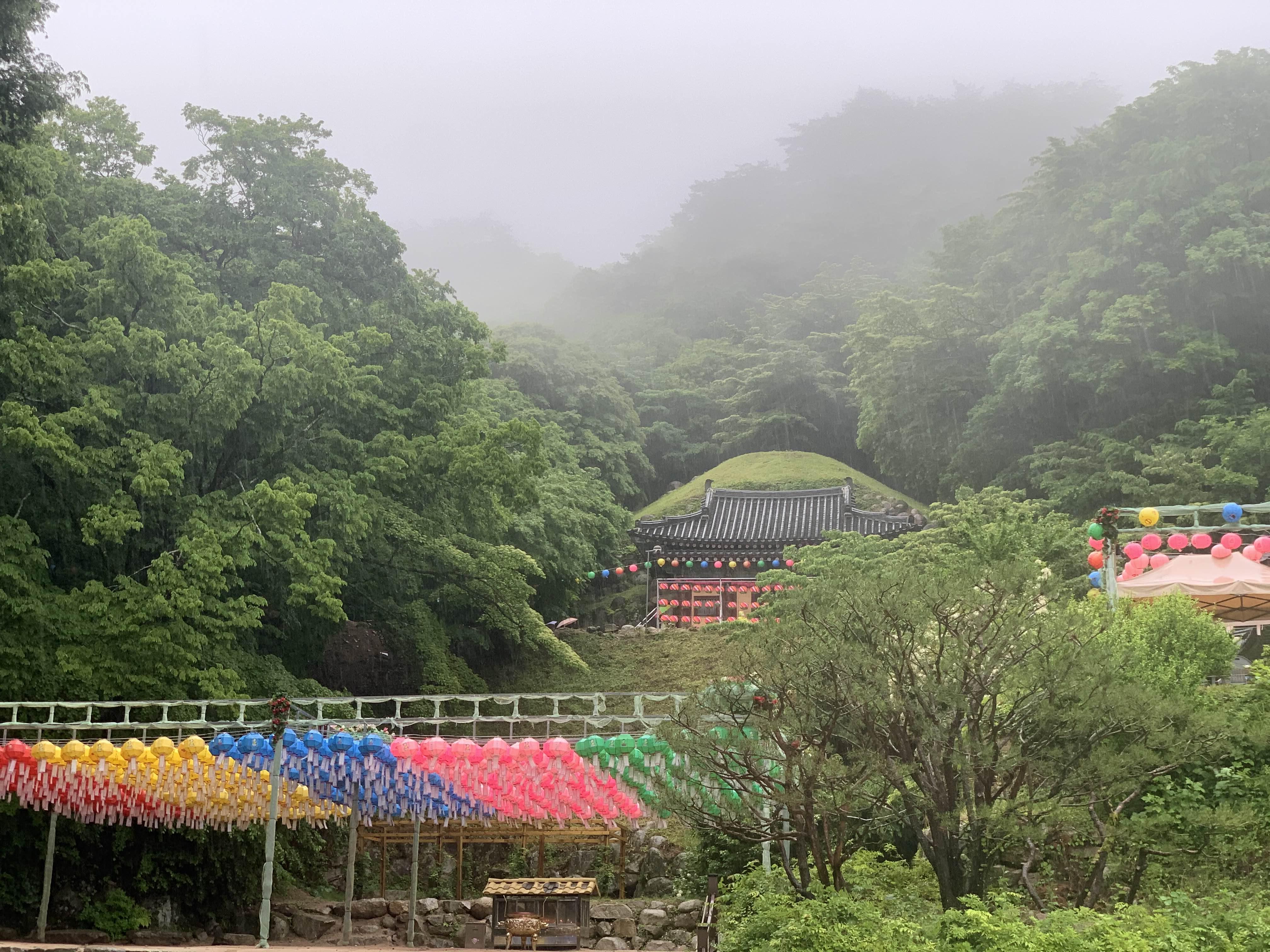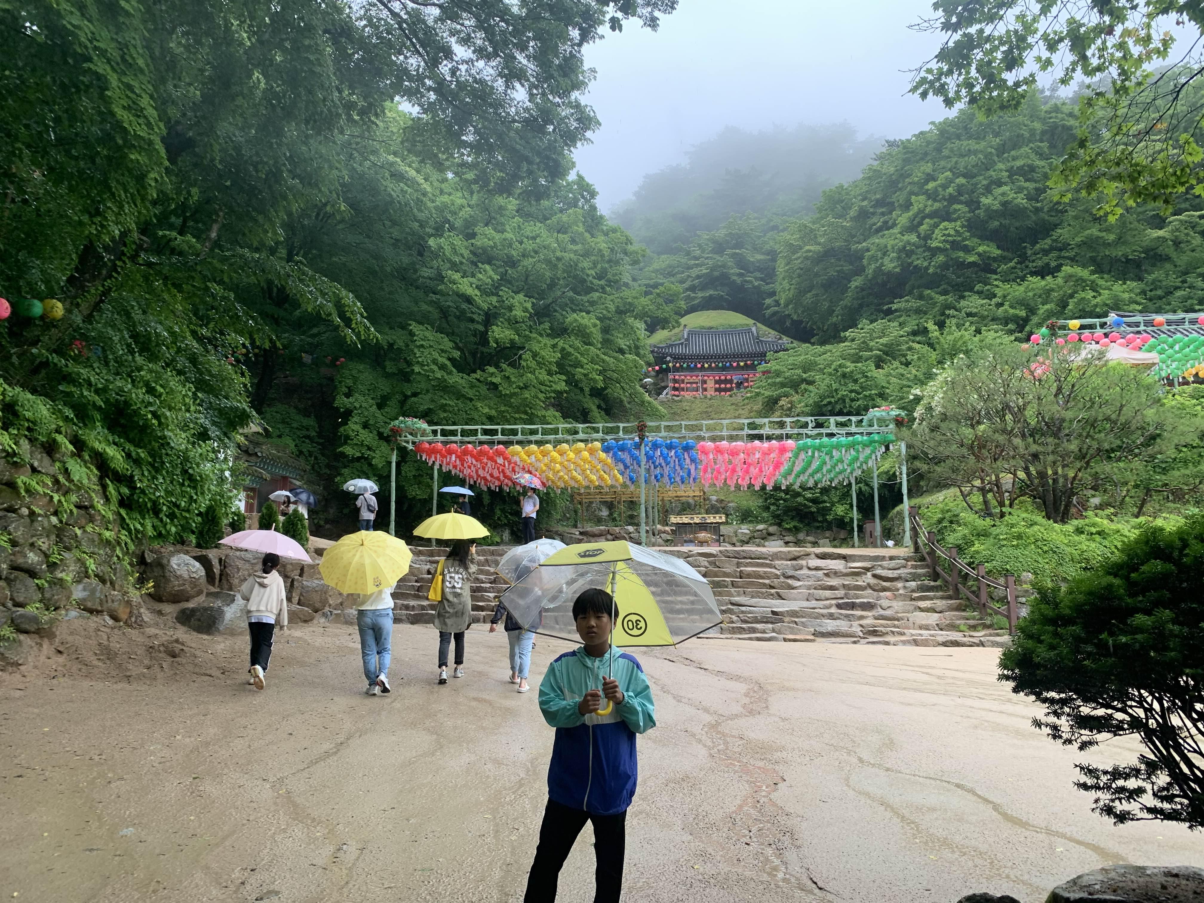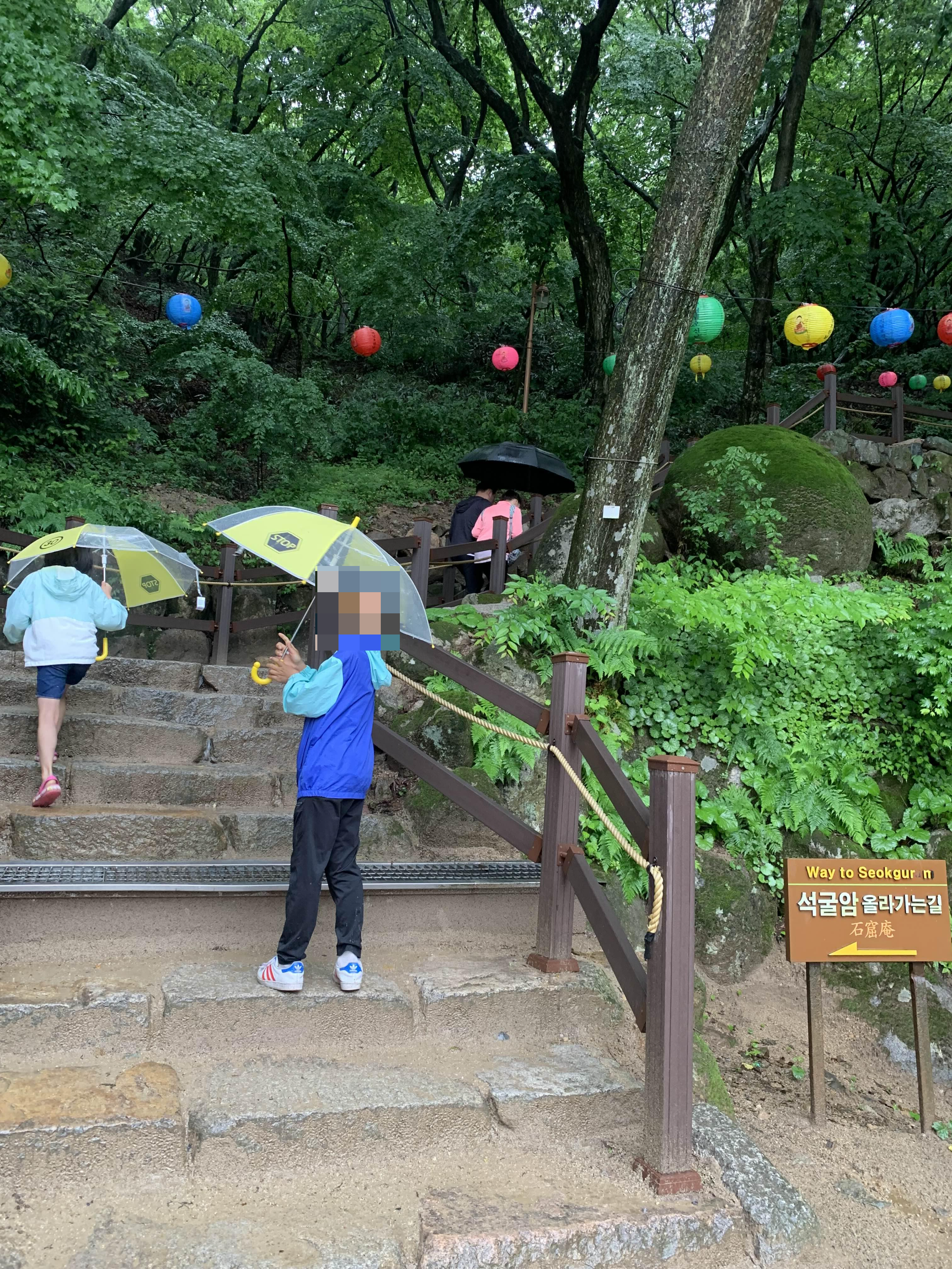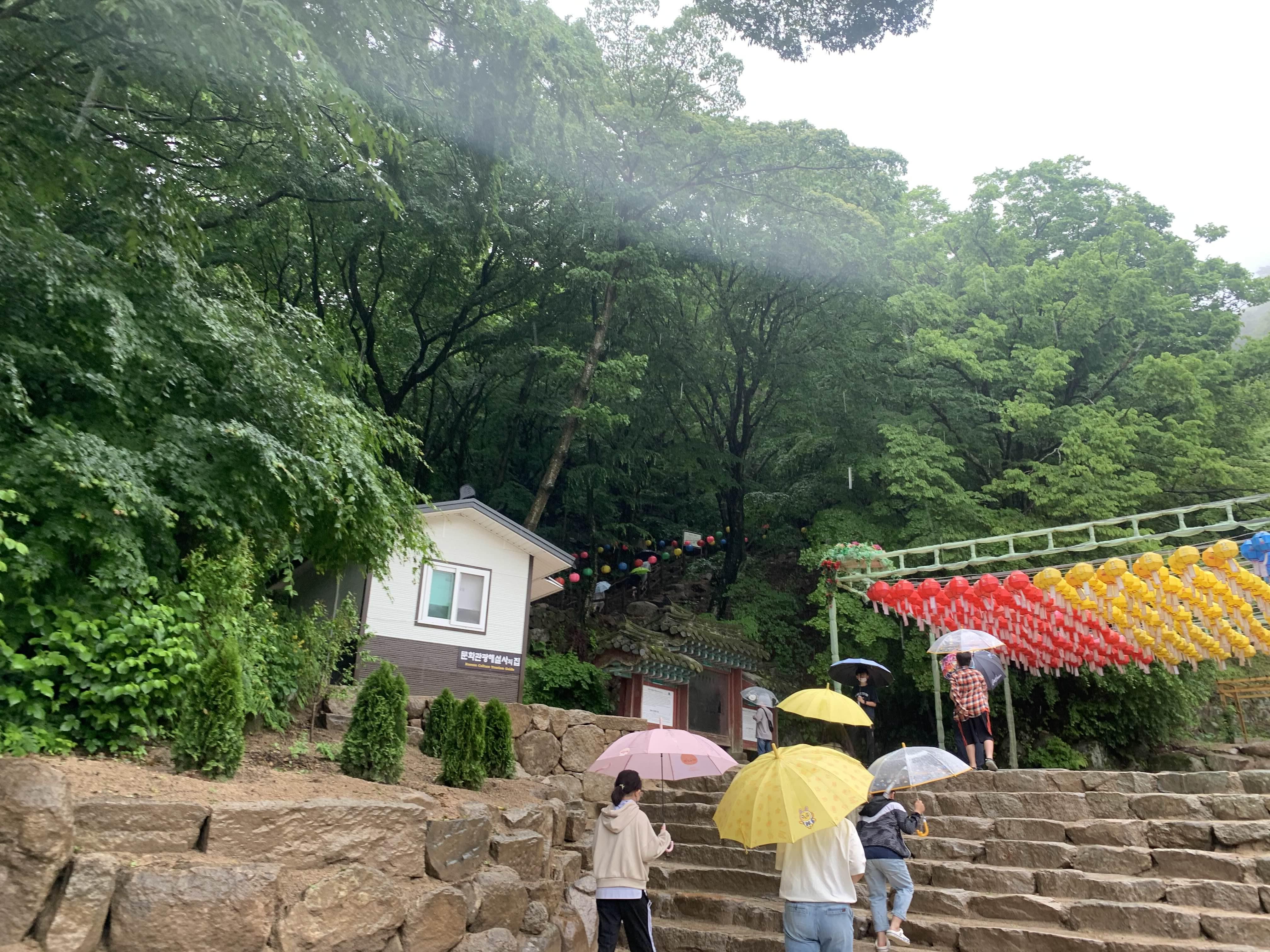 상당히 많은 비가 내리고 있었지만... 석굴암에 방문하는 사람들이 꽤 많았다.