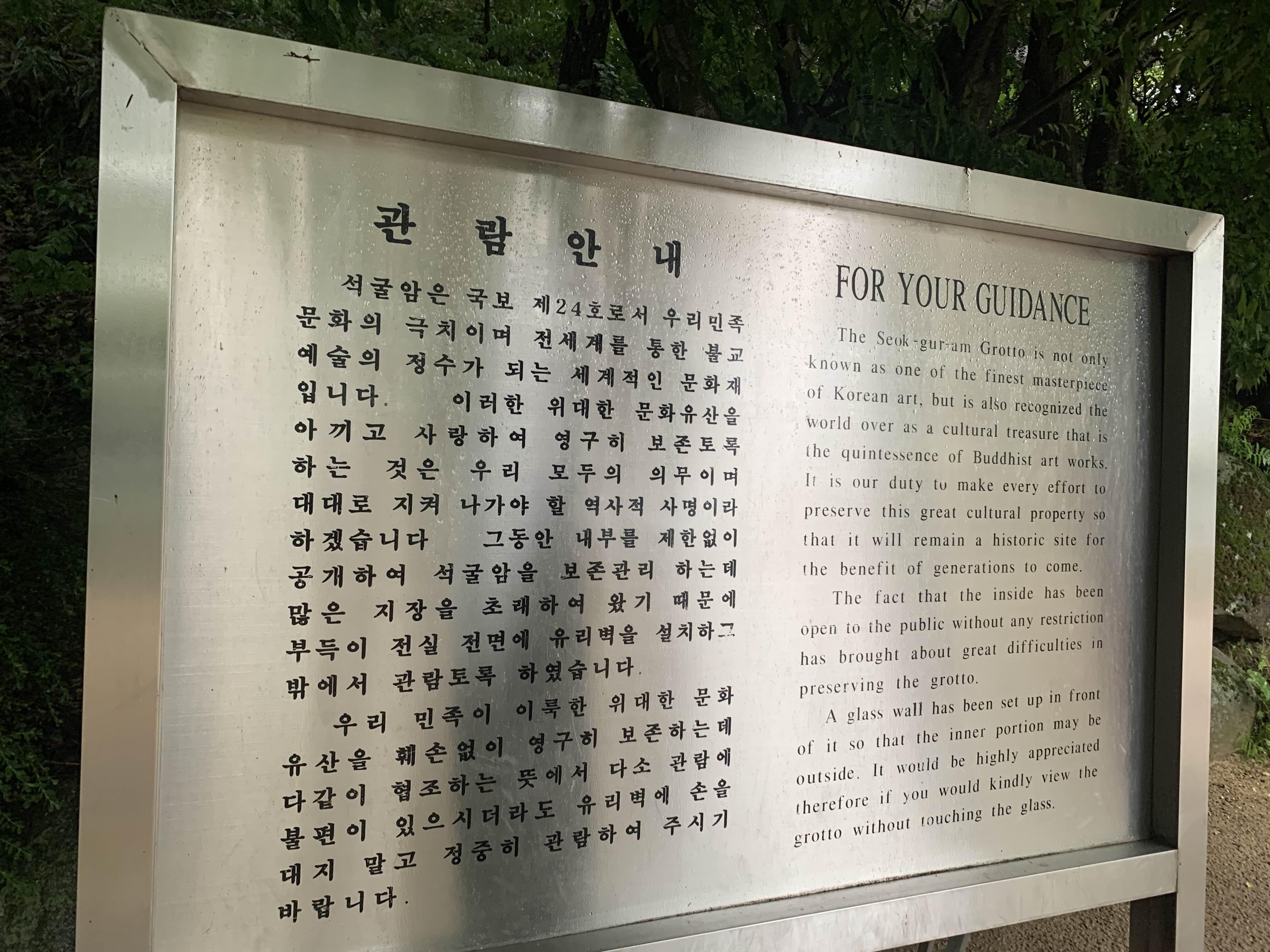 관람안내에... 석굴암의 유지관리를 위해 유리벽을 설치했다는 안내문구...