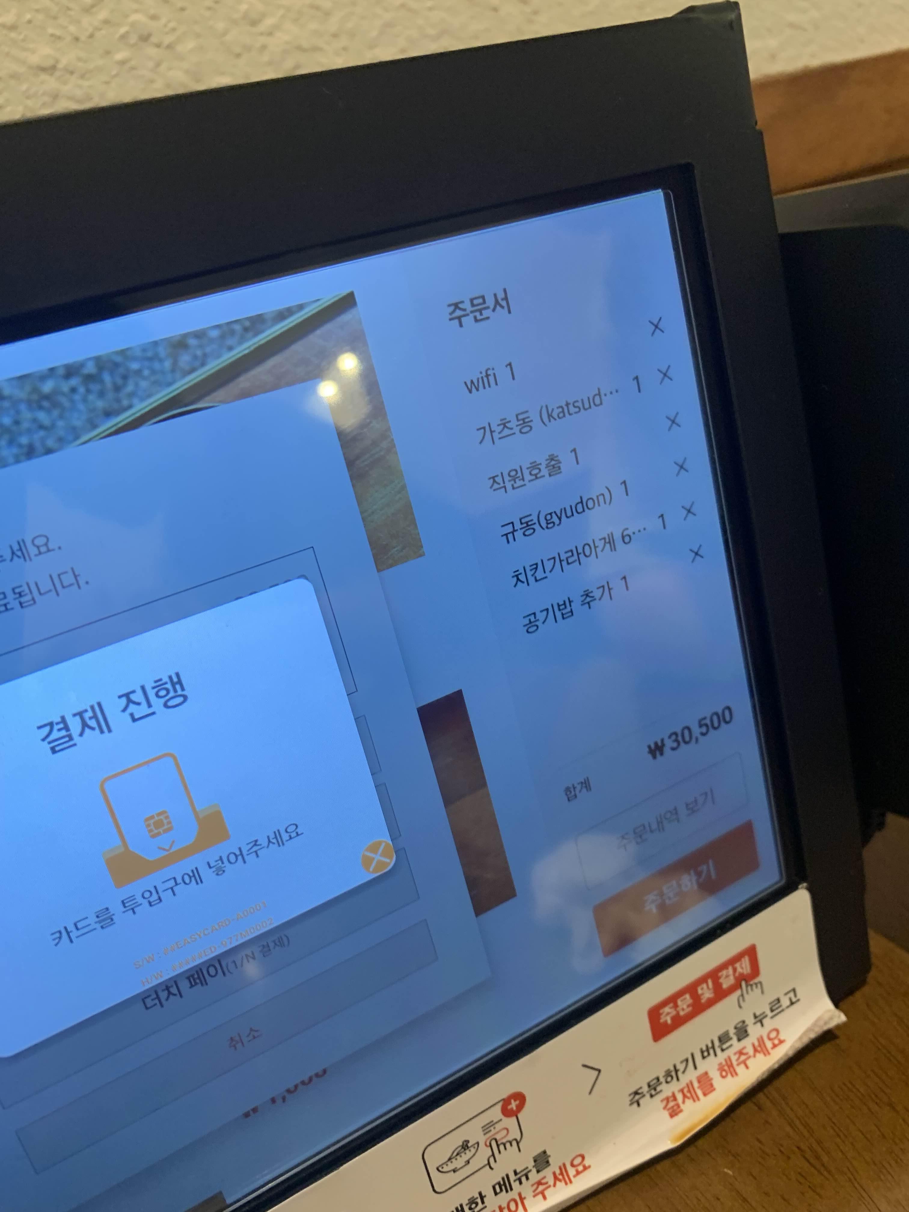 음식은 테이블에 있는, 태블릿을 이용하여 주문!