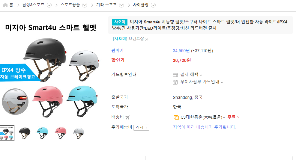 킥보드 헬멧(샤오미 스마트 헬멧, 퀵 스파이더 헬멧) 구매