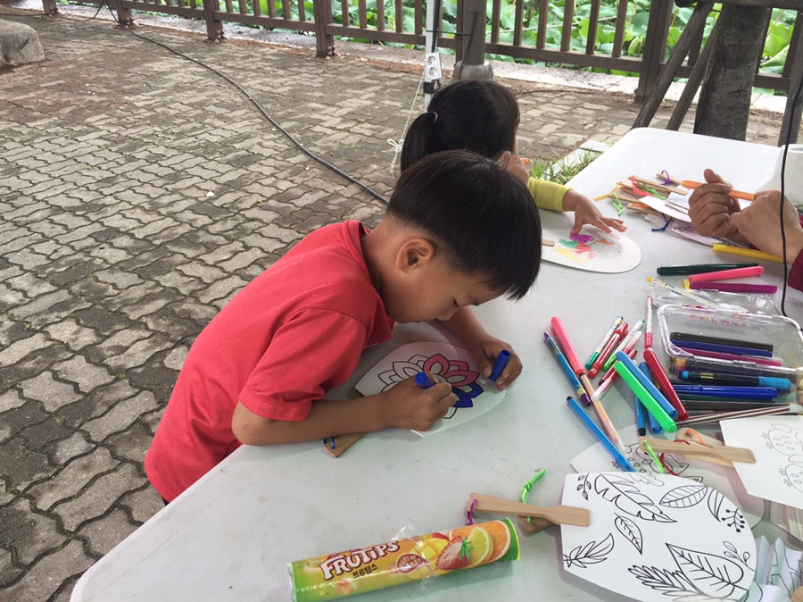 전통부채에 색칠하는 체험은 8,000원 그래도 아이가 좋아해서 체험하도록 해주었네요. 작년에는 무료로 체험하는 부수가 있었던 걸로 기억하는데.... 부채 색칠하고 단오 물맞이 체험하러 5시 조금 넘어서 도착하니.... 날씨가 추워서 체험부스를 운영하지 않는다고 합니다. 단오는 물맞이가 하이라이트인데요.ㅠㅠ 내년에 참여해야겠네요.