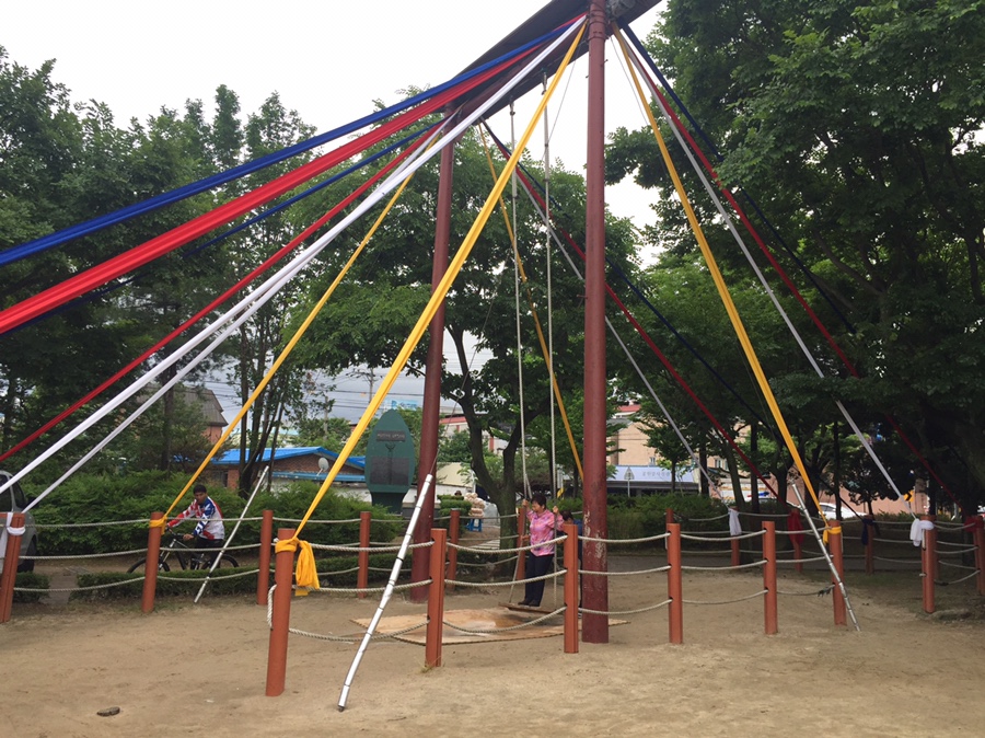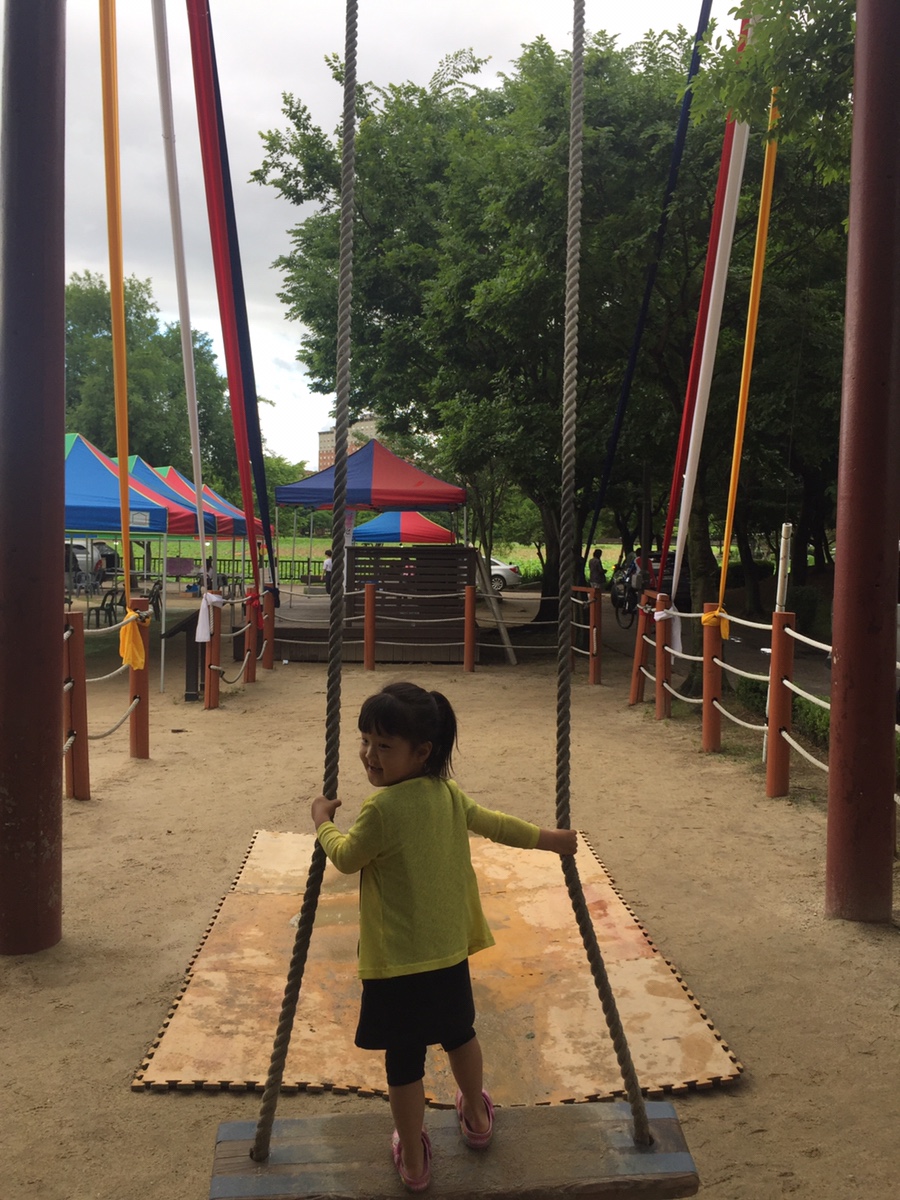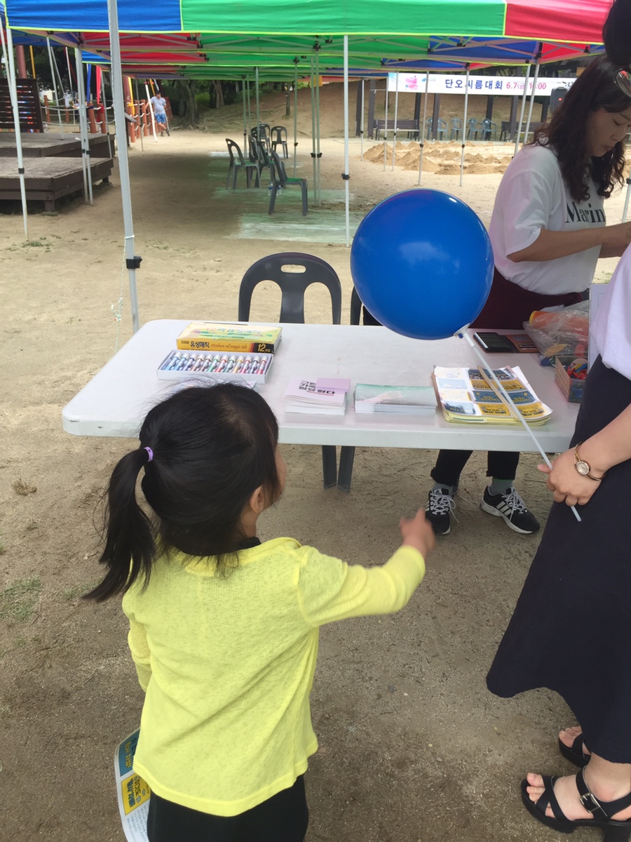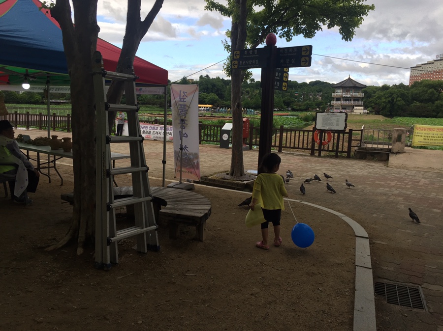 선우가 톡톡 블록 만드는 사이 소율이와 덕진공원의 상징? 대형 그네를 타기로 했네요. 대형 그네를 처음에 무서워했는데... 요즘은 더 세게 밀어달라고 합니다. 그네를 신나게 타고서 풍선 나누어 주는 곳에서 풍선 받고~ 비둘기 잡기 놀이? 하며 톡톡 블록 만드는 선우를 만나러 갔습니다. 단오 행사장 부스가 너무 썰렁해서... 너무 볼거리가 없었네요. 우천이라 참가하는 사람들도 많이 없었지만, 참가해도 체험부스가 많이 없어서 참여할 수도 없었네요. 좀 아쉬운 행사였네요.